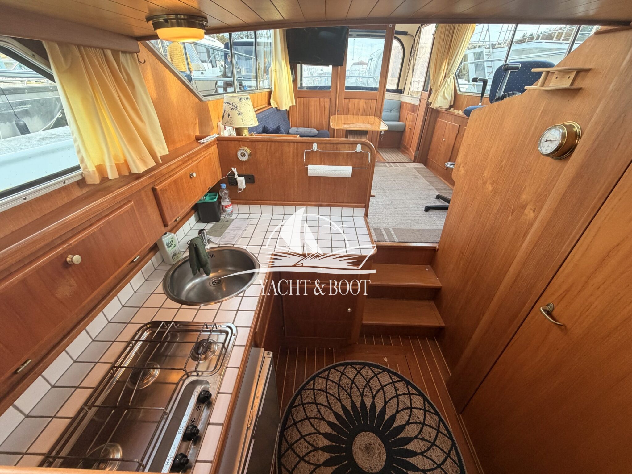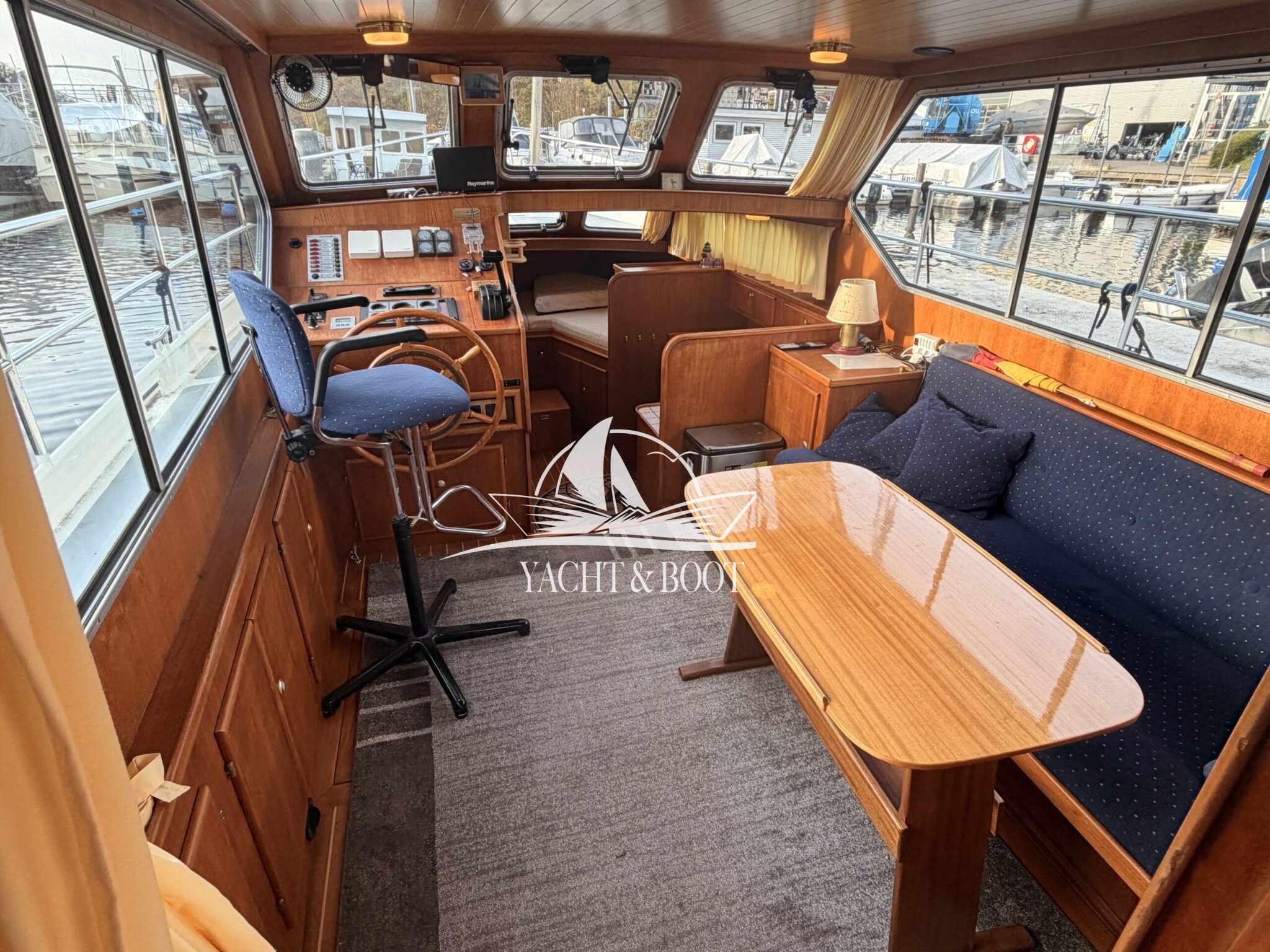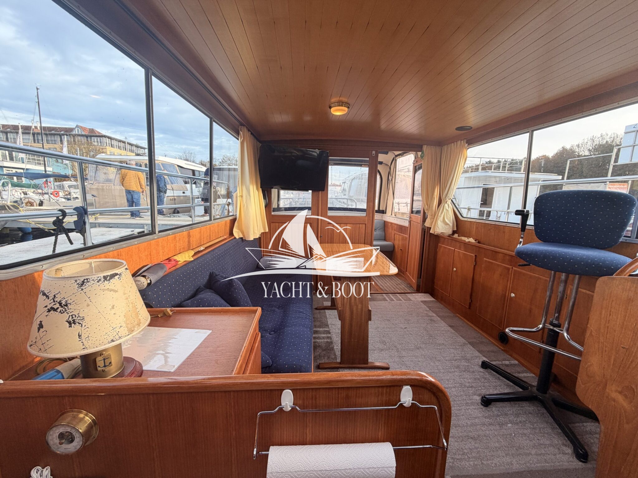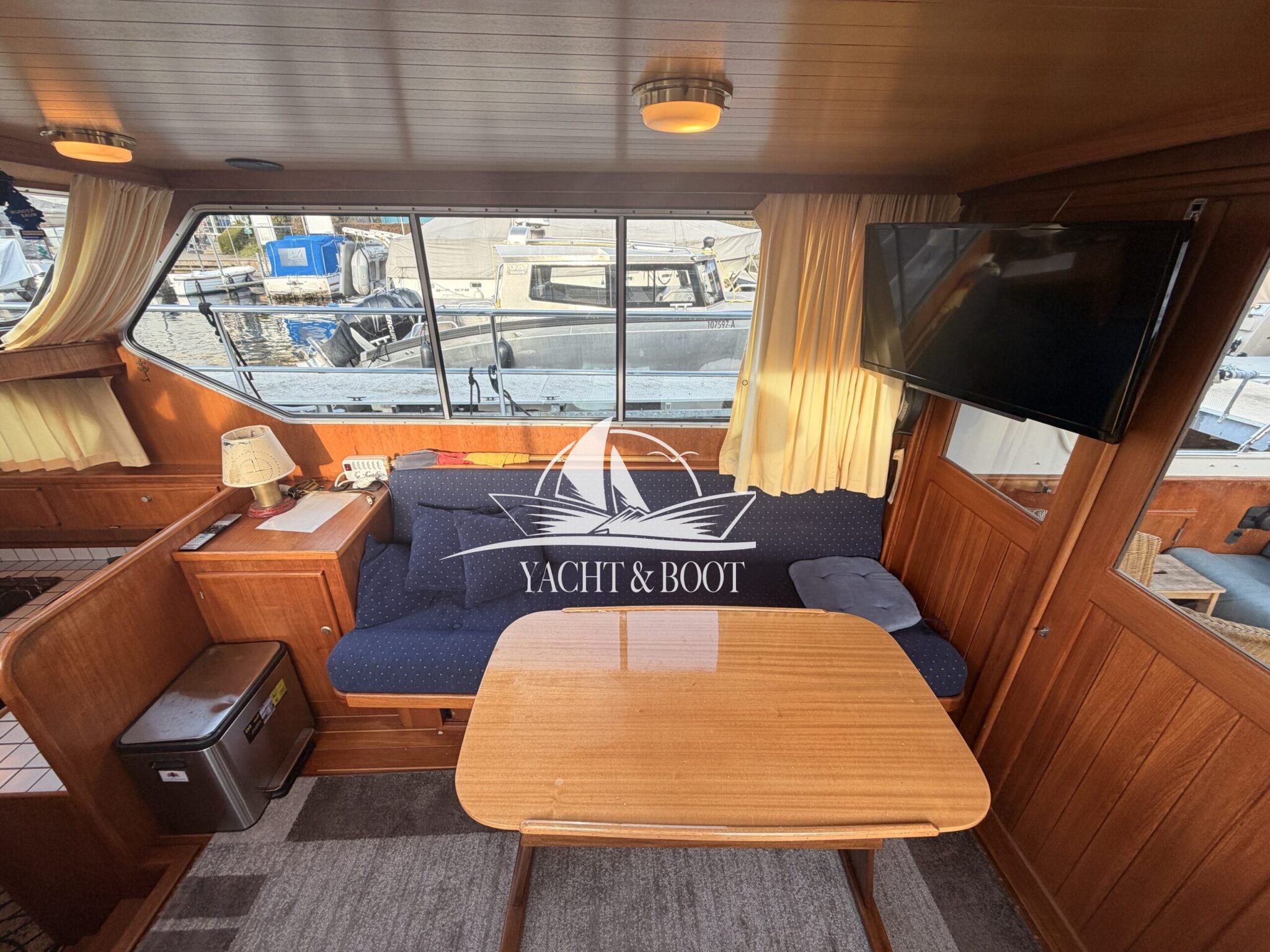 Der Salon ist zum Motorraum schallisoliert und hat einen Holzboden.