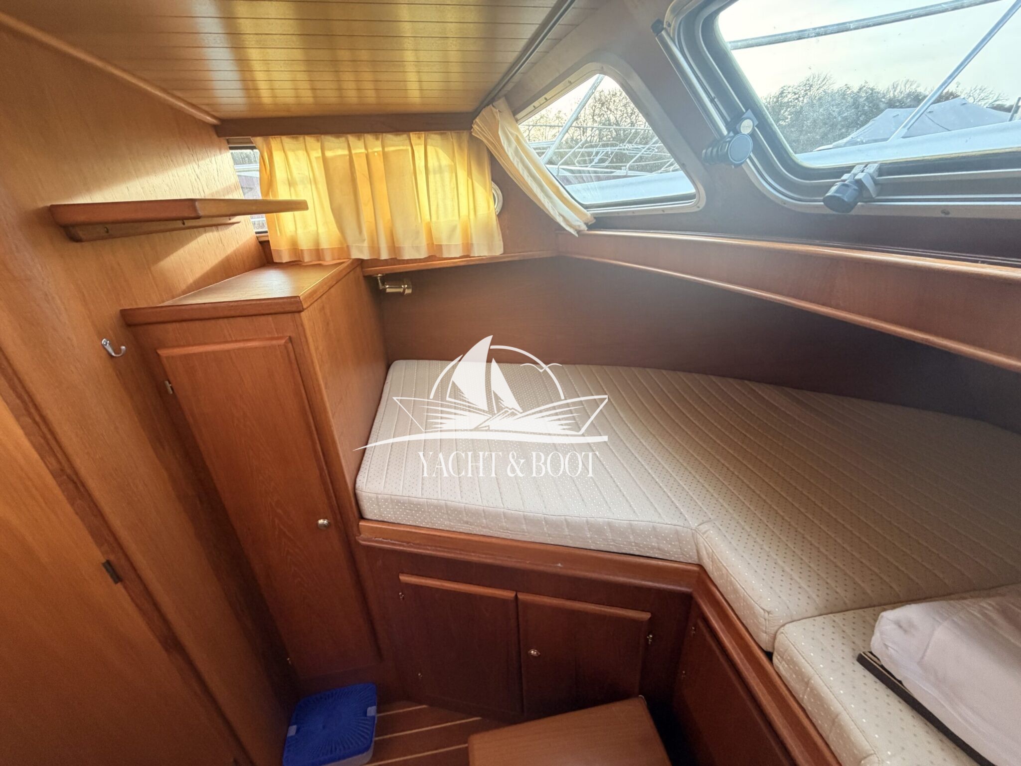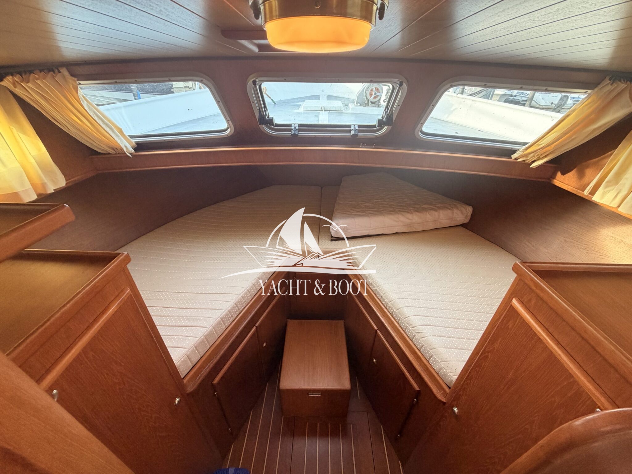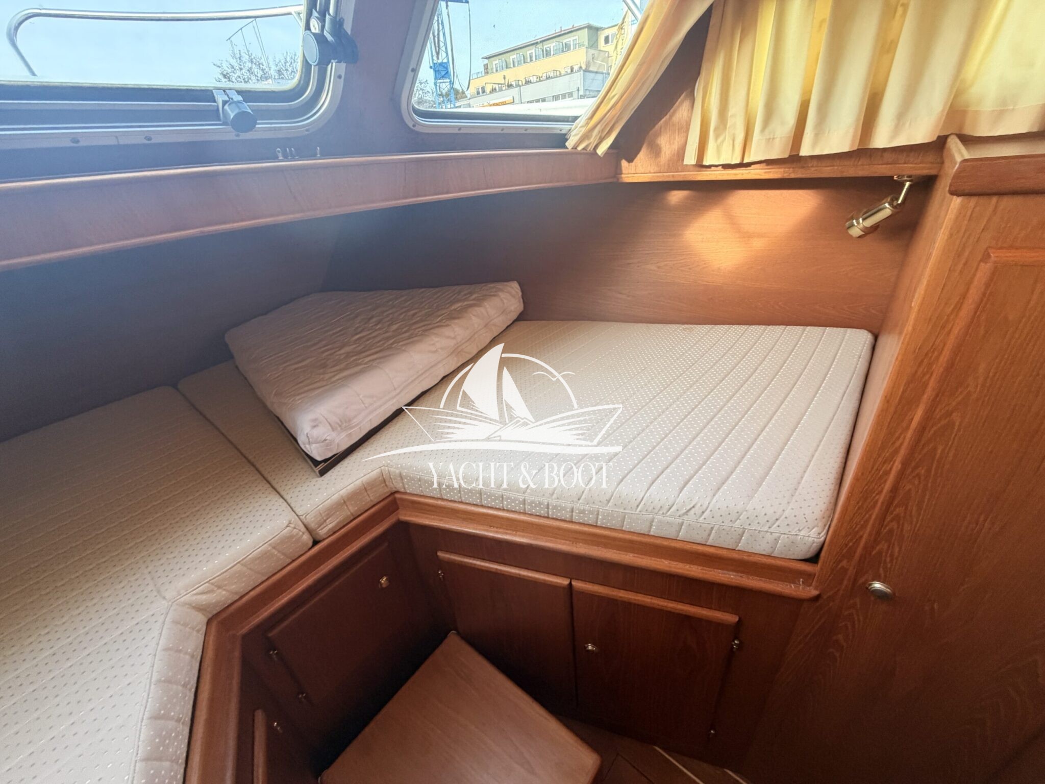 Eine große Koje im Vorschiff und ein umbaubares Sofa mit Schlafmöglichkeit für 4 Personen bieten die Möglichkeit von Übernachtungen.