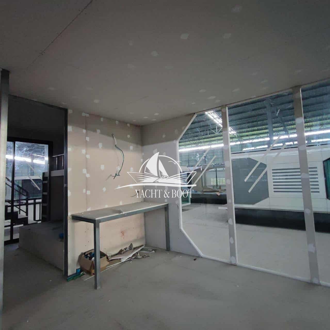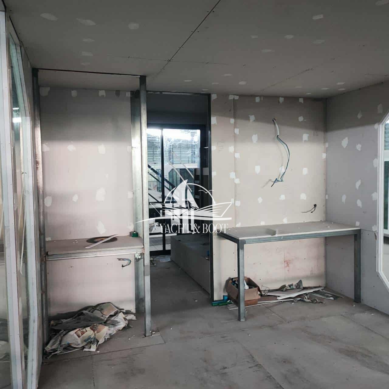 Die voll begehbare Dachfläche ist über eine elegante, ergonomisch gestaltete Treppe erreichbar – keine steile Leiter, sondern ein komfortabler Aufgang zu Ihrem Logenplatz über dem Wasser.