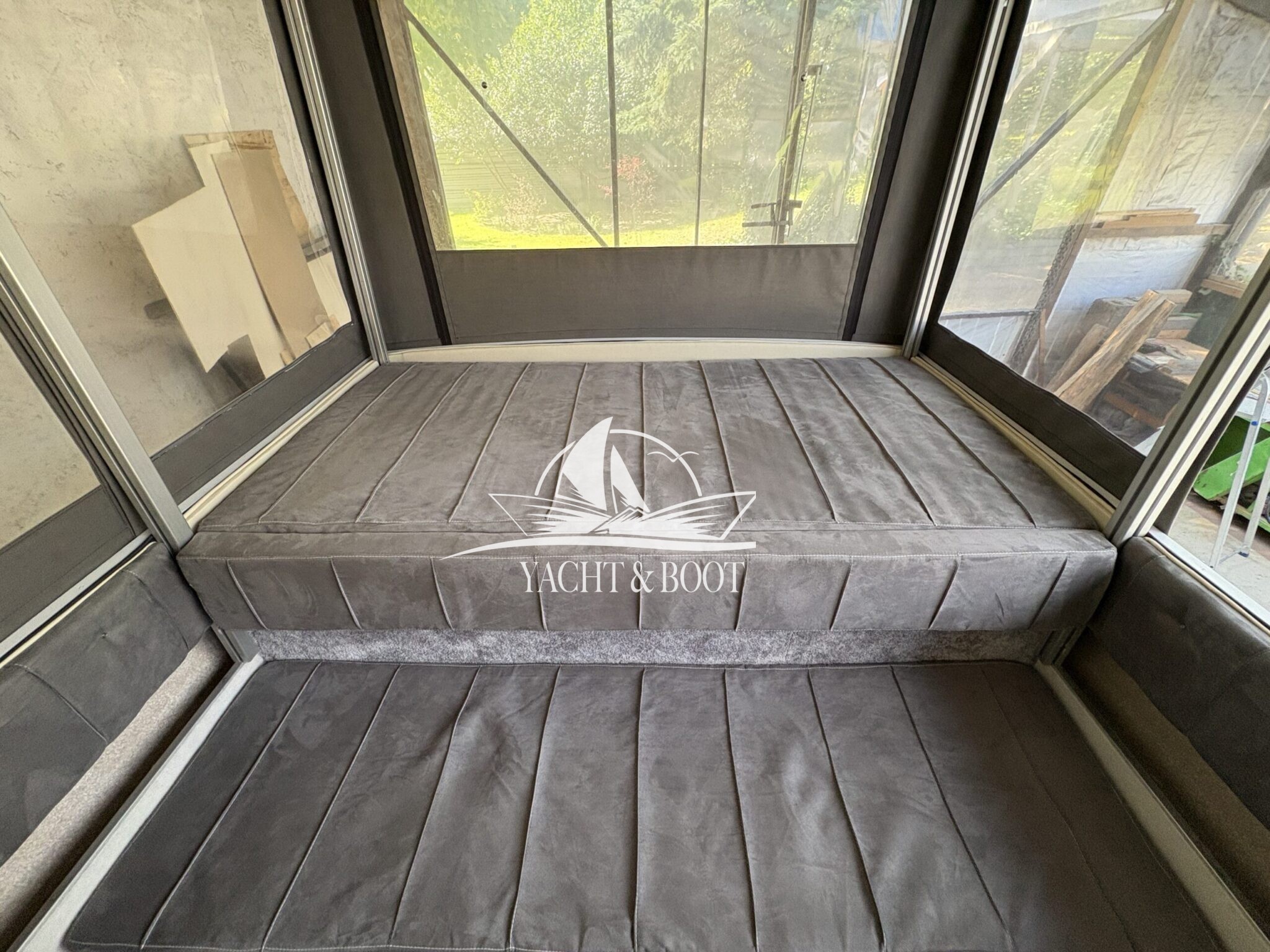 Ein besonderer Vorteil dieses Angebots: Der Eigner ist Bootsbauer, Planenmacher, Tischler und Polsterer. Dadurch ist nicht nur der Refit mit höchster Handwerksqualität umgesetzt worden, sondern auch Sonderwünsche können nach Absprache individuell erfüllt werden – sei es eine zusätzliche Plane, besondere Holzarbeiten, maßgeschneiderte Polster oder individuelle Ausstattungsdetails.