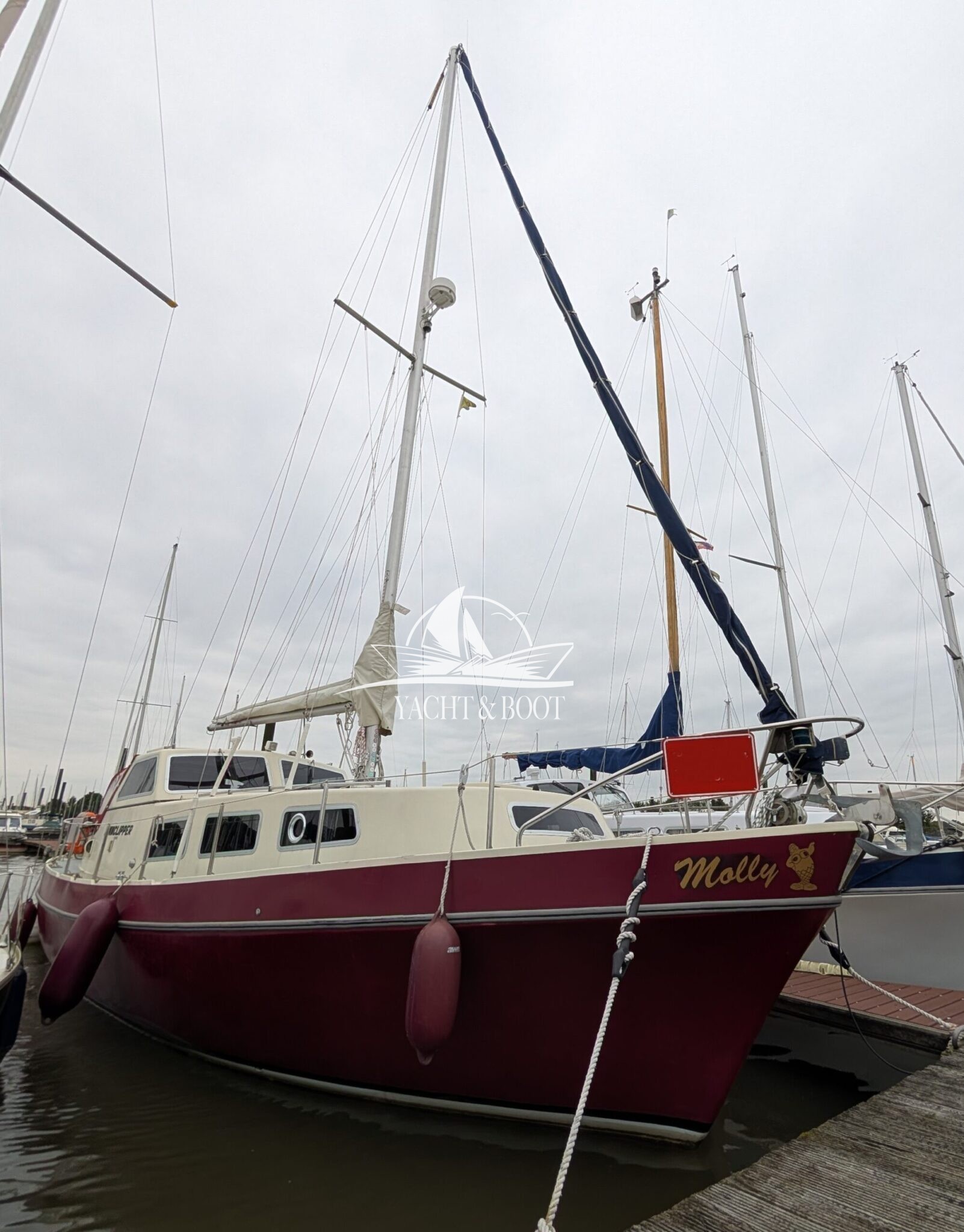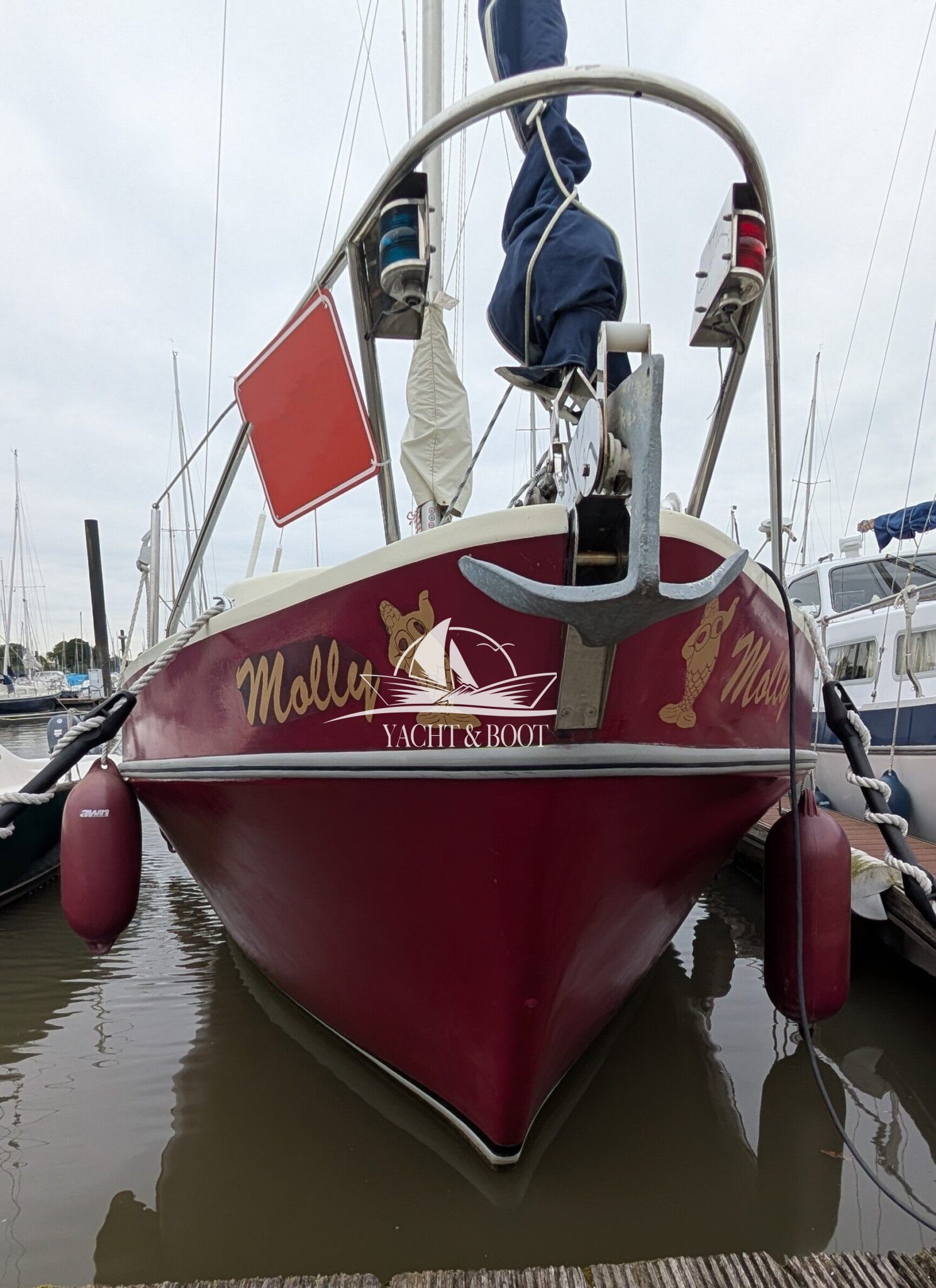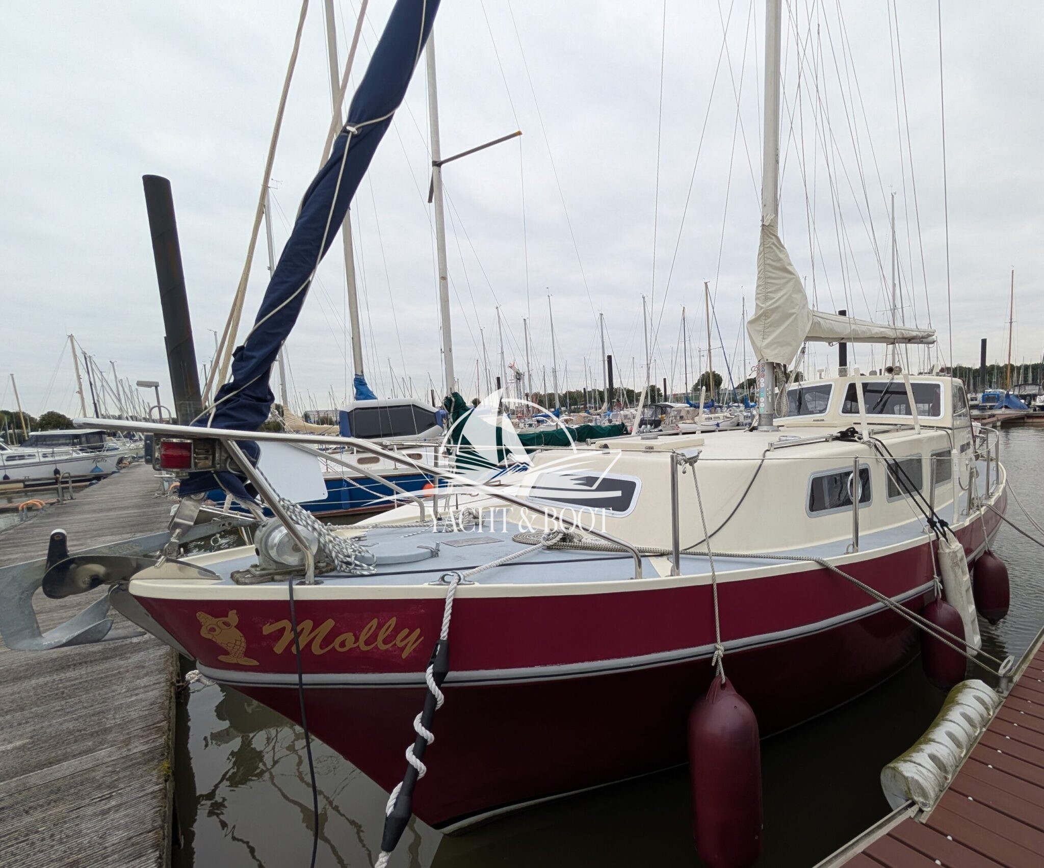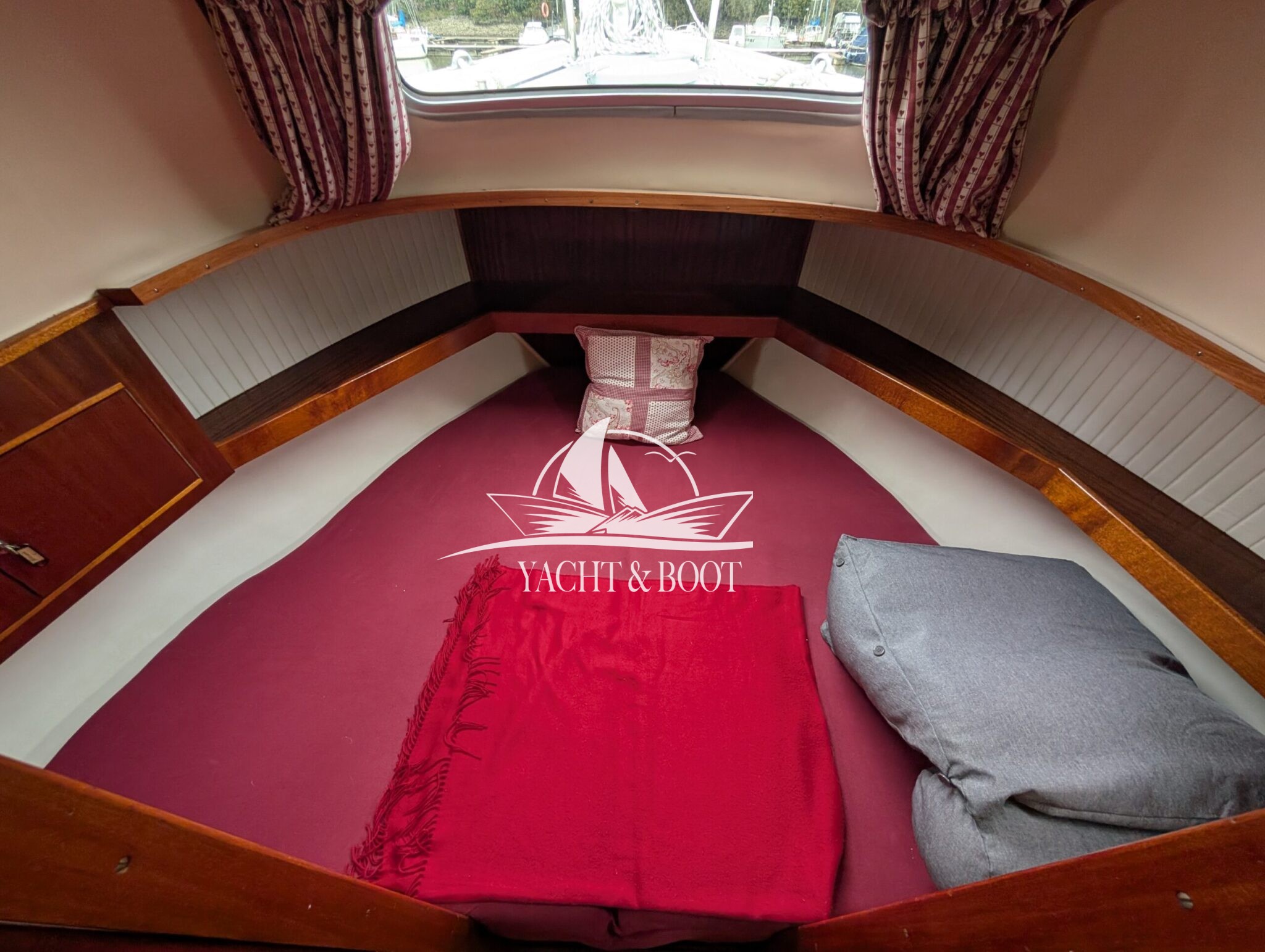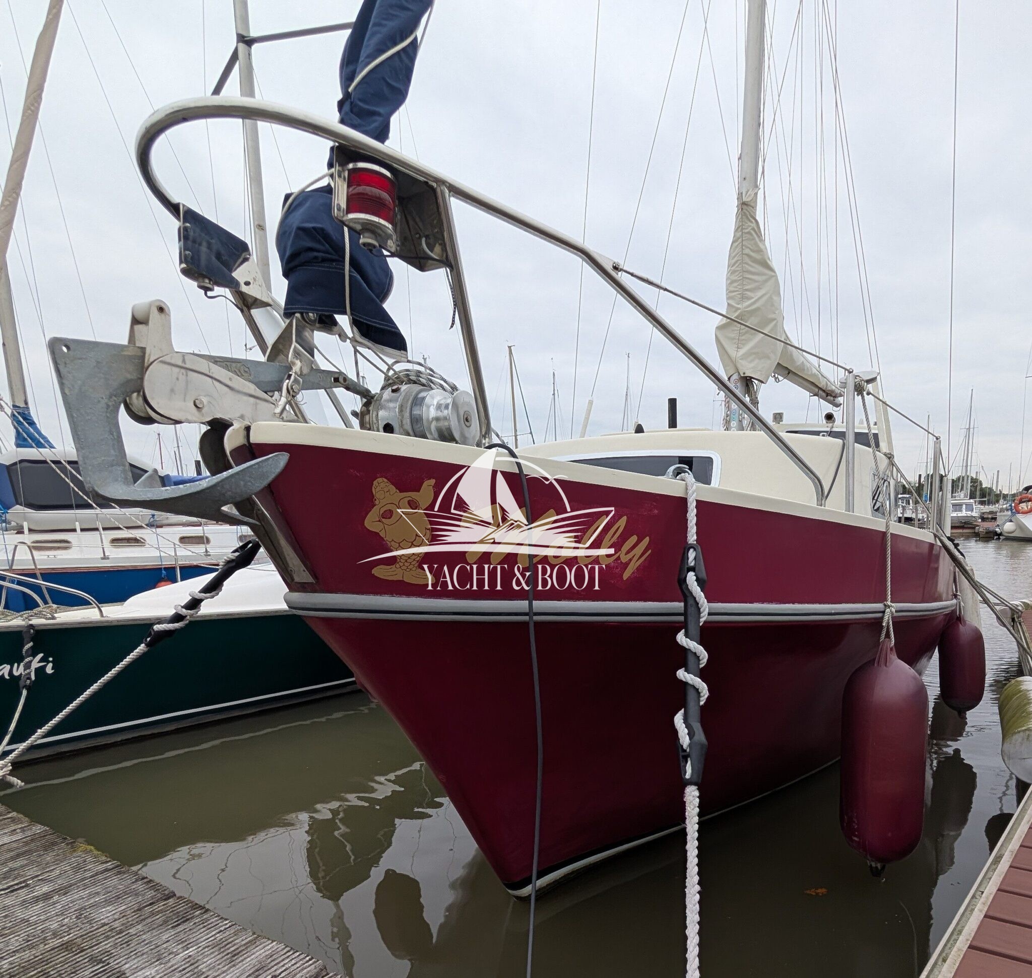 Die Finnclipper 35 „Molly“ kommt trotz ihres Alters auf nur zwei Vorbesitzer. Durch den letzten Besitzer erfuhr sie im Jahr 2015 einen kompletten Refit. Das komplette Ex- wie Interieur wurde erneuert. Die Pantry findet sich seitdem in der Plicht auf Backbordseite. Der Salon wurde dadurch erheblich vergrößert und die Gerüche der Küche bleiben draußen. Anstelle der Pantry findet man nun eine große Hundekoje mit Platz für einen Erwachsenen oder zwei Kindern vor und unter dem Steuerstand wurde ein Schrank für Hängewäsche eingebaut. In der Nasszelle findet sich ein modernes elektrisches Stand-WC aus Keramik welches sich perfekt in das hochwertig verarbeitete Interieur integriert. Auch die Bugkabine wurde komplett überarbeitet. Man sieht, fühlt und spürt in jedem Bereich der Finnclipper 35, dass der Tischlermeister sein Handwerk verstand.