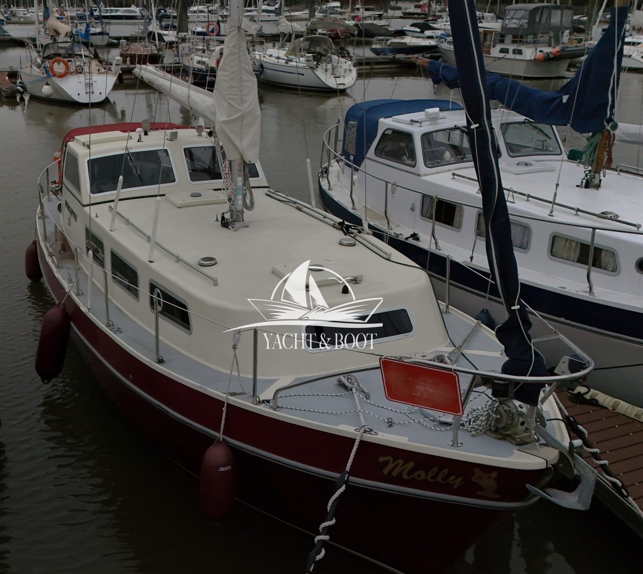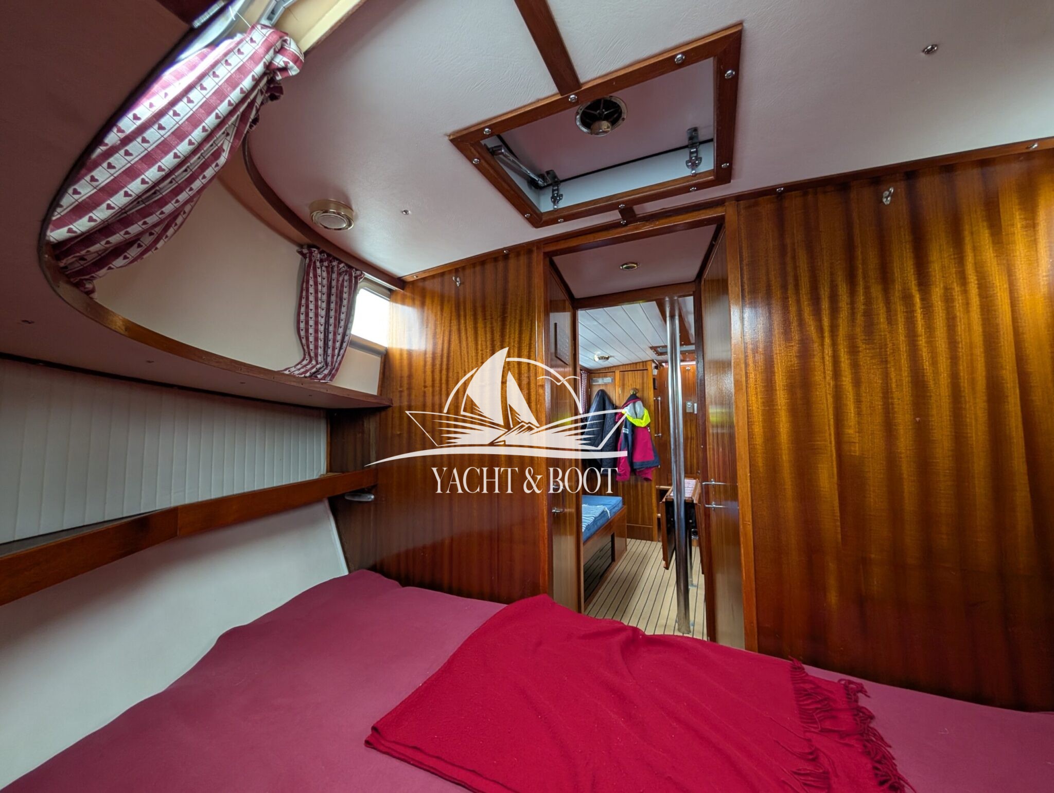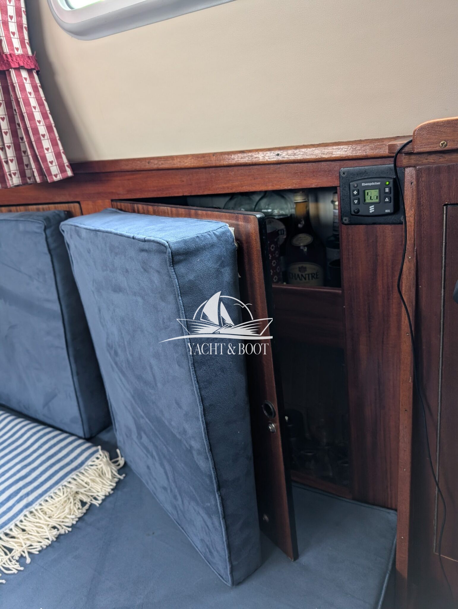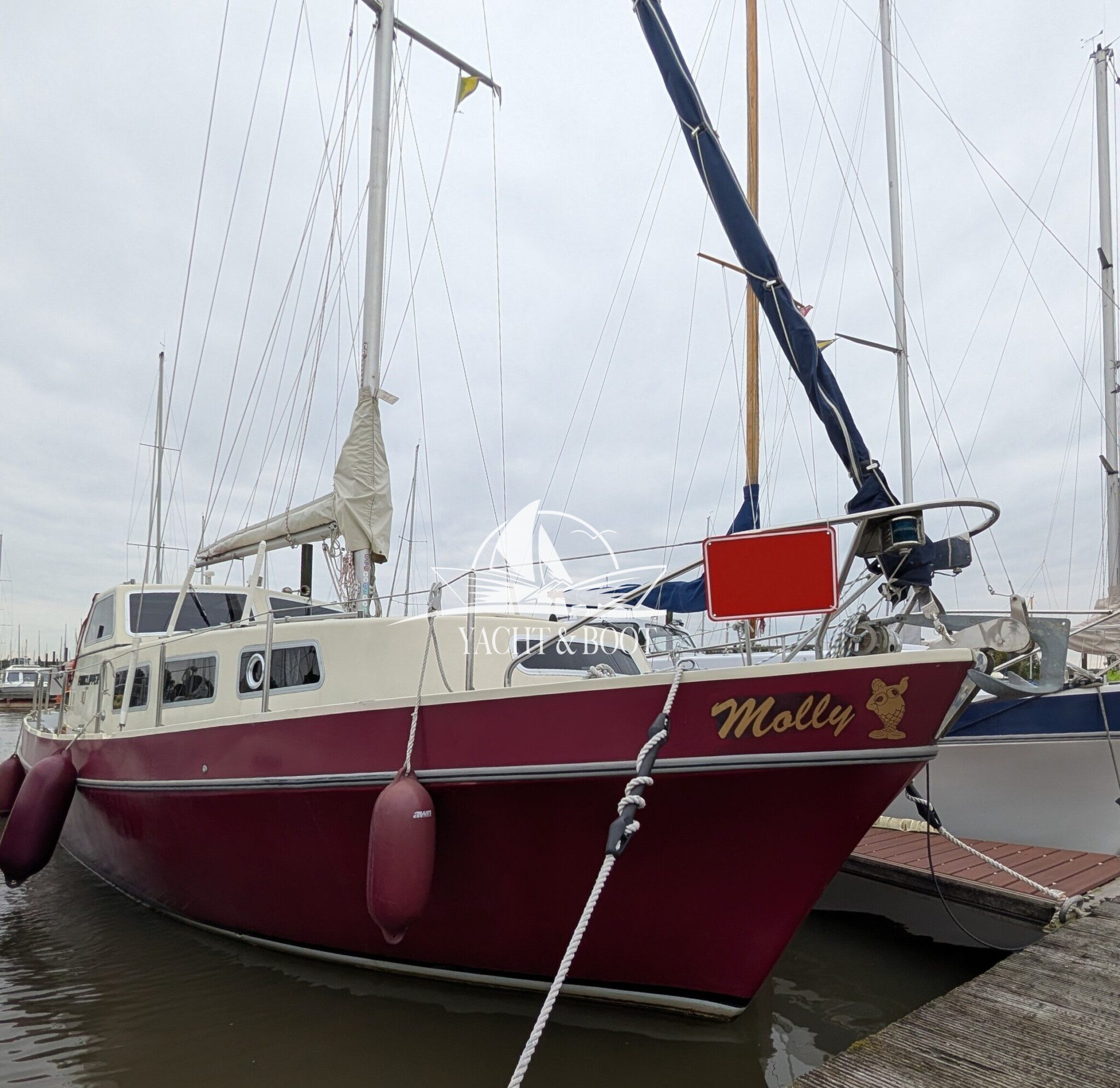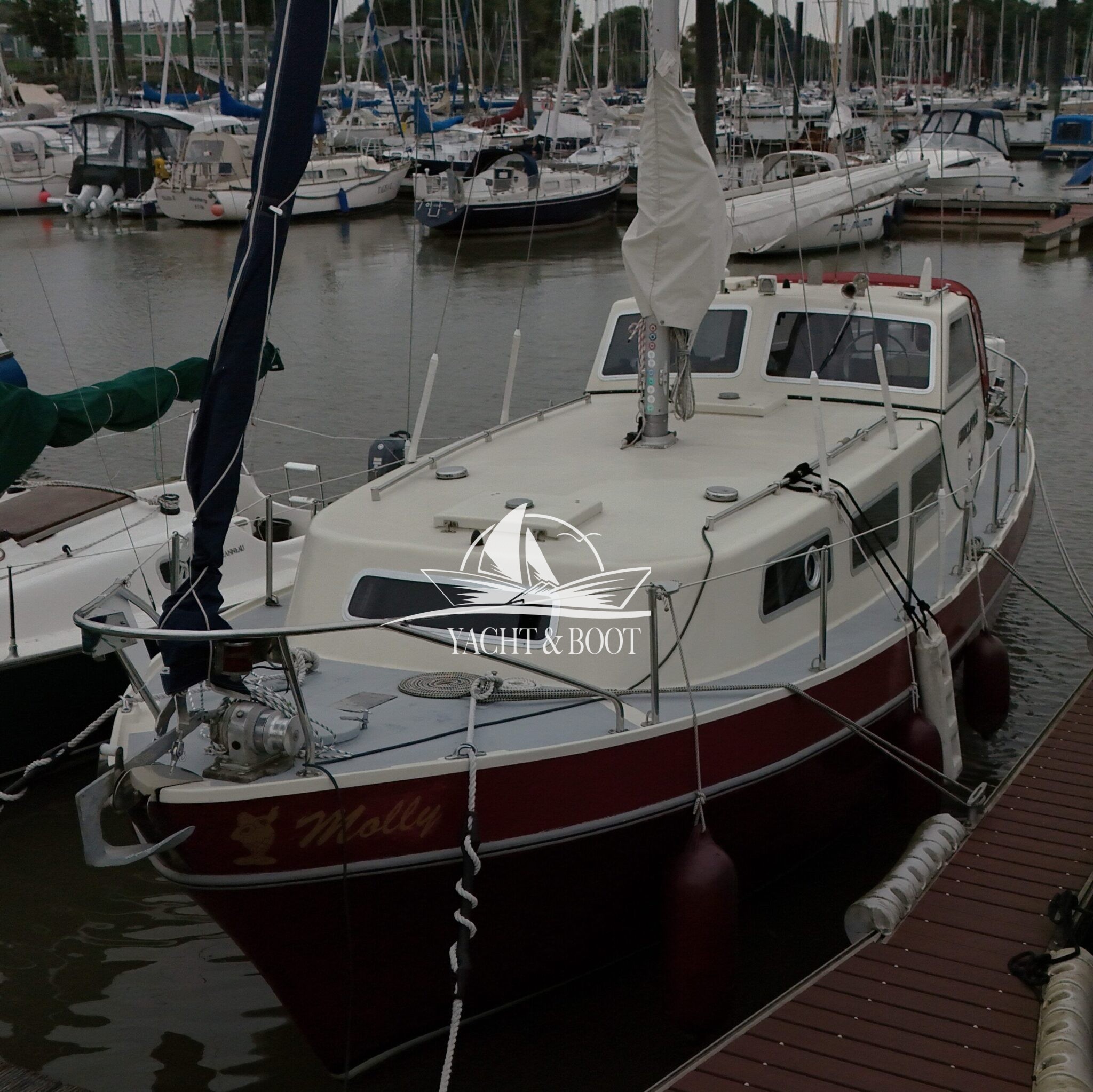 Die Finnclipper 35 „Molly“ kommt trotz ihres Alters auf nur zwei Vorbesitzer. Durch den letzten Besitzer erfuhr sie im Jahr 2015 einen kompletten Refit. Das komplette Ex- wie Interieur wurde erneuert. Die Pantry findet sich seitdem in der Plicht auf Backbordseite. Der Salon wurde dadurch erheblich vergrößert und die Gerüche der Küche bleiben draußen. Anstelle der Pantry findet man nun eine große Hundekoje mit Platz für einen Erwachsenen oder zwei Kindern vor und unter dem Steuerstand wurde ein Schrank für Hängewäsche eingebaut. In der Nasszelle findet sich ein modernes elektrisches Stand-WC aus Keramik welches sich perfekt in das hochwertig verarbeitete Interieur integriert. Auch die Bugkabine wurde komplett überarbeitet. Man sieht, fühlt und spürt in jedem Bereich der Finnclipper 35, dass der Tischlermeister sein Handwerk verstand.