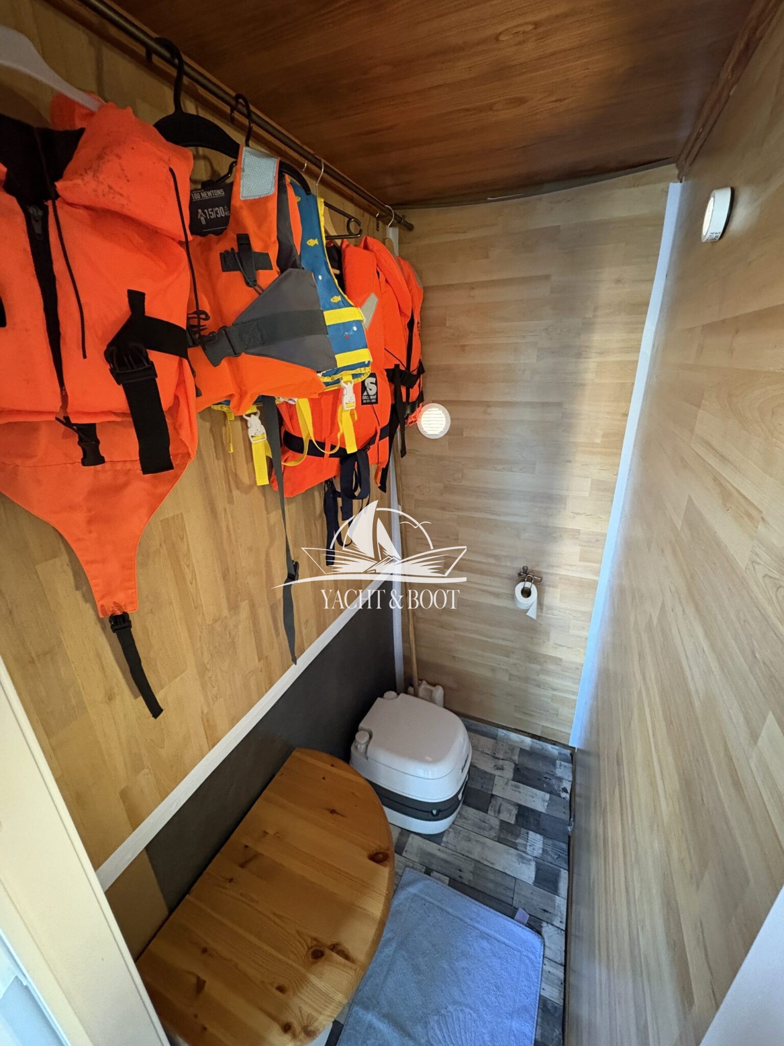 Neben der wohnlichen Einrichtung verfügt das Boot über eine umfangreiche Sicherheitsausstattung mit Signalhorn, Erste-Hilfe-Kasten, Schwimmwesten und vielem mehr, sodass Sie jederzeit gut geschützt unterwegs sind.