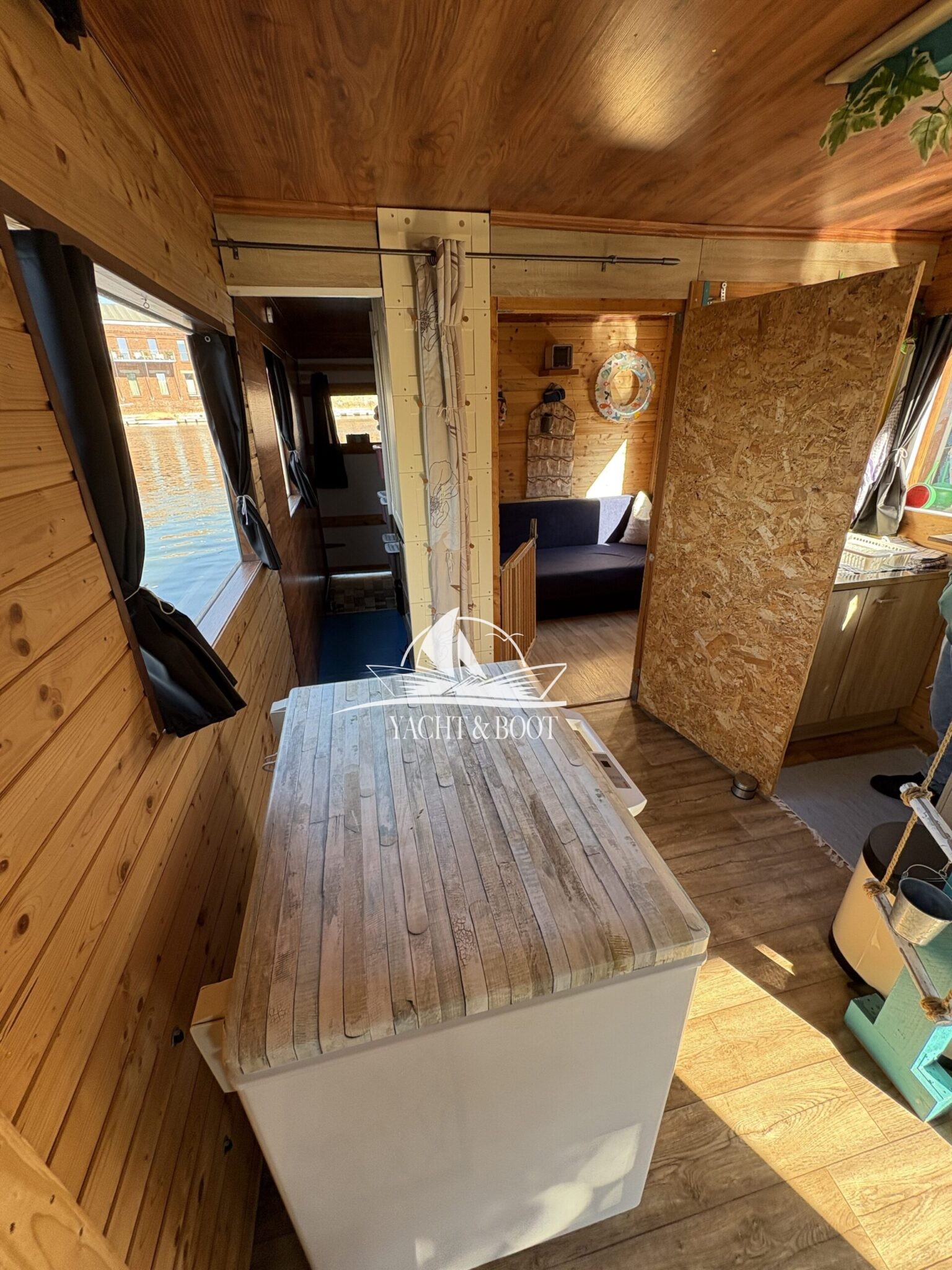 Zum Verkauf steht ein außergewöhnliches Hausboot, das modernen Komfort mit individuellem Eigenbaucharme verbindet. Der Grundbau wurde 2021 in Zusammenarbeit mit der Werft Treibgut GbR umgesetzt, der Innenraum in diesem Jahr mit viel Liebe zum Detail in Eigenarbeit ausgebaut. Herausgekommen ist ein schwimmendes Zuhause, das gleichermaßen zum Wohnen, Reisen und Träumen einlädt.