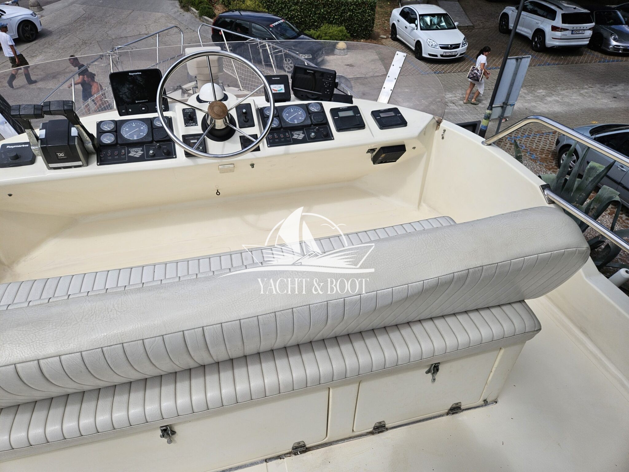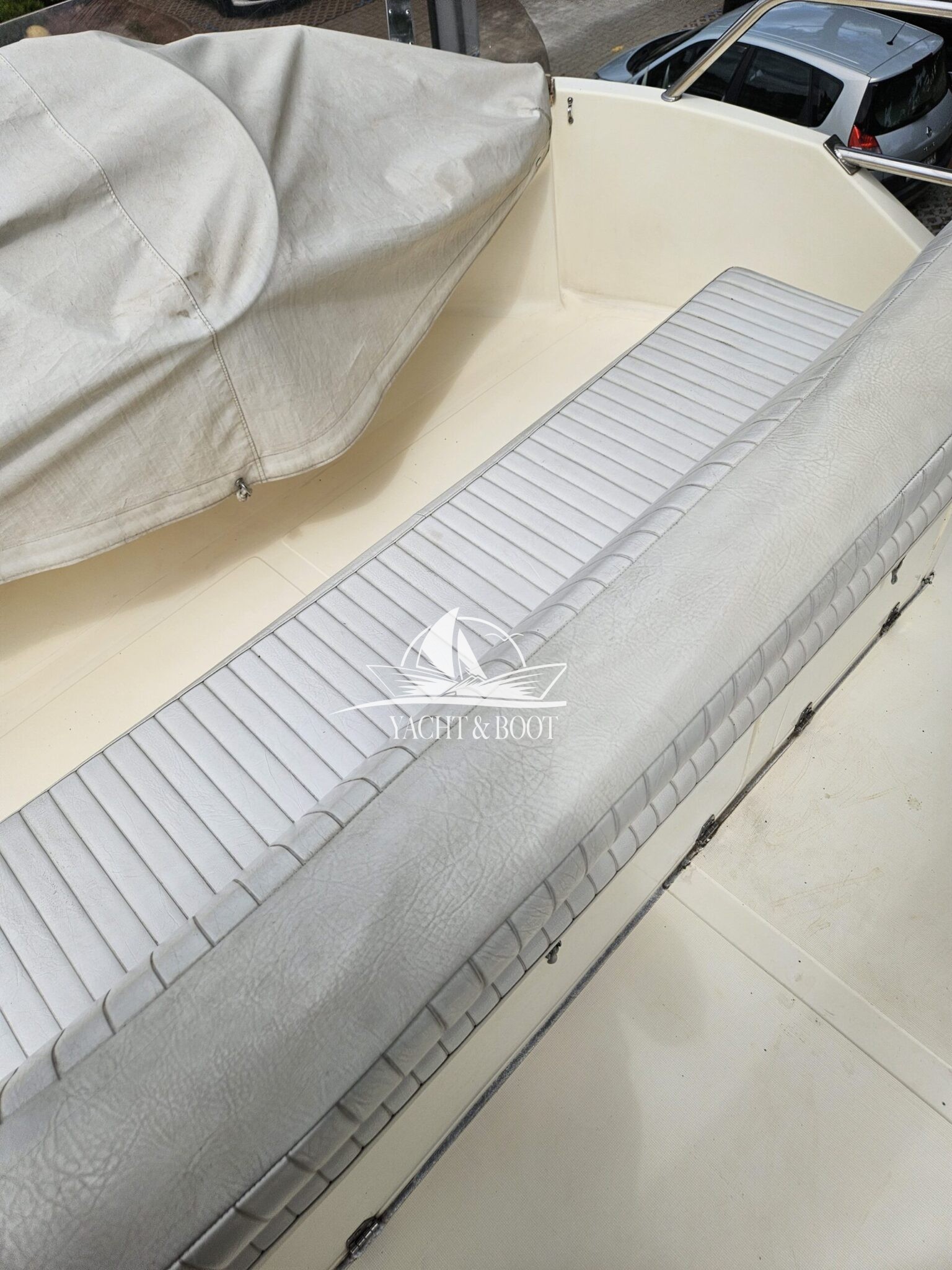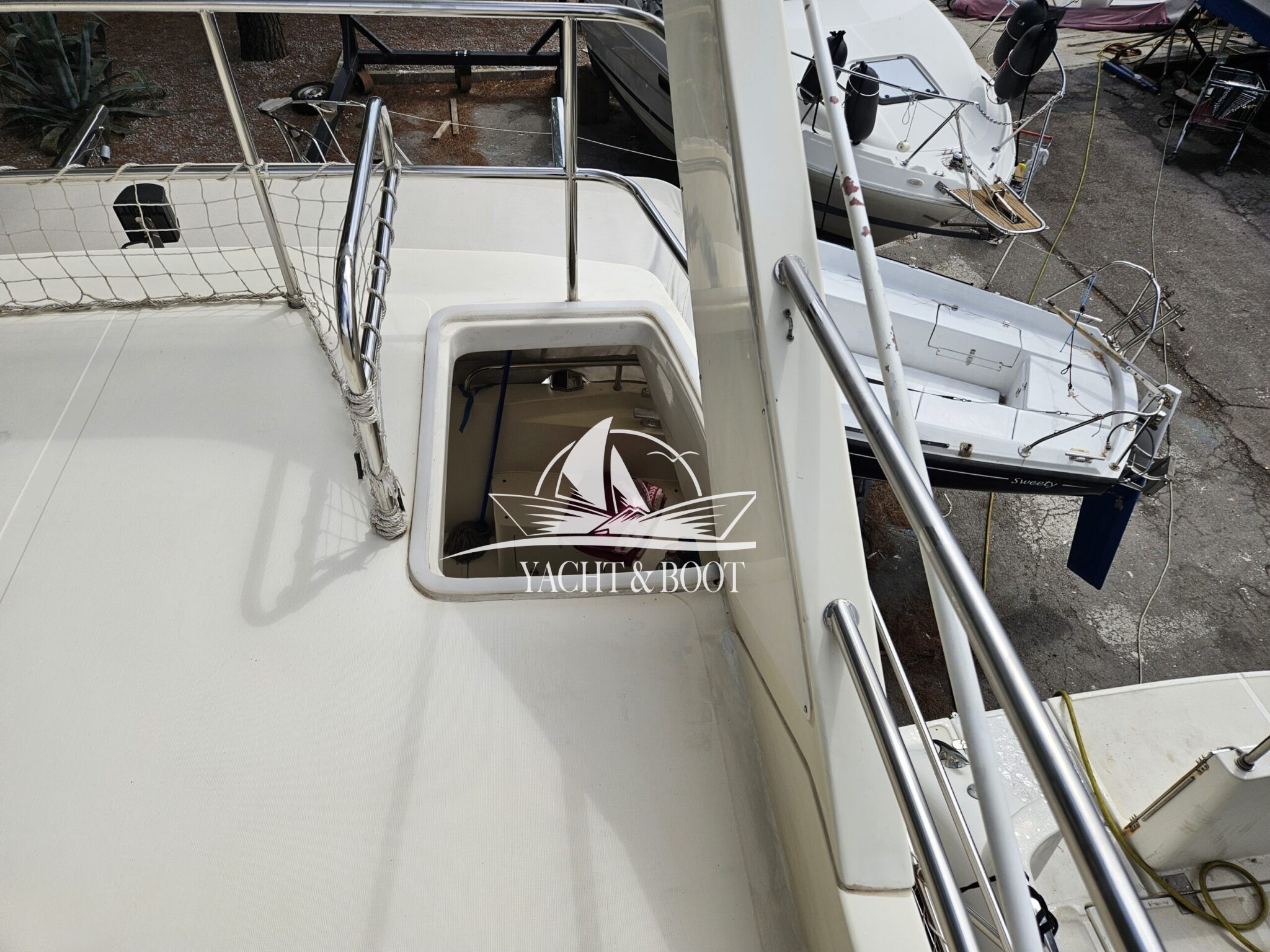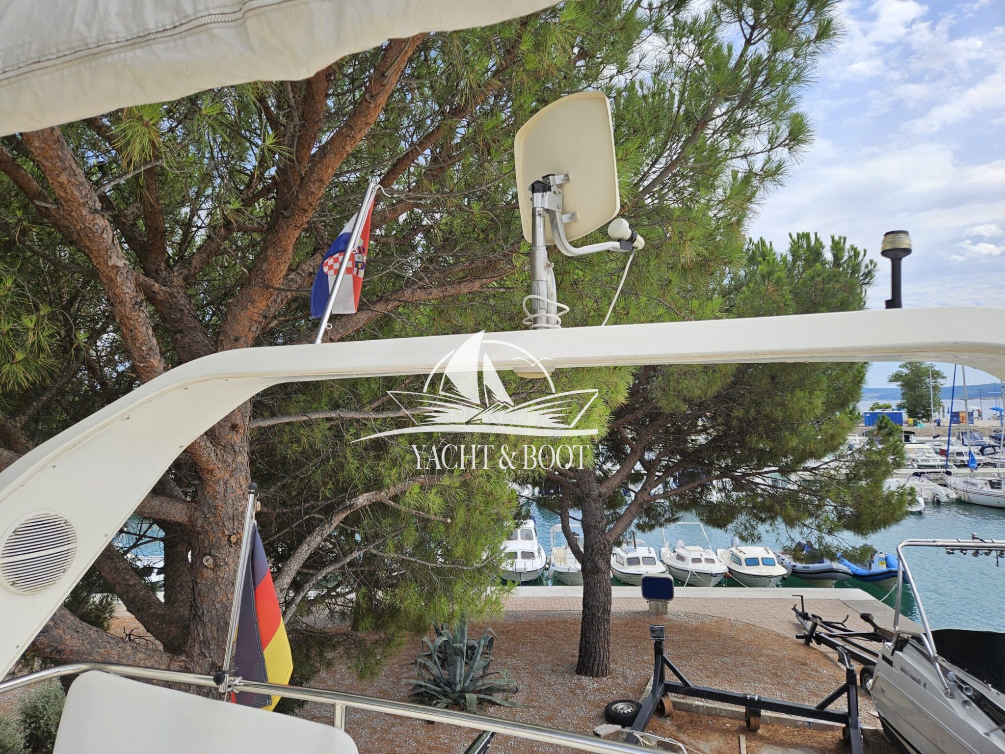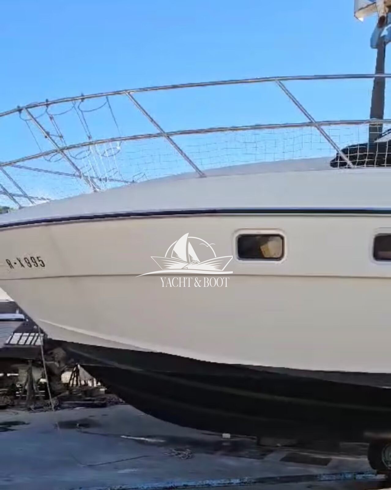 Aktuell steht das Boot im Freien, da – wie jedes Jahr – die Zinkanoden gewechselt werden. Diese regelmäßige Instandhaltung sorgt dafür, dass das Boot technisch einwandfrei und sofort einsatzbereit ist.