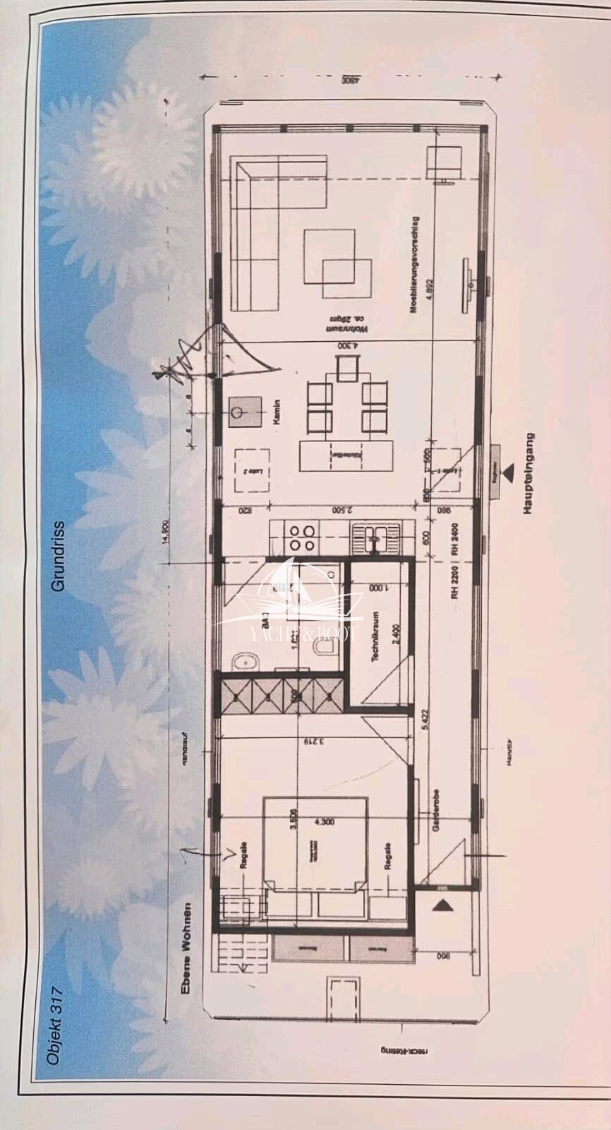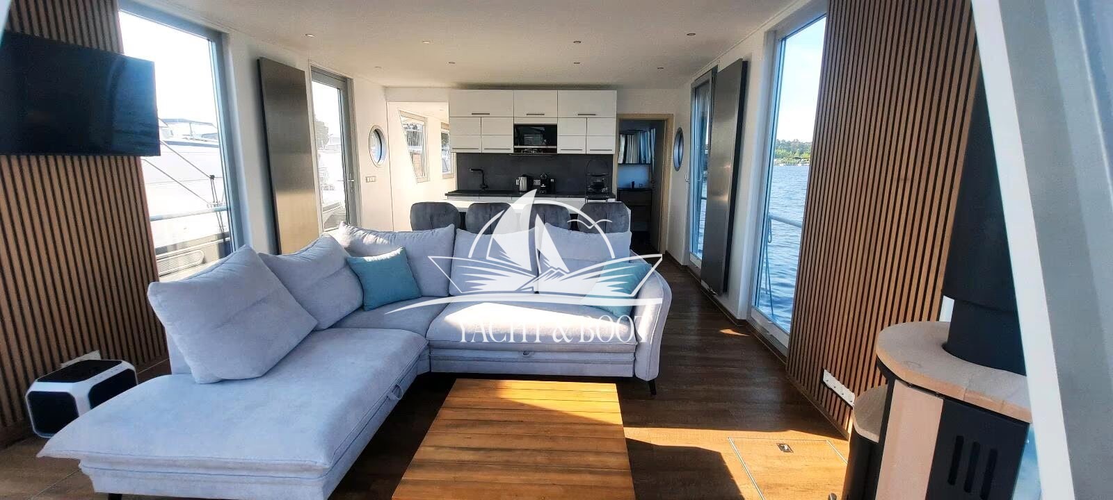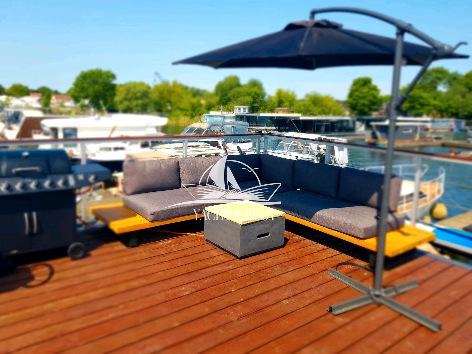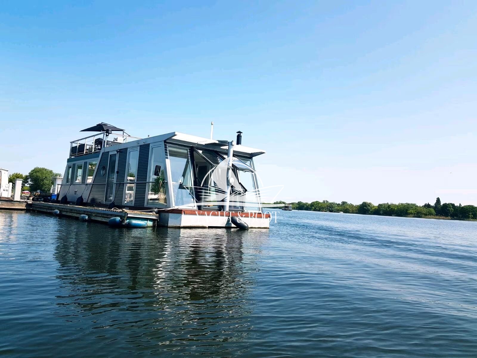 Mit einer großzügigen Länge von 14,5 m und einer Breite von 4,20 m bietet das Hausboot ca. 56 m² stilvoll gestaltete Wohnfläche – ergänzt durch eine traumhafte Dachterrasse mit 26 m² Fläche. Ob beim Sonnenaufgang mit einer Tasse Kaffee oder beim Sundowner mit Freunden – hier genießen Sie unvergessliche Ausblicke und entspannte Momente im Einklang mit der Natur.