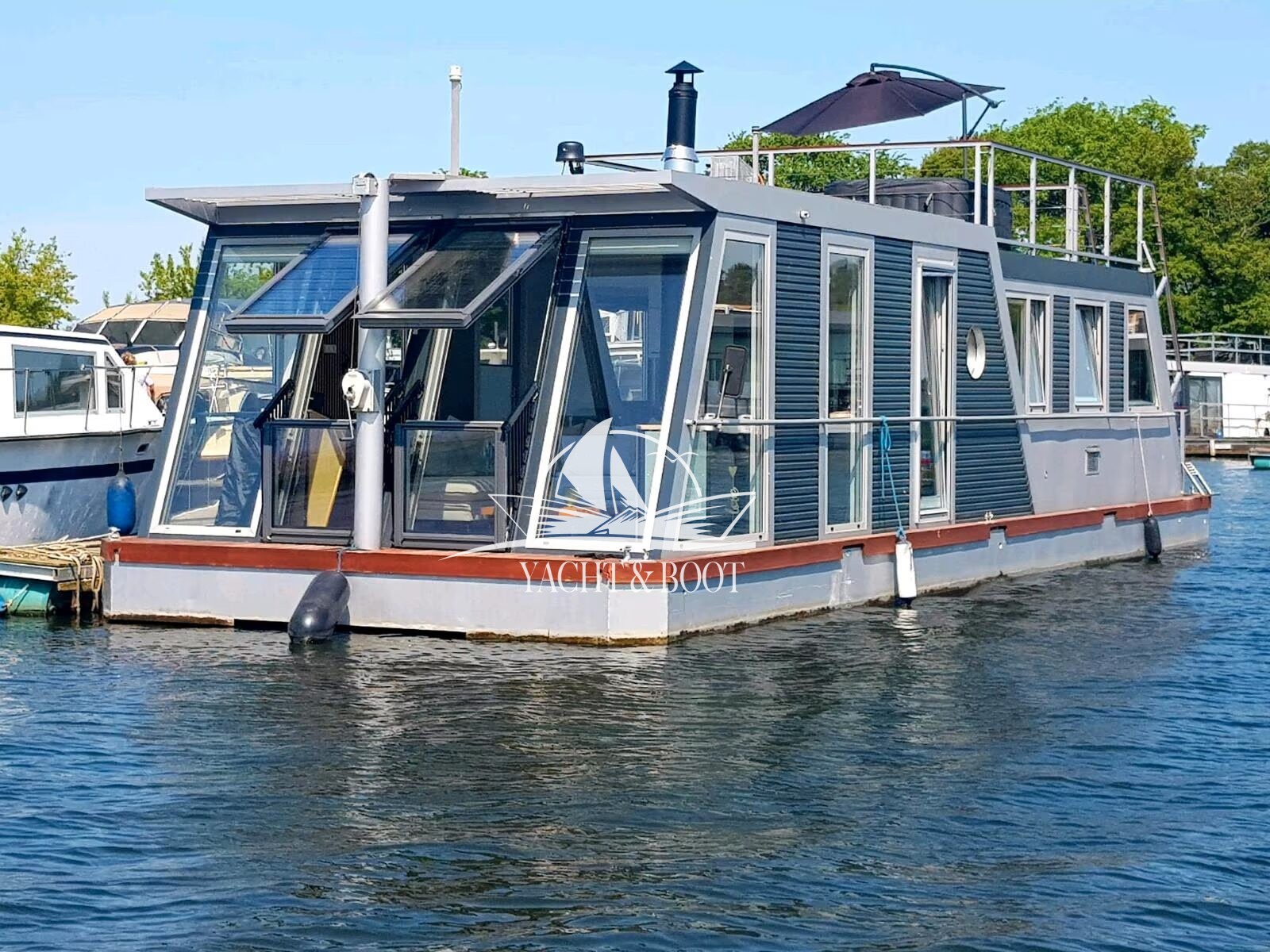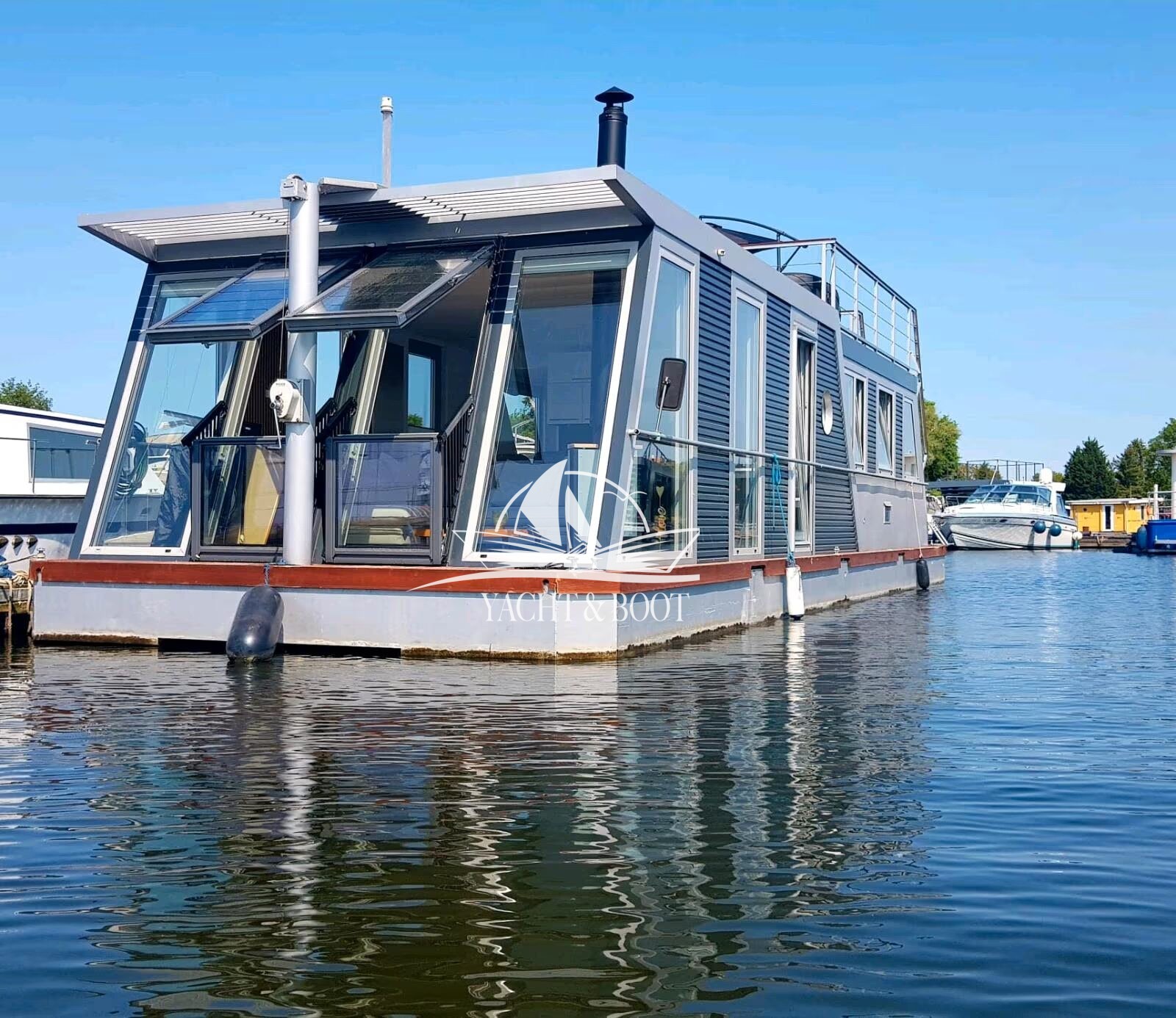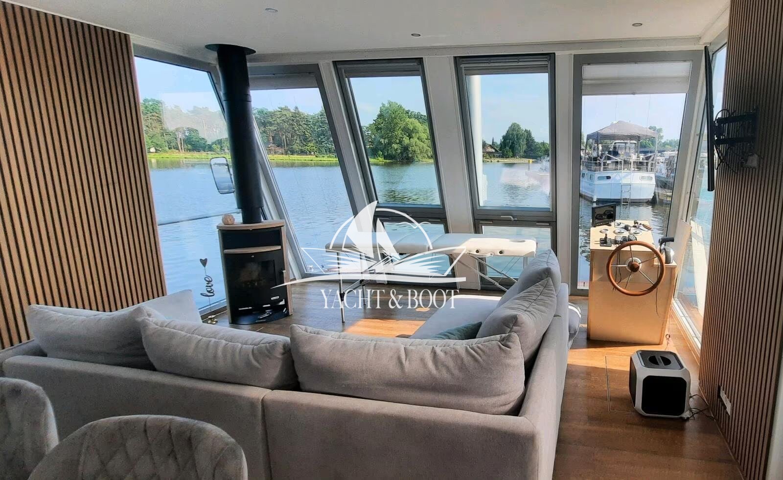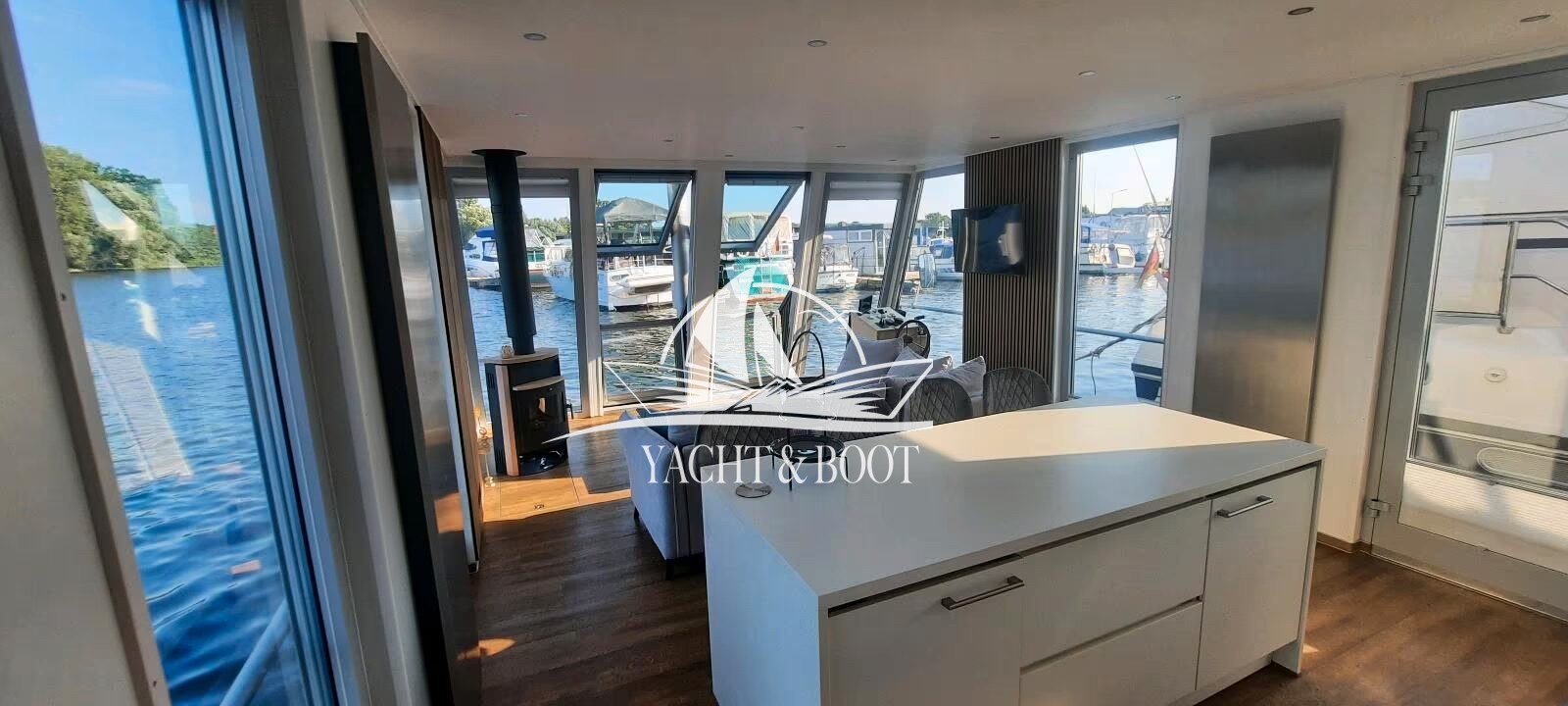 Exklusives Hausboot aus Aluminium mit Wohnkomfort, Technik & Naturerlebnis