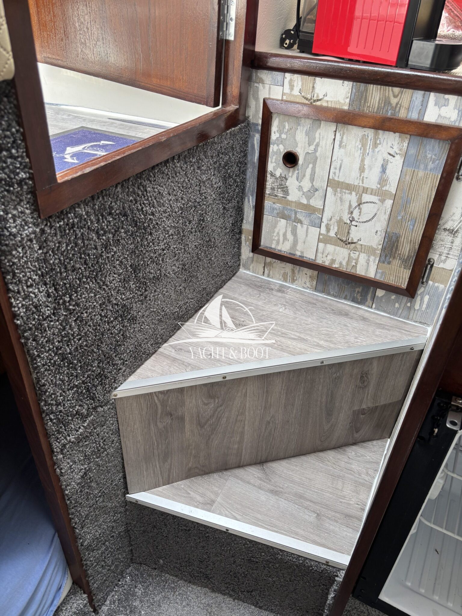 Innenraum: Alle Holzteile geschliffen und neu lasiert, Verkleidungen weiß lackiert