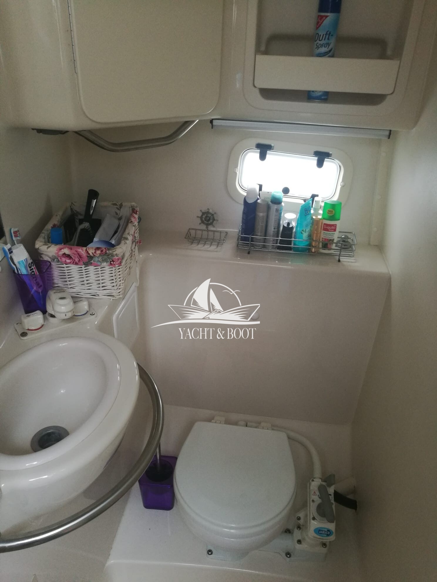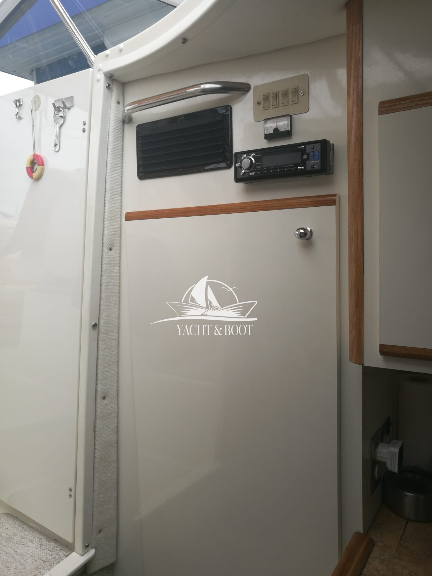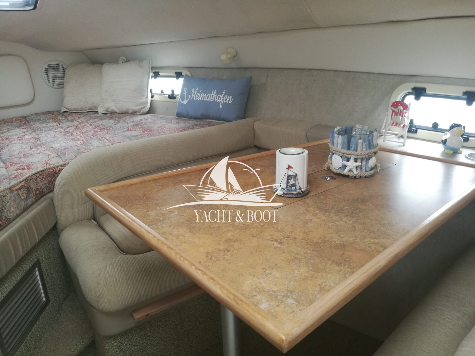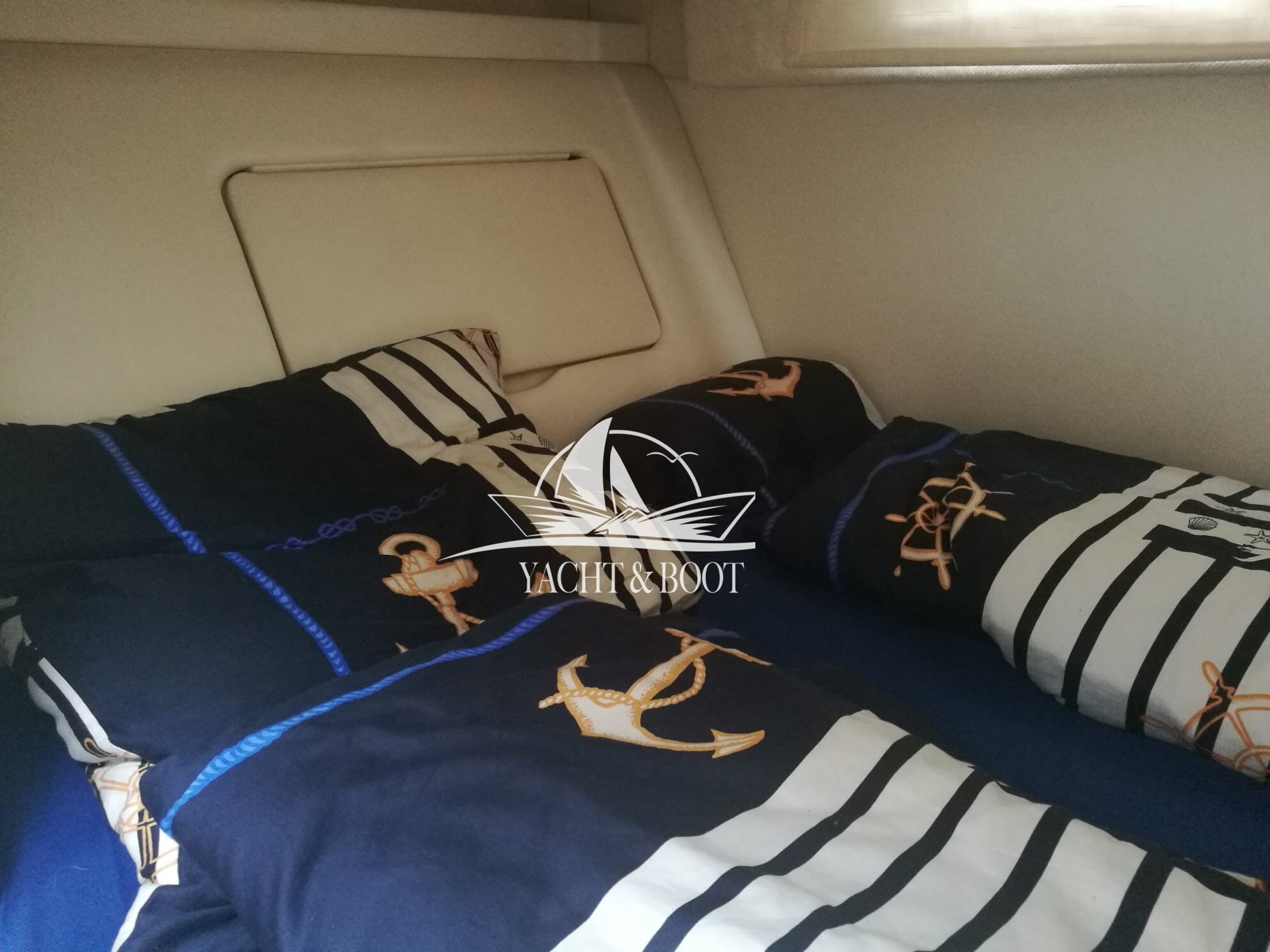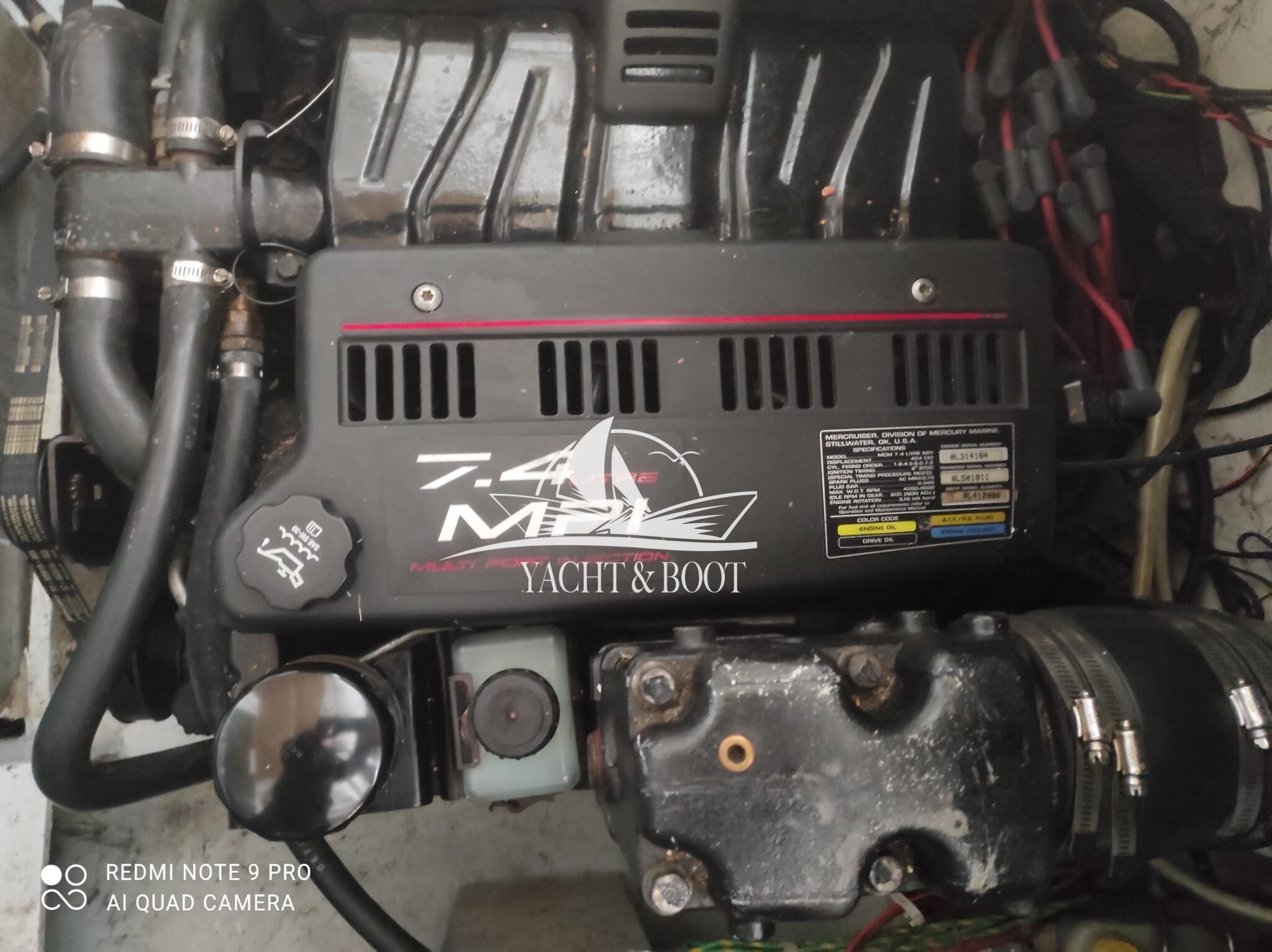 Angetrieben wird die Yacht von einem MerCruiser 7,4 L MPI V8 mit 325 PS und Z-Antrieb (Bravo III). Diese Kombination ermöglicht kraftvolle Beschleunigung und souveränes Gleitverhalten bei gleichzeitig effizientem Kraftstoffverbrauch. Der Motor befindet sich in sehr gutem technischen Zustand, alle Wartungen wurden regelmäßig durchgeführt. Der Unterwasseranstrich wurde 2025 erneuert, die Bälge und der Kraftstofffilter sind neu, der Ölwechsel ist erledigt, und der Rumpf wird vor Saisonbeginn nochmals komplett poliert.