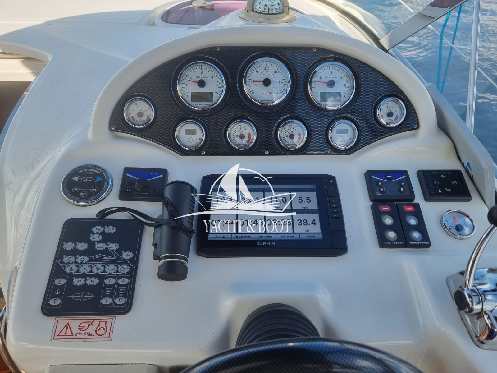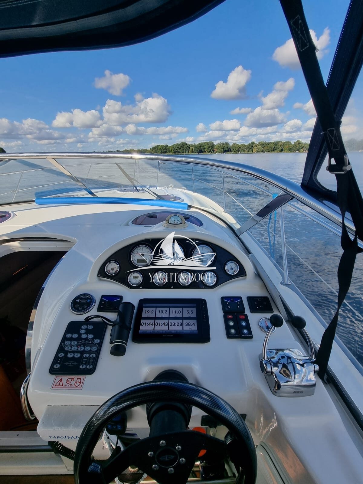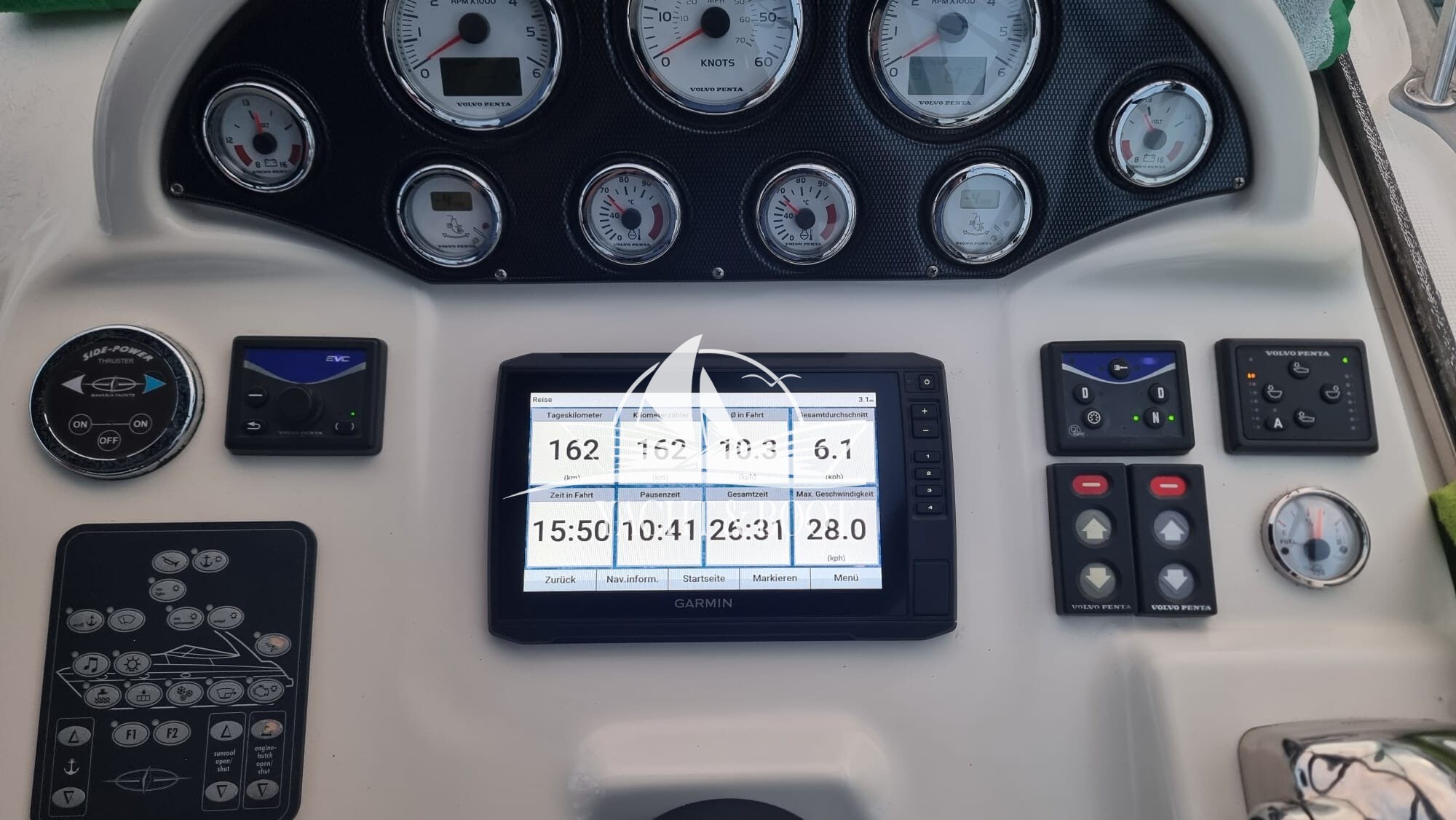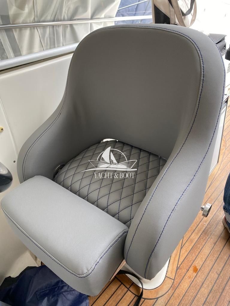 Zur Navigationsausstattung gehören GPS, Kartenplotter, VHF-Funkgerät, Echolot, Fischfinder, Kompass, Geschwindigkeitsanzeige, Ruderstandsanzeige und Positionslampen. Für Unterhaltung sorgen Radio, MP3-Player, Bluetooth-Konnektor und Cockpit-Lautsprecher – ideal für entspannte Stunden an Bord.