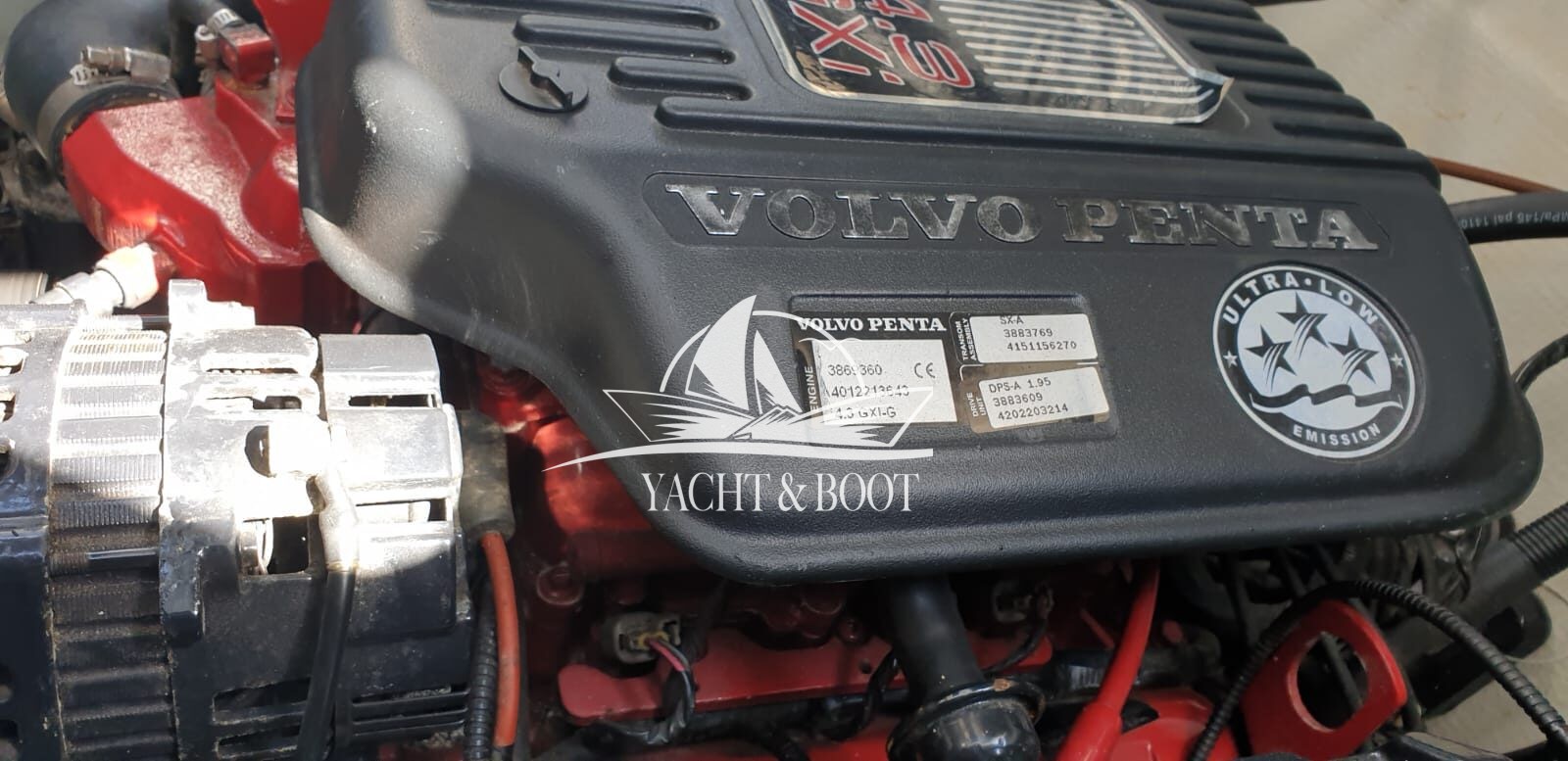 Angetrieben wird das Boot von zwei Volvo Penta V8-Benzin-Innenbordmotoren mit jeweils 225 PS (Gesamtleistung 450 PS), die für souveräne Beschleunigung und sportliche Gleitfahrt sorgen. Beide Motoren (Baujahr 2007) wurden im Zuge des Refits umfassend gewartet und verfügen über rund 600 Betriebsstunden. Die Kombination aus Hydrauliklenkung, Z-Antrieben aus Edelstahl und Bugstrahlruder macht die Bavaria 700 Cruiser leicht manövrierbar – ideal für sicheres Handling auch in engen Häfen.