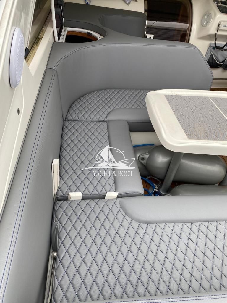 Mit einer Länge von 10,40 Metern und einer Breite von 3,45 Metern bietet die Yacht großzügigen Platz für Familie und Freunde. Der grau folierte Rumpf verleiht der „Paarship 2.0“ eine moderne, elegante Linie, die perfekt mit den neuen grauen Polstern mit schwarzer Stickerei harmoniert – eine stilvolle Kombination, die das Erscheinungsbild deutlich aufwertet.