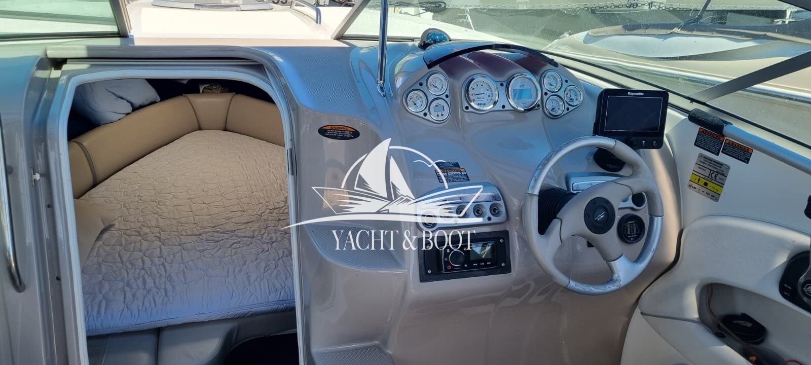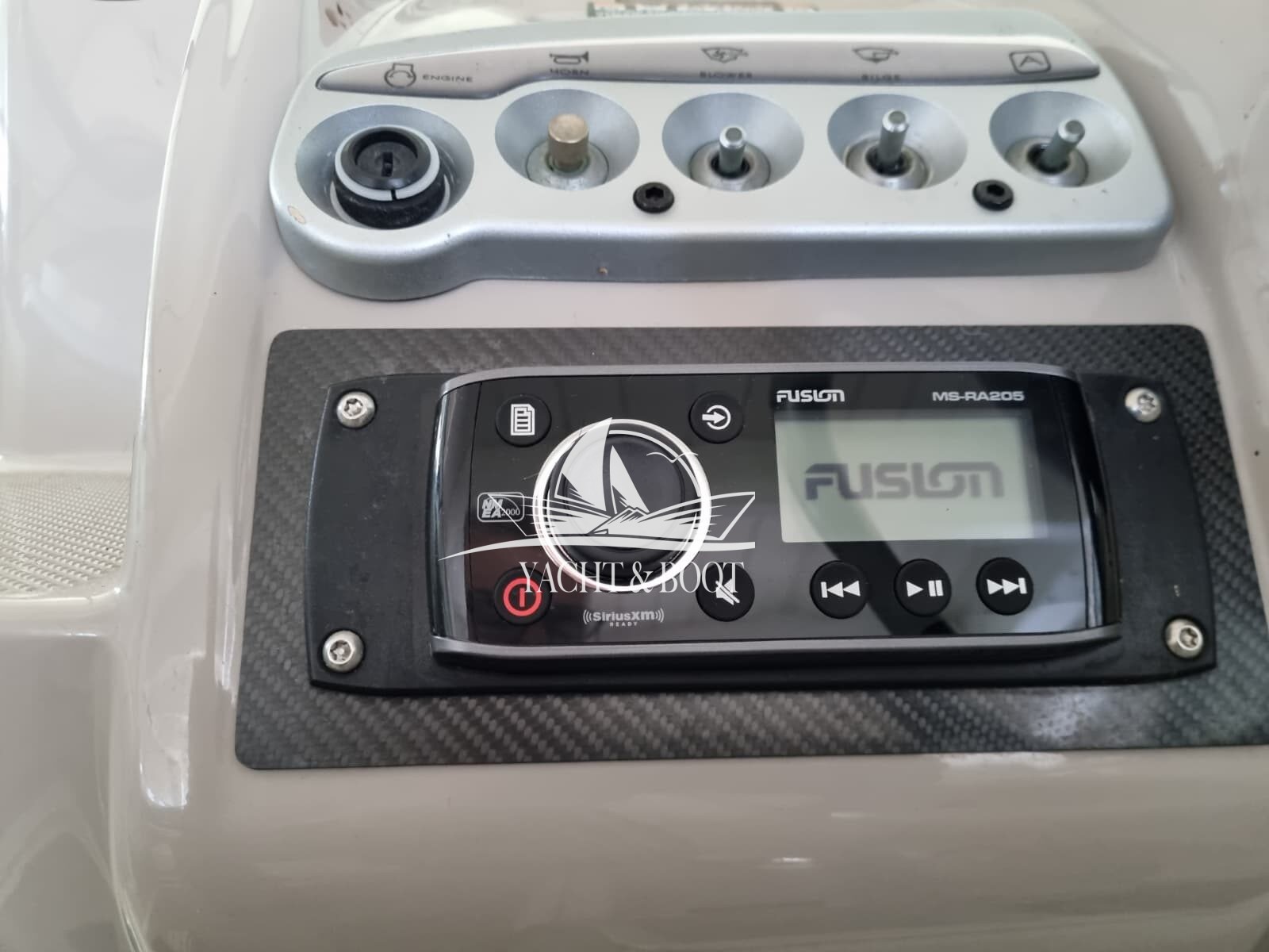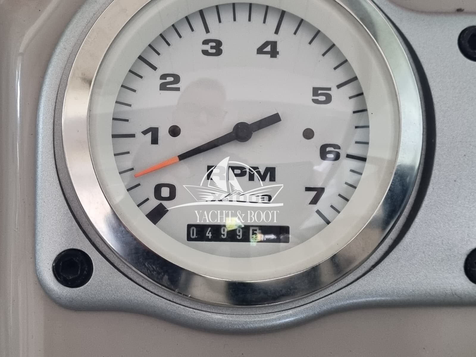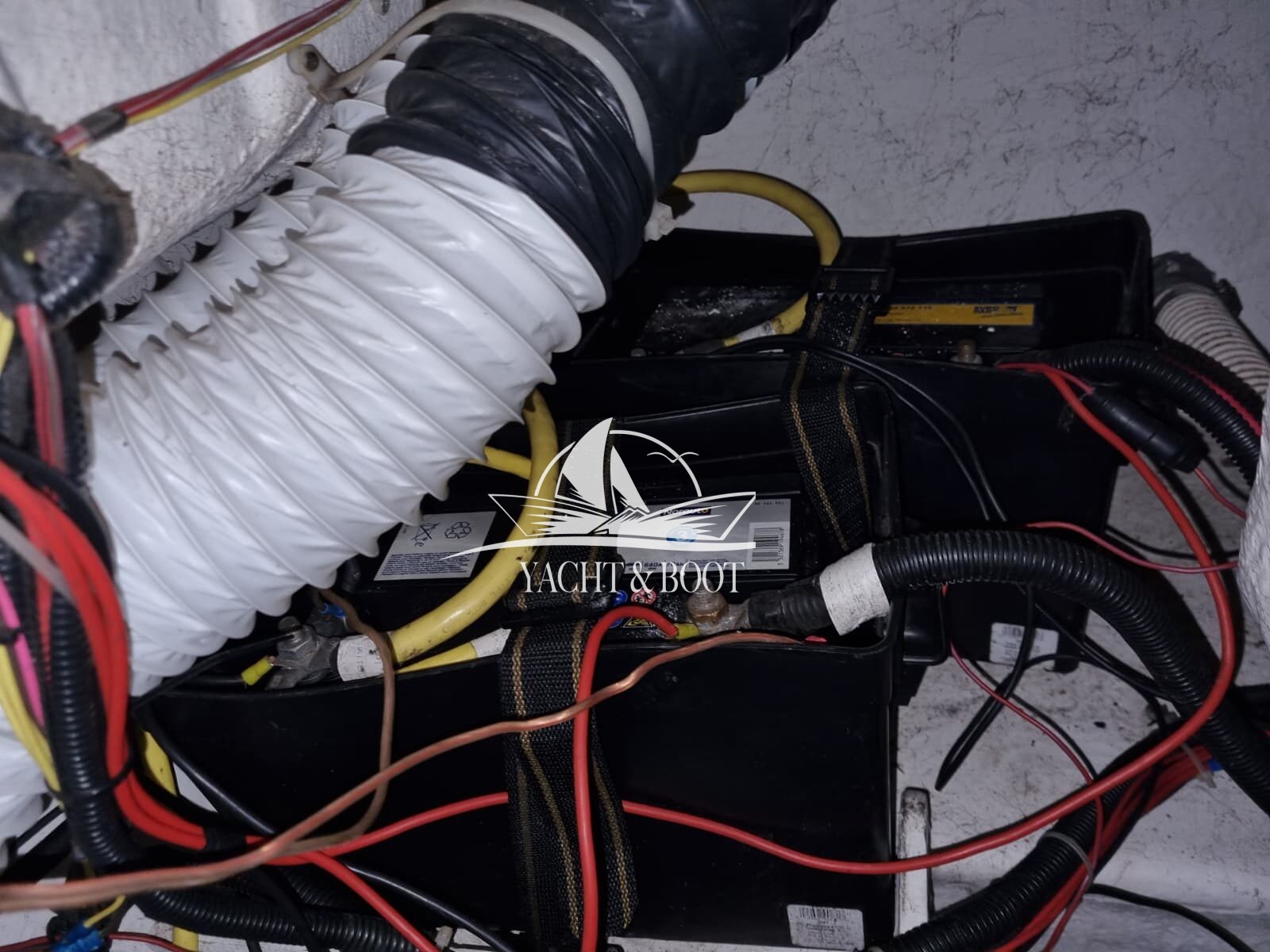 Das Boot verfügt über ein Camperverdeck, ein Bimini-Top und eine Abdeckplane für den Transport. Ebenfalls vorhanden sind zwei Starterbatterien, Fender, Leinen, alle originalen Polster sowie eine große Badeplattform.