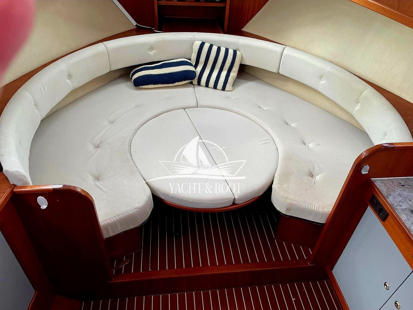 Der helle Salon lädt zum Verweilen ein und bietet dank großer Fensterflächen einen schönen Rundumblick. Eine funktionale Pantry, mehrere Schlafmöglichkeiten und ein geräumiger Sanitärbereich machen diese Yacht zu einem perfekten Begleiter für Wochenendtörns oder ausgedehnte Urlaubsfahrten.