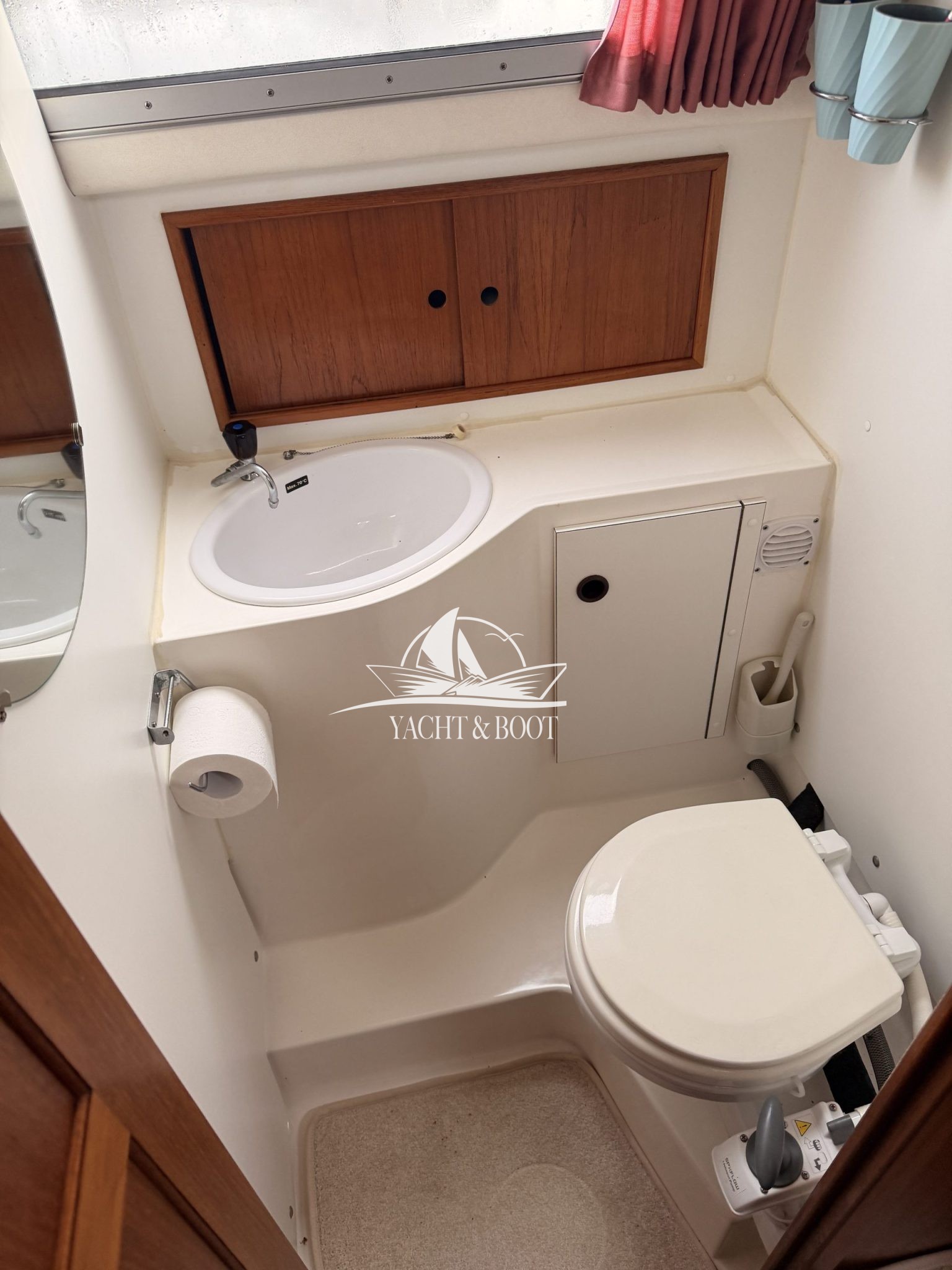 Ein Bugstrahlruder sorgt für müheloses Manövrieren im Hafen, das Solarpanel liefert zusätzliche Energie auf längeren Törns, und die Badeplattform lädt zu entspannten Stunden im Wasser ein. An Bord finden sich außerdem ein Petroleum-Cerankocher für sichere und zuverlässige Küche sowie ein WC mit Fäkalientank für unabhängige Fahrten.