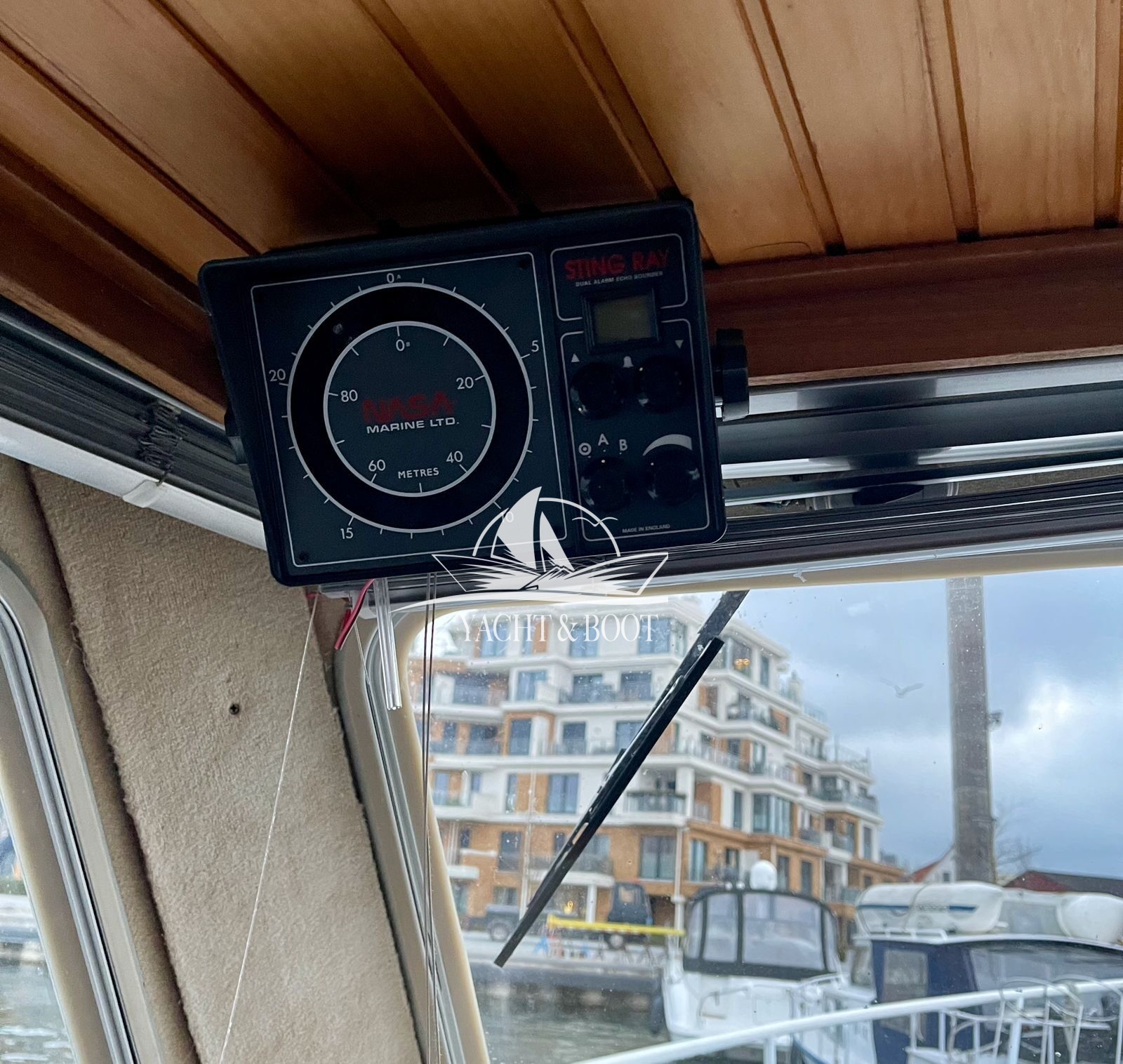 Navigationsseitig verfügt die Gruno über Garmin GPS, Kartenplotter, Binnenfunk (Lizenz umzumelden), Kompass, Echolot, Geschwindigkeitsanzeige, Positionslampen und Drehzahlmesser. Für Unterhaltung an Bord sorgen Radio, TV, DVD, MP3, Bluetooth sowie Außenlautsprecher im Cockpit.