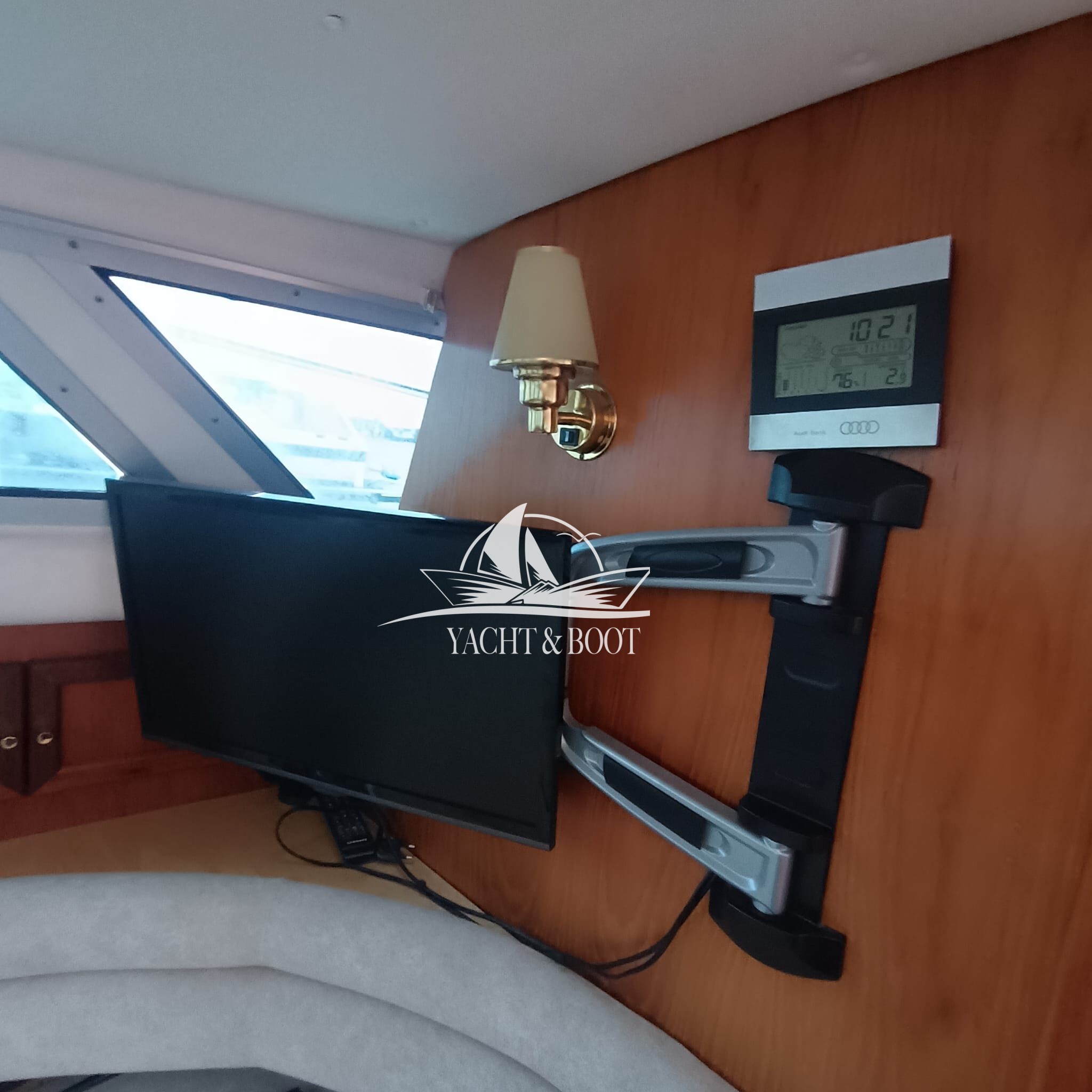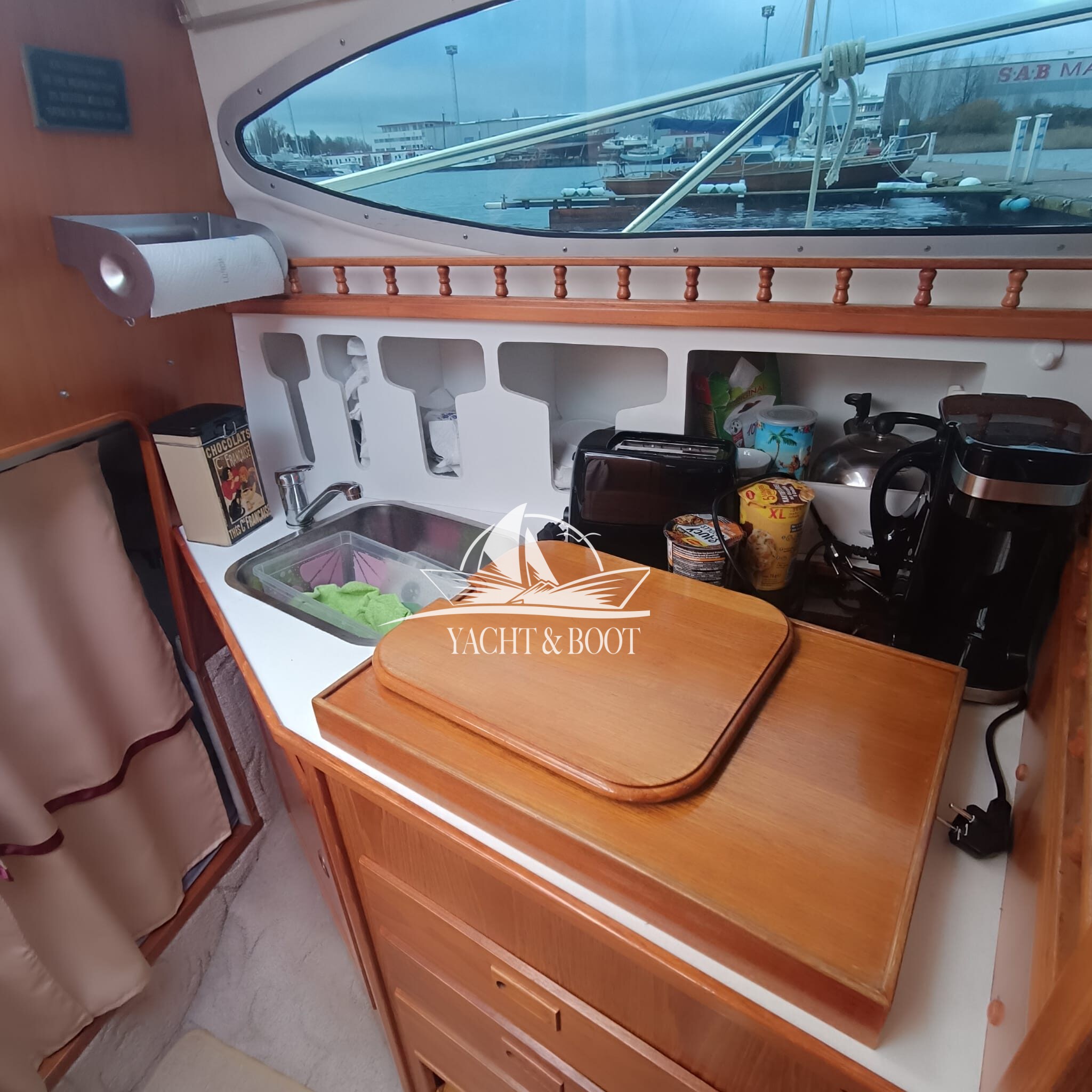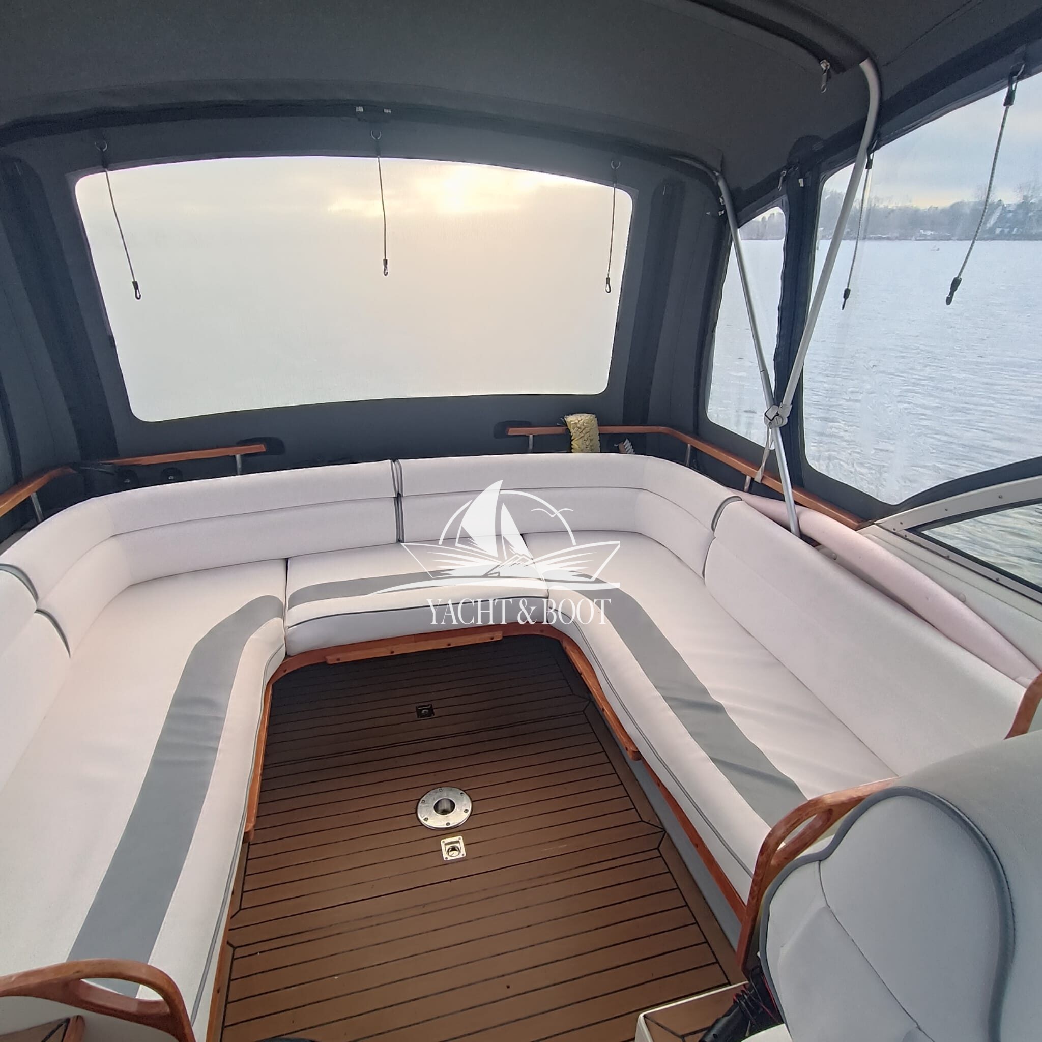 Unter Deck erwartet Sie eine gemütliche Kajüte, die auch bei längeren Ausflügen Schutz, Ruhe und Geborgenheit bietet. Typisch für die Joda-Baureihe überzeugt das Interieur durch seine funktionale Aufteilung und die robuste Verarbeitung, die den nordischen Ursprung des Bootes widerspiegelt. Das Cockpit bietet viel Platz für gesellige Stunden, während die Badeplattform den direkten Weg ins Wasser eröffnet.
