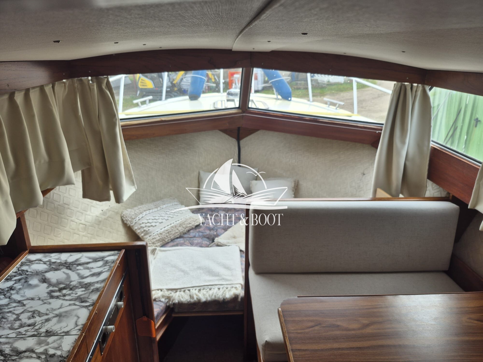Zum Verkauf steht eine Marco 810, ein bewährtes Kajütboot mit robuster GFK-Bauweise und angenehmer Größe für Binnen- und küstenahe Gewässer. Das Boot bietet eine praktische Raumaufteilung mit Innensteuerstand, Pantry und Schlafmöglichkeit für 2 bis maximal 4 Personen – ideal für entspannte Ausfahrten und Wochenendtouren auf dem Wasser.