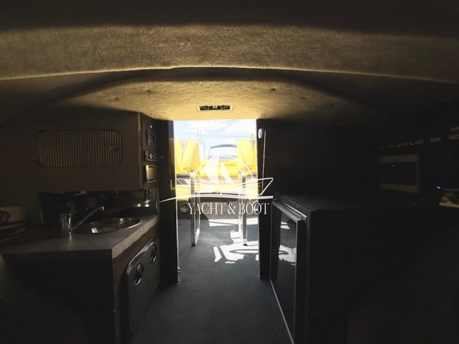Der Rumpf ist nicht foliert, sondern ein echter High-End-Lackaufbau – langlebig, tiefengläzend und deutlich wertiger als Folie. Das Boot wurde für komfortables und luxuriöses Übernachten konzipiert und bietet ein modernes, stilvolles Interieur, das ideale Voraussetzungen für Wochenendtrips, längere Aufenthalte oder autarkes Liegen schafft.