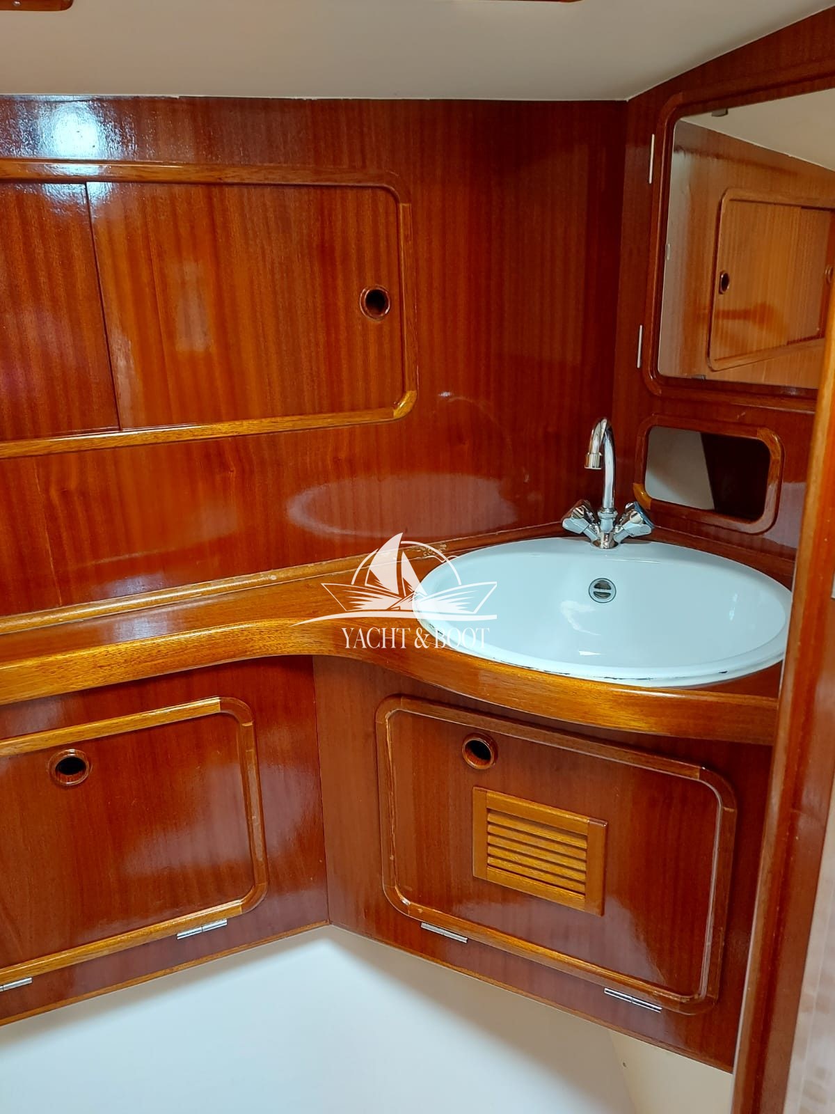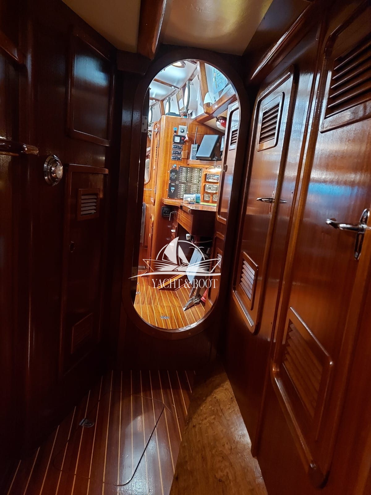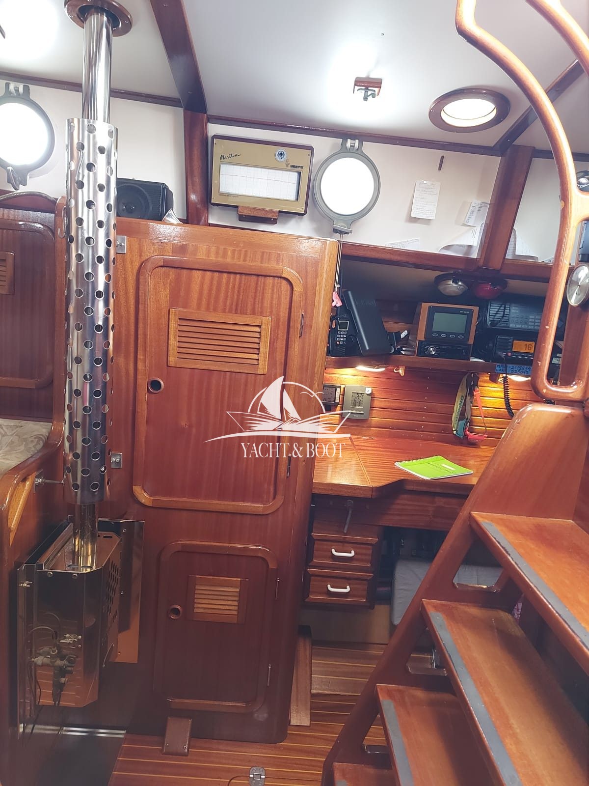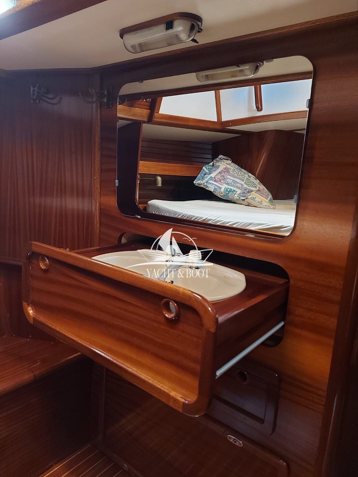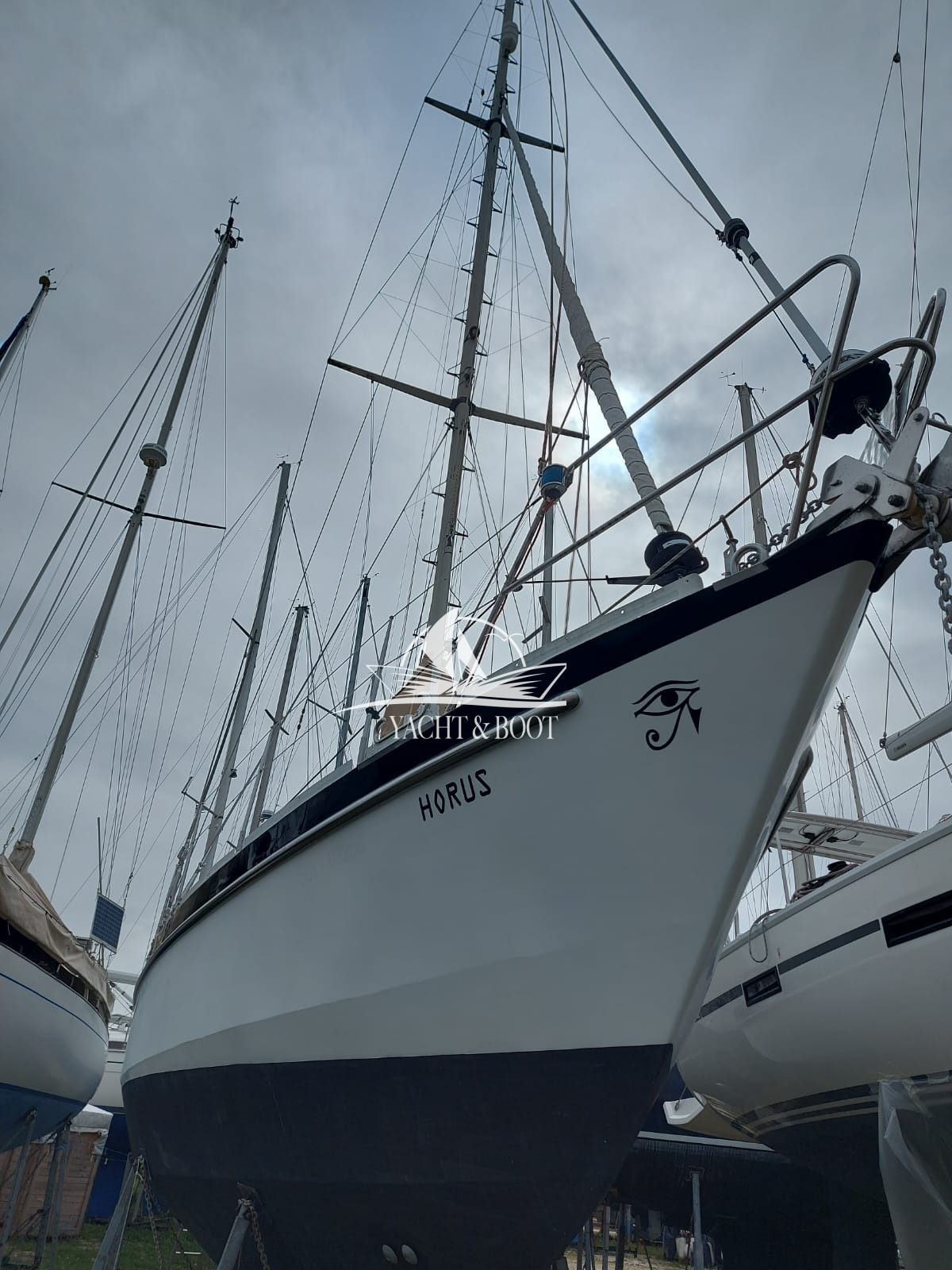 Der Rumpf von HORUS wurde 1987 im Van De Stadt Design Knickspannt) auf der Werft Ballhausen in Norddeutschland hergestellt. Die Innenausstattung wurde dann in der Schweiz in 7-jähriger Eigenarbeit mit vielen speziellen Ideen vom Erstbesitzer kreiert und