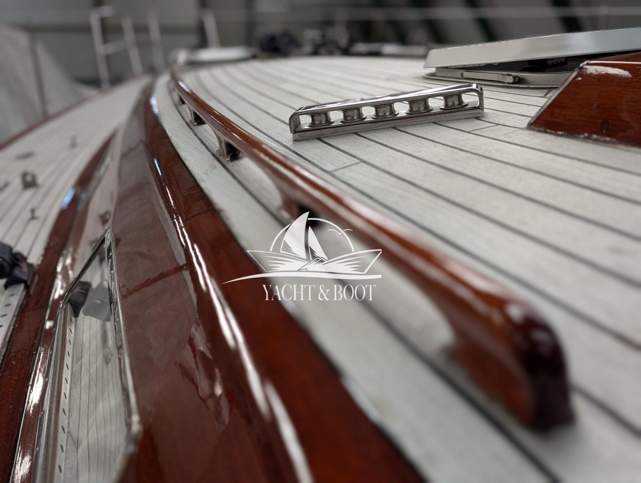 Die „Varuna“ ist mehr als nur ein Segelboot – sie ist das Versprechen einzigartige Momente zu erleben. Hier trifft klassische Eleganz auf die Performance moderner Segelyachten. Ob am Steg, unter Segeln oder in der Bucht vor Anker, die „Varuna“ zieht die Blicke auf sich. Lackierter Rumpf und Aufbau, hochwertiges Teakdeck, glänzende Reeling, Winschen, Schoten und das extravagante Steuerrad von Luffe Yachts Denmark, versprechen immer einen perfekten Auftritt. Und das Interieur – Bootsbau mit Leidenschaft und Perfektion in Holz und hochwertigem Alcantara.