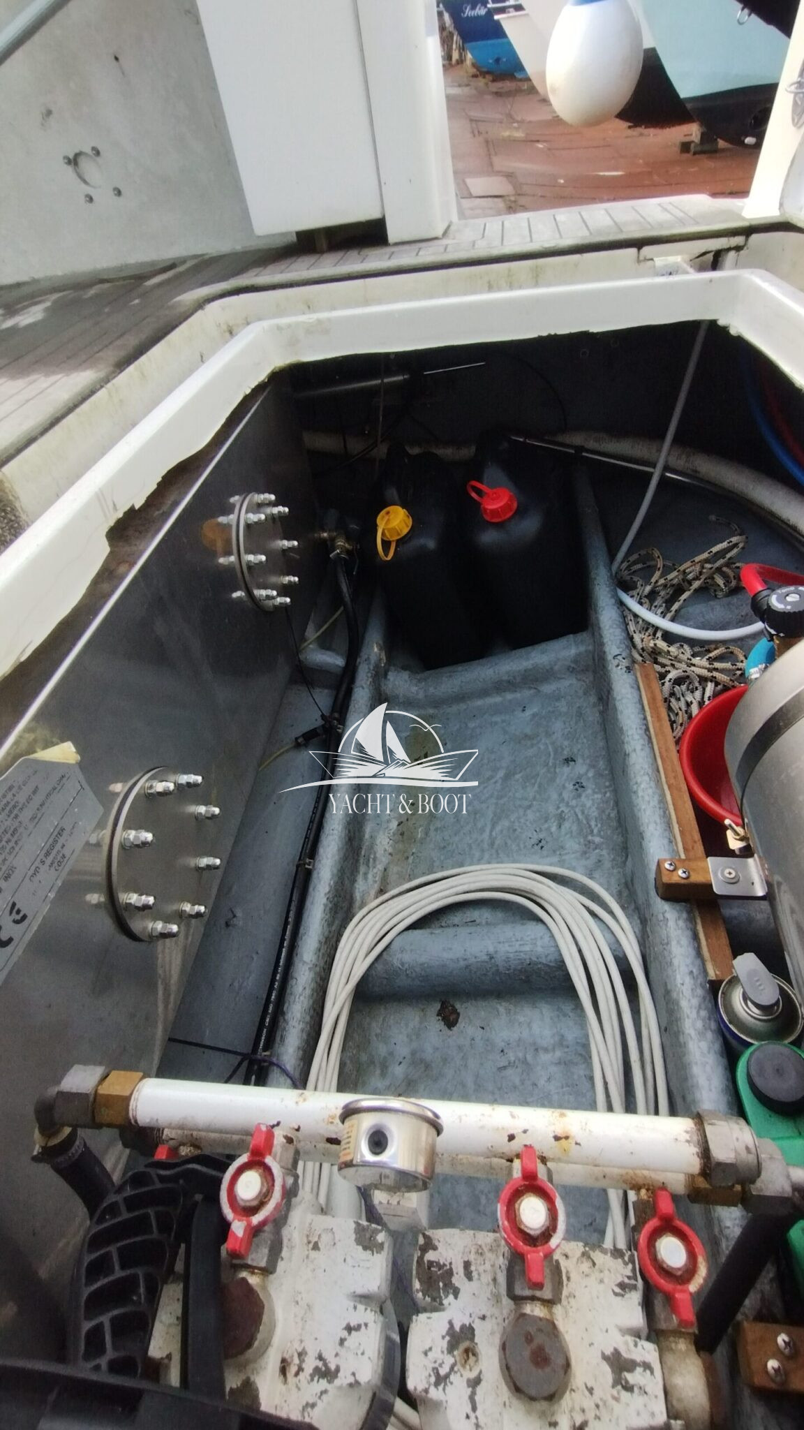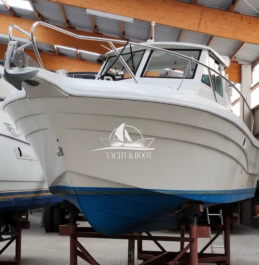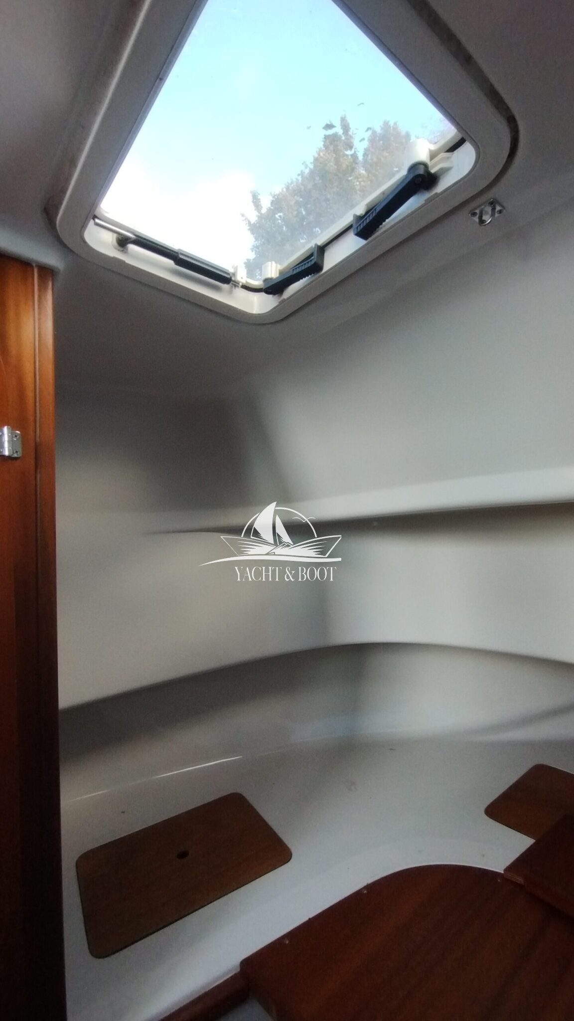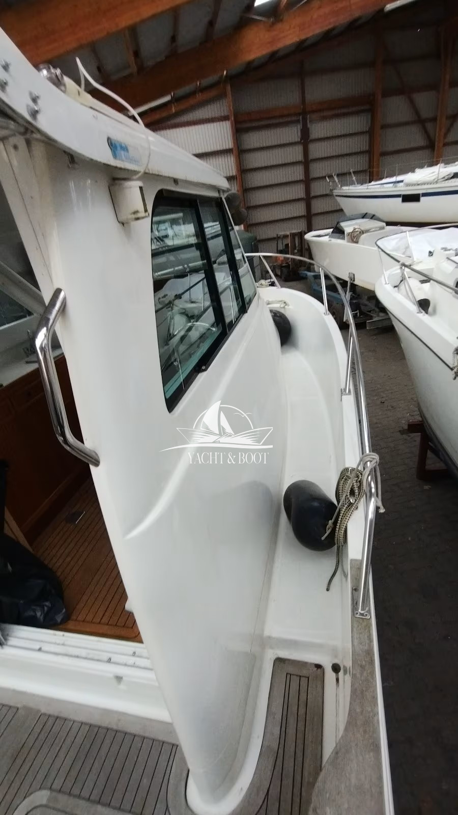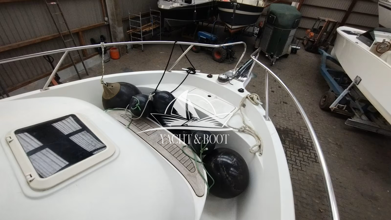 Die Kabine unter Deck verfügt über Schlafmöglichkeiten für zwei Personen sowie Stauraum und ermöglicht kurze Übernachtungen an Bord. Damit verbindet dieses Modell offene Nutzfläche mit dem Komfort einer geschützten Kabine. Der Rumpf ist auf einen wirtschaftlichen und ruhigen Lauf ausgelegt und bietet gute Fahreigenschaften im Küstenbereich.