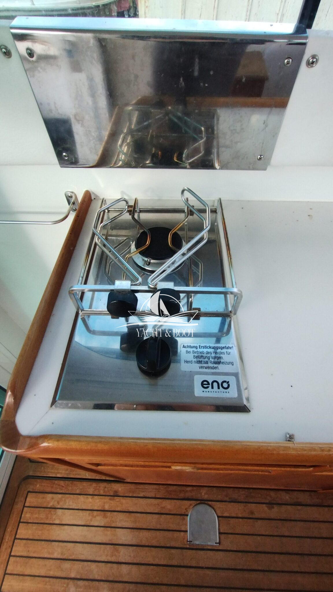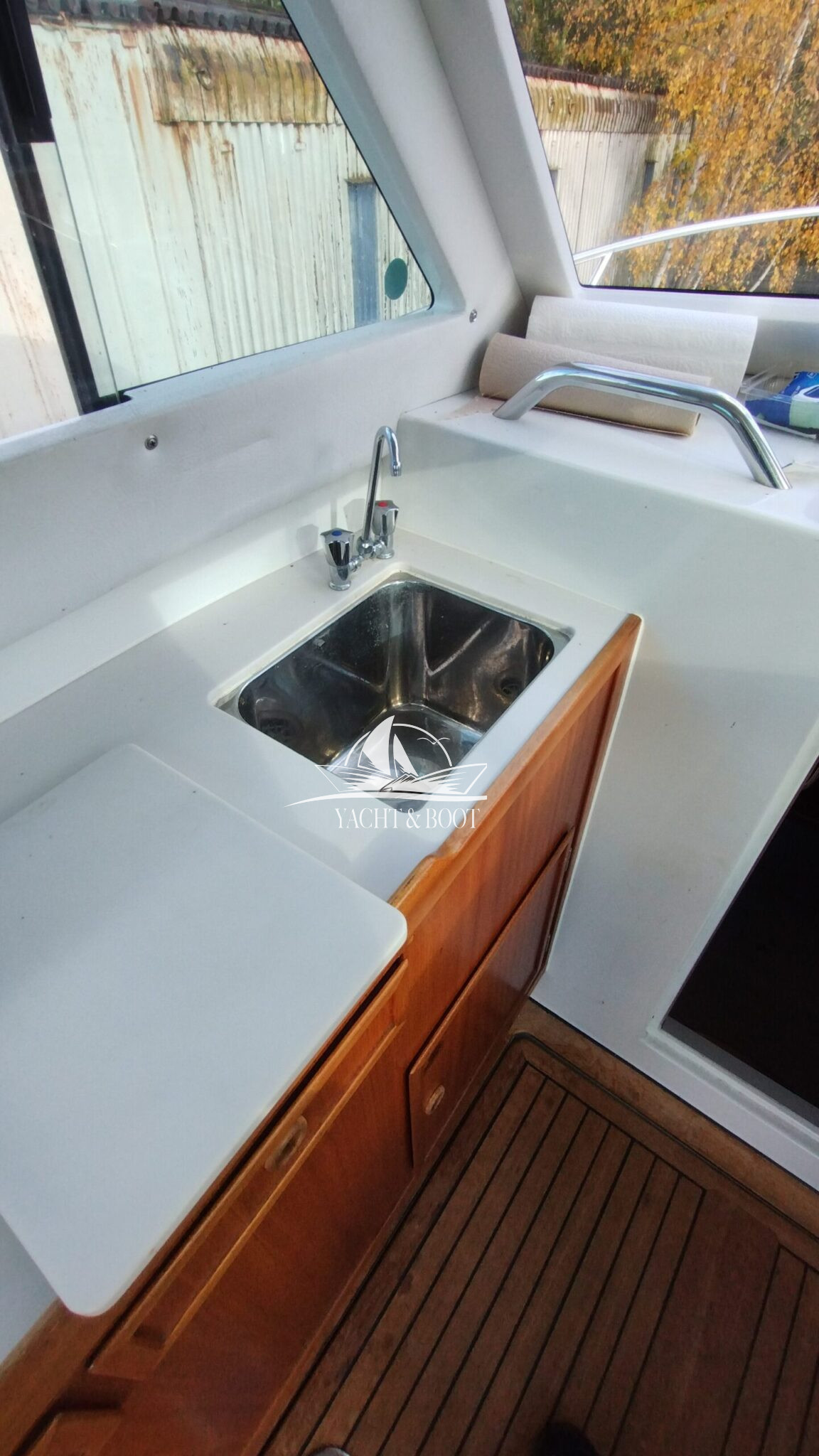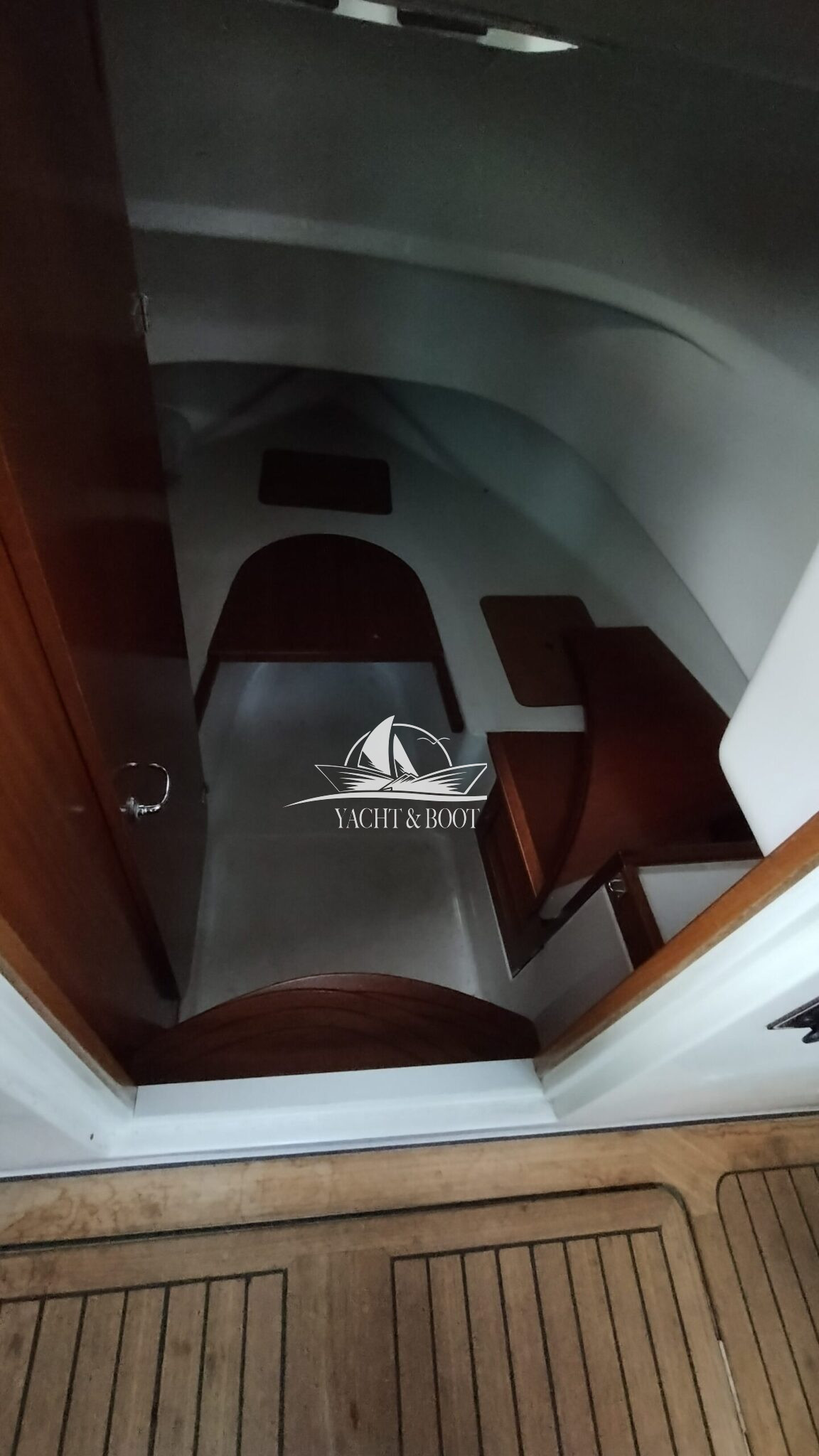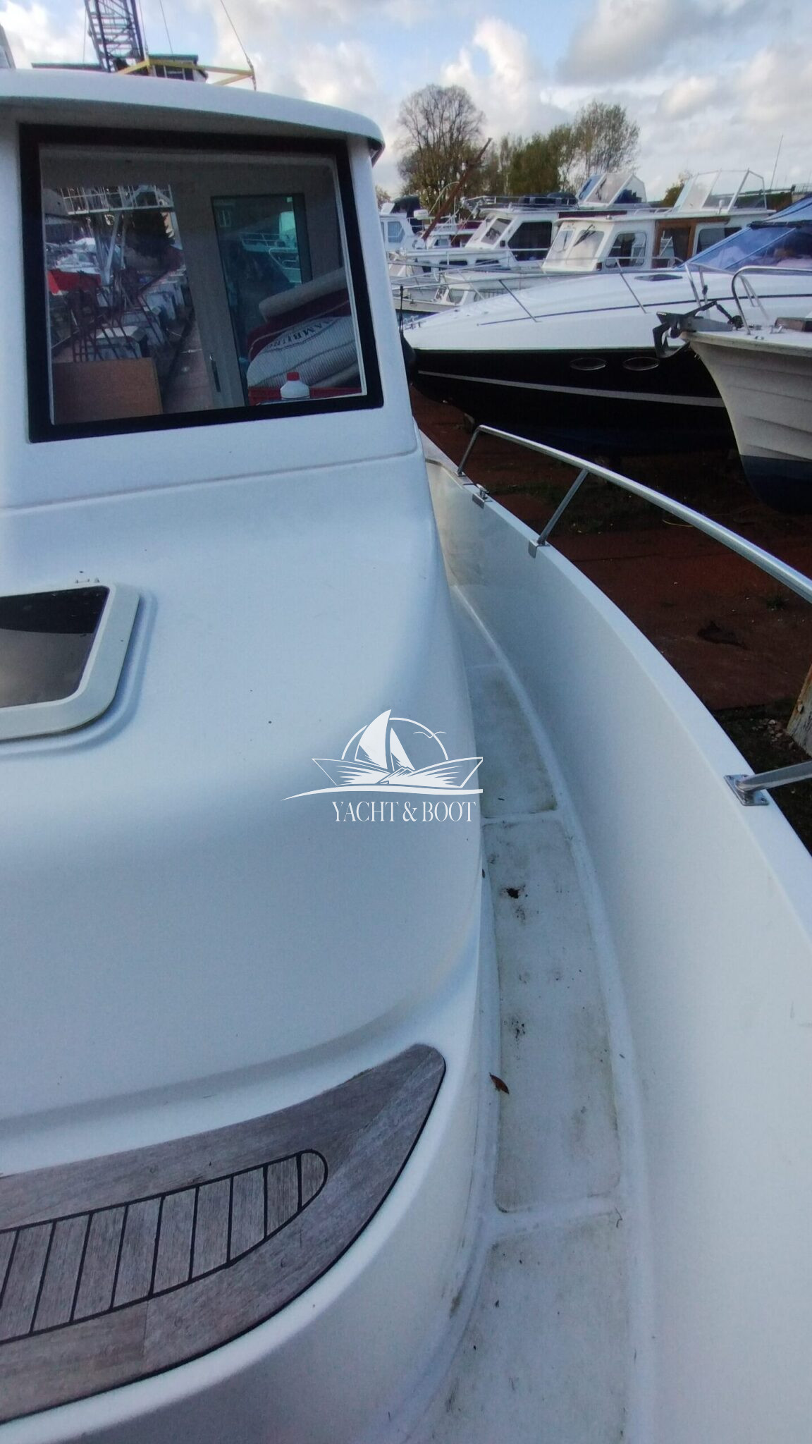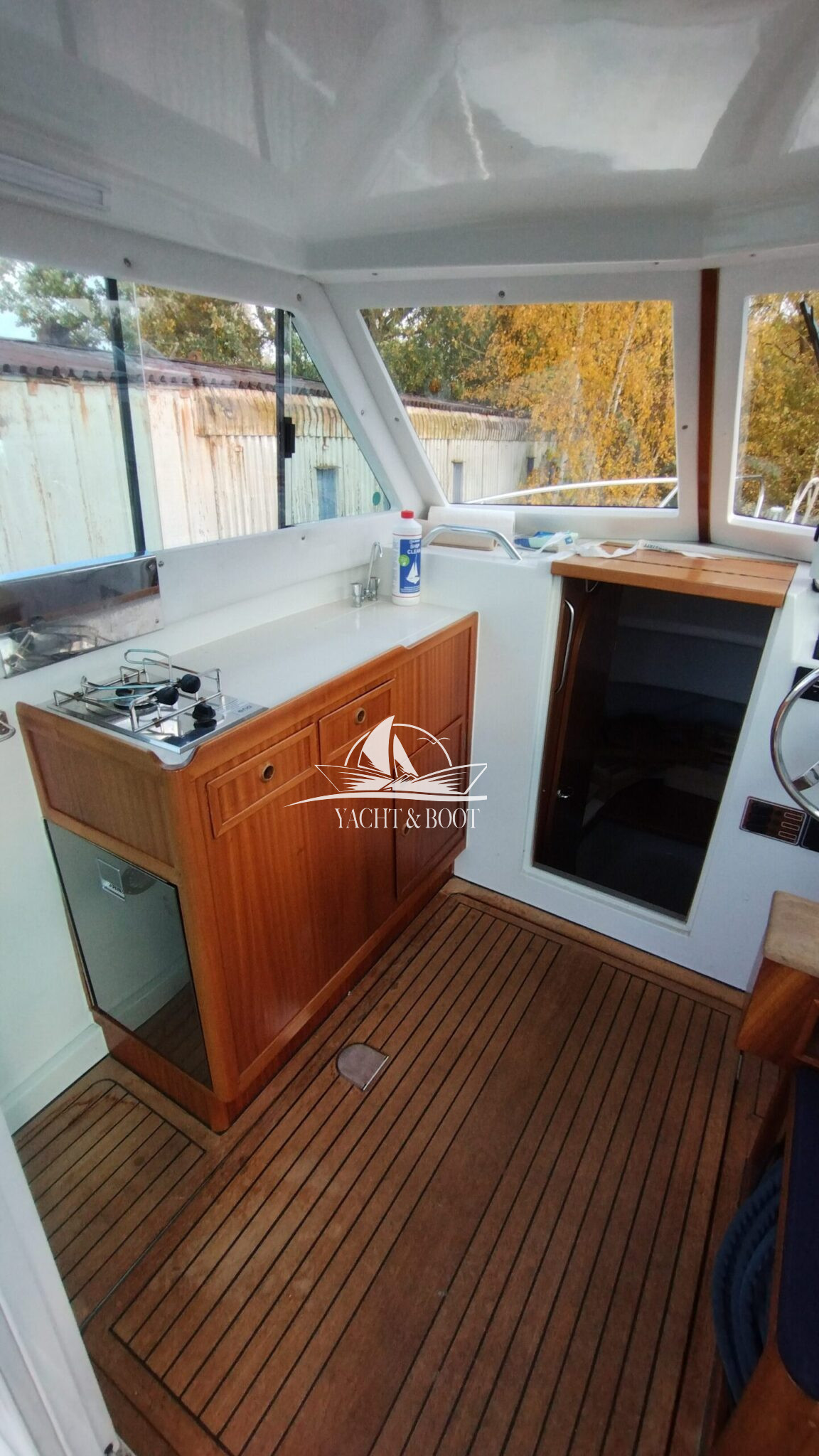 Die Kabine unter Deck verfügt über Schlafmöglichkeiten für zwei Personen sowie Stauraum und ermöglicht kurze Übernachtungen an Bord. Damit verbindet dieses Modell offene Nutzfläche mit dem Komfort einer geschützten Kabine. Der Rumpf ist auf einen wirtschaftlichen und ruhigen Lauf ausgelegt und bietet gute Fahreigenschaften im Küstenbereich.