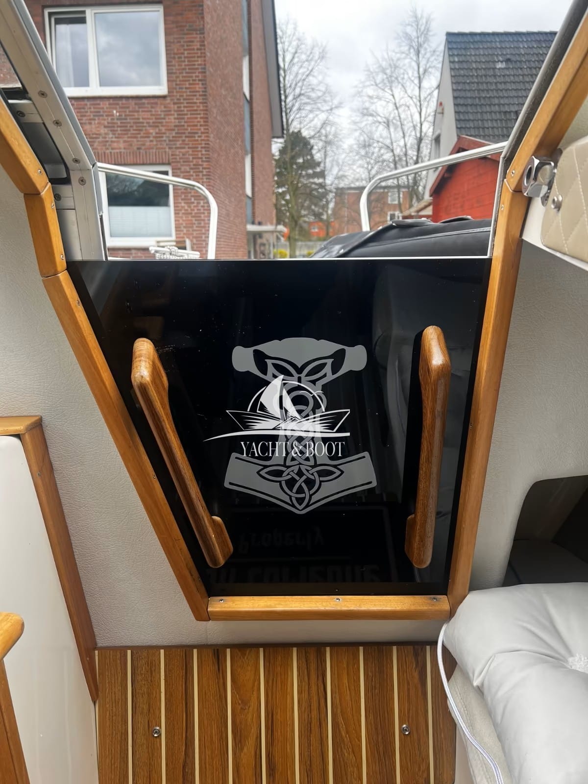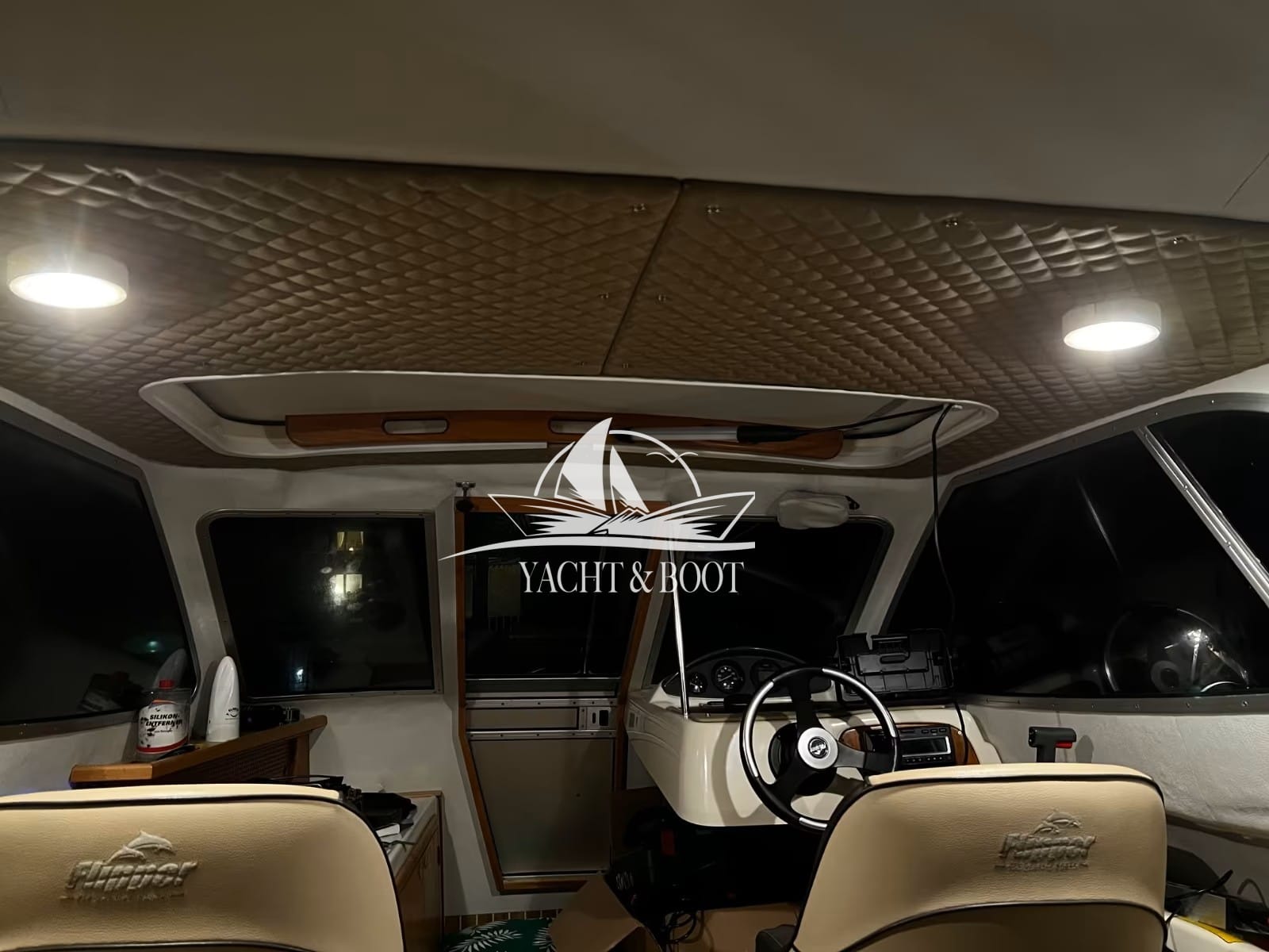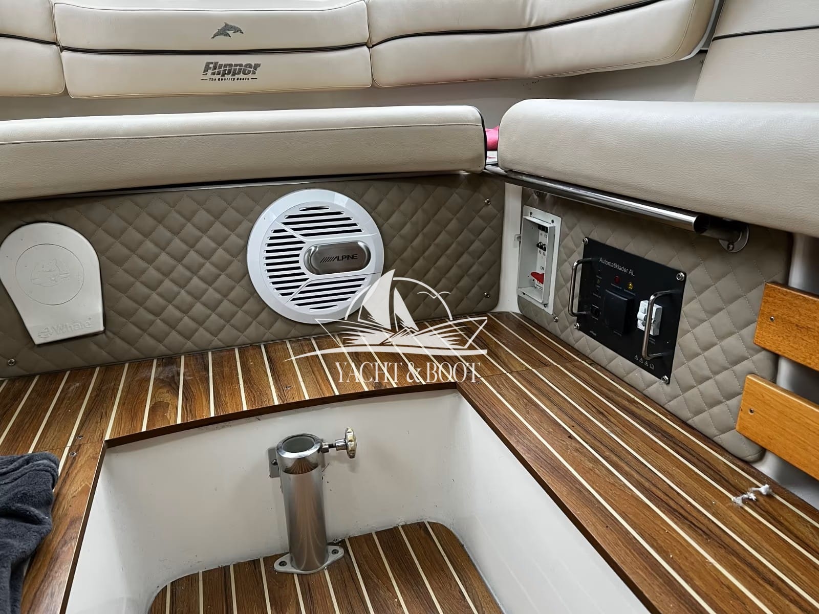 Decken und Seitenteile wurden harmonisch auf das Interieur abgestimmt und mit edlem, gestepptem Leder veredelt. Elegante Mahagoni-Holzelemente an Leisten und Lenkrad sowie stilvolle Edelstahldetails verleihen dem Boot eine außergewöhnlich hochwertige Ausstrahlung. Landstromanschluss, Solaranlage, voll ausgestattete Pantry und moderne Bio-Toilette machen die Flipper 630 OC zu einem komfortablen Begleiter. Dank der zum Doppelbett umbaubaren Rückbank und der neuwertigen, vollständig verschließbaren Persenning verwandelt sich dieser vielseitige Daycruiser im Handumdrehen in ein Boot, das auch für längere, entspannte Törns wie geschaffen ist.