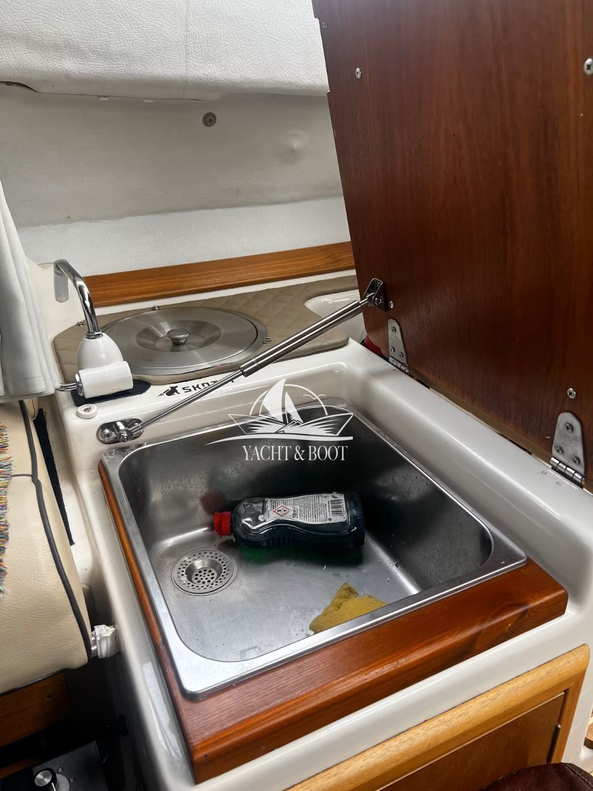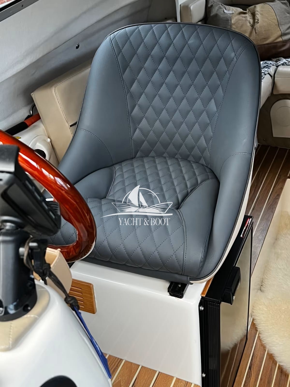 Das durchdachte Raumkonzept bietet ein großzügiges Cockpit mit viel Platz für gesellige Stunden an Bord. Die Kabine ermöglicht komfortable Übernachtungen und erweitert den Nutzungsbereich dieses Motorboots deutlich über den klassischen Tagesausflug hinaus. Die integrierte Badeplattform mit Badeleiter steigert den Freizeitwert zusätzlich und macht Badestopps besonders komfortabel.