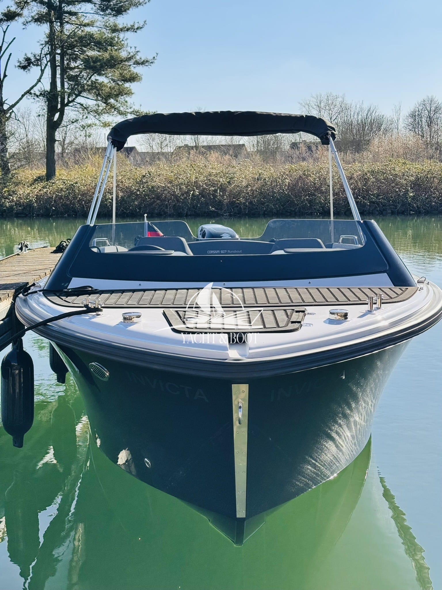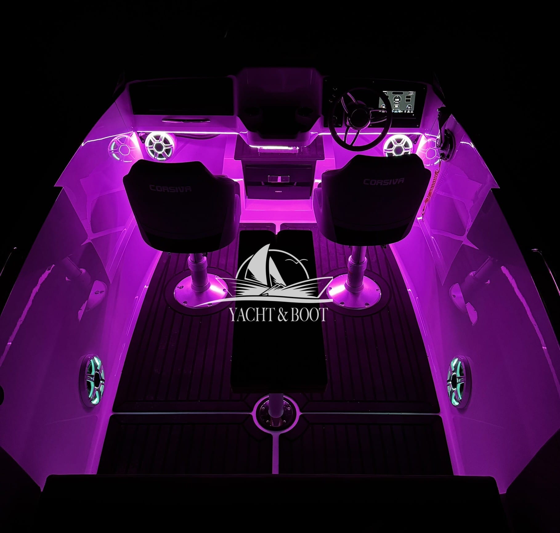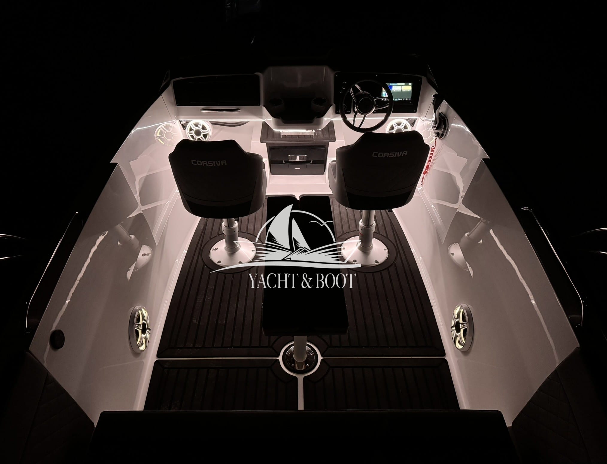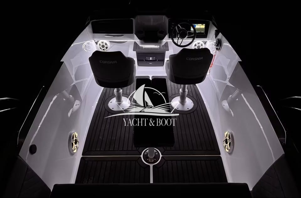 Die Premium Ausstattung in „Carbon“ mit den gesteppten Designer-Bezügen Diamante Meteor, erzeugt ein hochwertiges Lounge-Ambiente, das an größere Motoryachten erinnert. Großzügige Sitzflächen, offene Cockpitarchitektur und ergonomisch gestaltete Chillout-Bereiche machen die Corsiva 607 zu einem idealen Daycruiser für entspannte Tagesausflüge, Sonnenstunden vor Anker und repräsentative Hafenauftritte. Als moderner 6-Meter-Cruiser verbindet das Boot sportliche Runabout-Ästhetik mit wohnlichem Komfort und positioniert sich klar im Segment luxuriöser Lifestyle-Boote. Die 607 eignet sich gleichermaßen als Lounge-Boot für Seen und Küstengewässer wie als exklusiver Tender für größere Yachten.