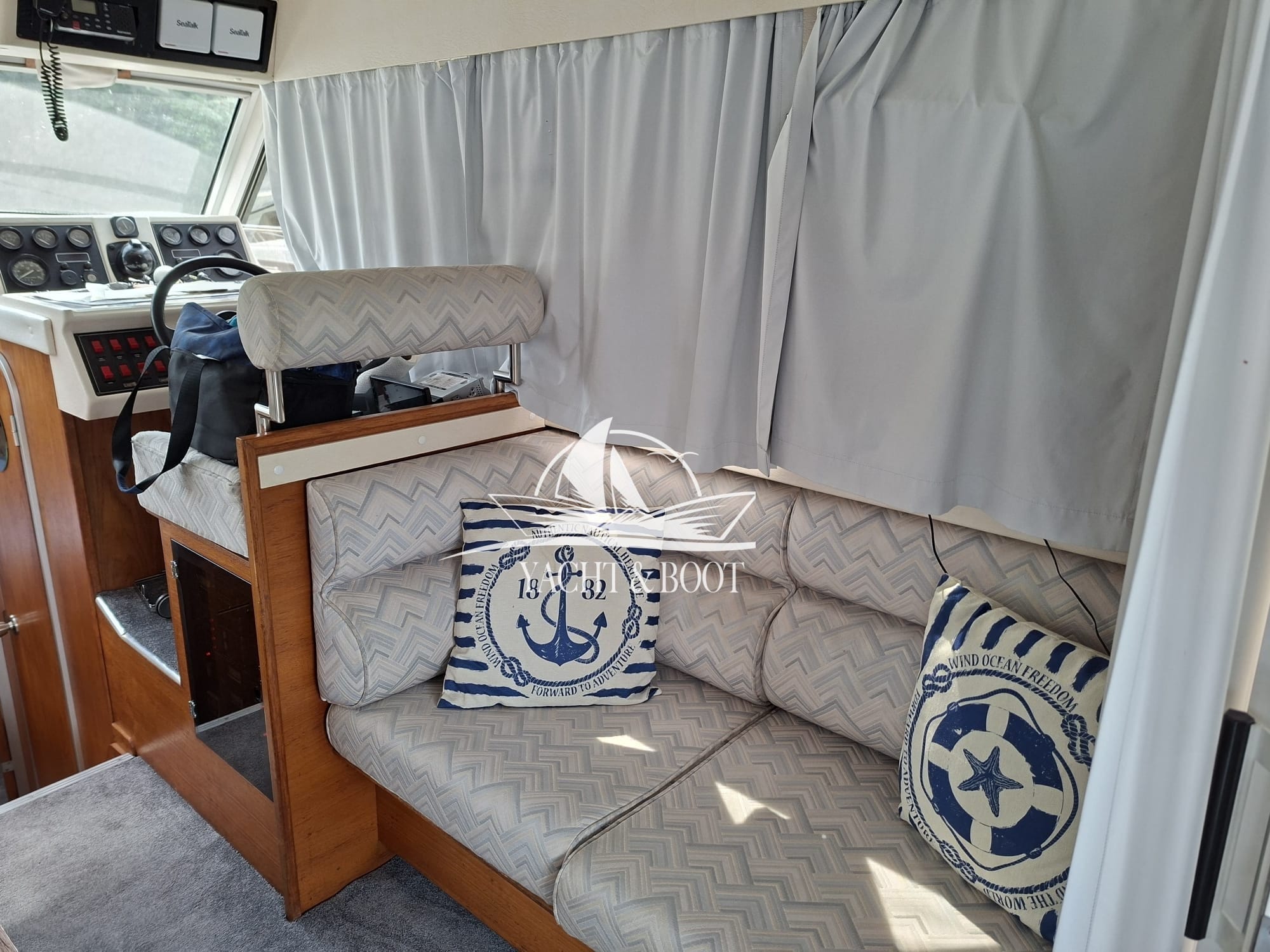 Zum Verkauf steht eine gepflegte Princess 315 Fly, Baujahr 1990, ein zeitloser Flybridge-Cruiser der renommierten britischen Werft Princess Yachts. Die Yacht verbindet solide Bauqualität, großzügiges Raumangebot und sehr gute Fahreigenschaften. Im Jahr 2023 wurde ein Refit durchgeführt, wodurch sich das Boot heute in einem gepflegten und einsatzbereiten Zustand präsentiert. Aktuell liegt die Yacht in Bingen am Rhein.