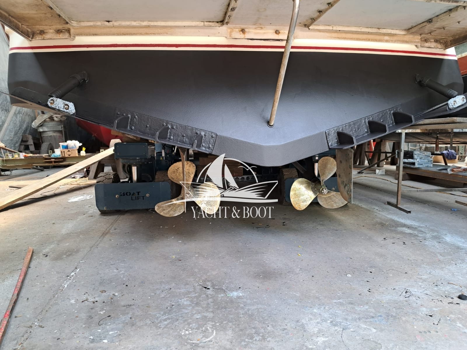 Angetrieben wird die Yacht von zwei bewährten Volvo Penta TAMD 41B Dieselmotoren mit jeweils 200 PS, die zusammen 400 PS Gesamtleistung liefern. Die Motoren gelten als äußerst robust und langlebig. Sie treiben das Boot über eine klassische Wellenanlage mit Bronzepropellern an, was für Zuverlässigkeit und einfache Wartung sorgt. Die letzte Motorwartung erfolgte 2025, aktuell haben die Maschinen etwa 1530 Betriebsstunden (Stand März 2026). Ein Bugstrahlruder erleichtert das sichere Manövrieren im Hafen.