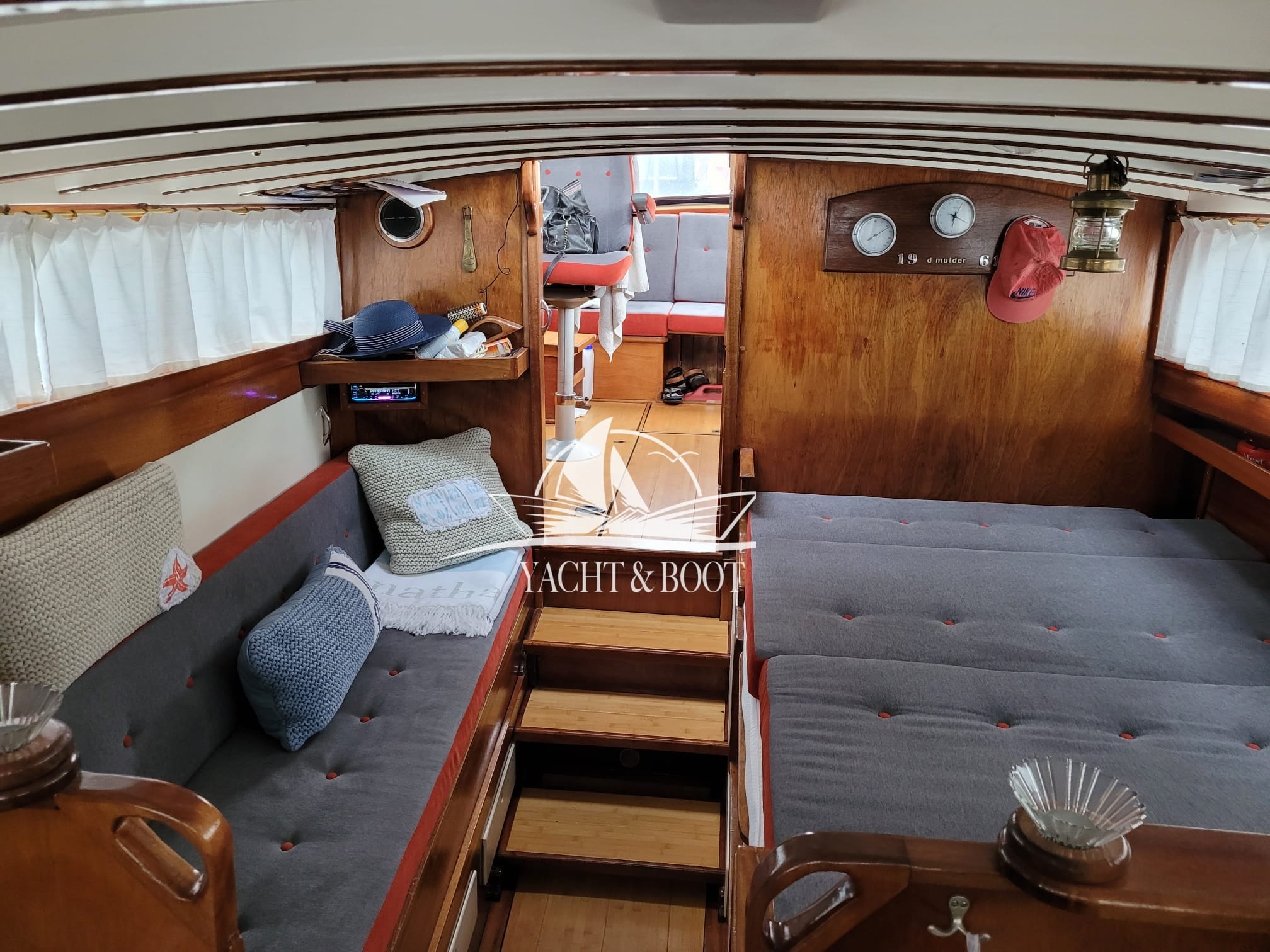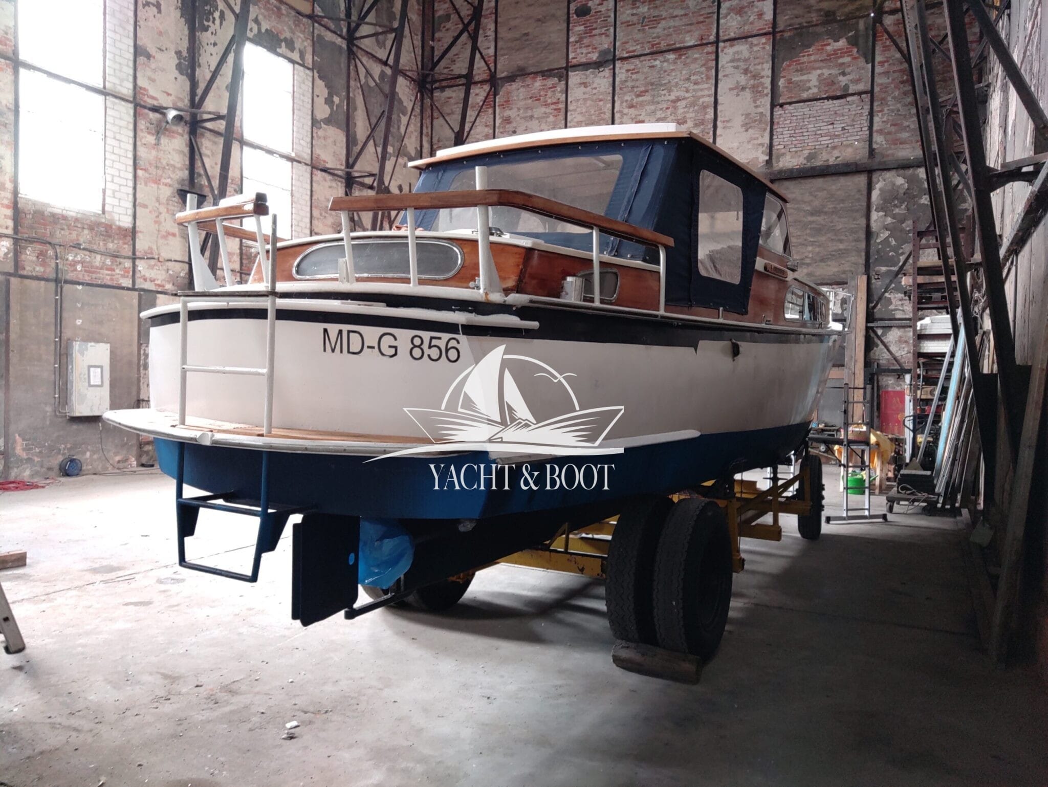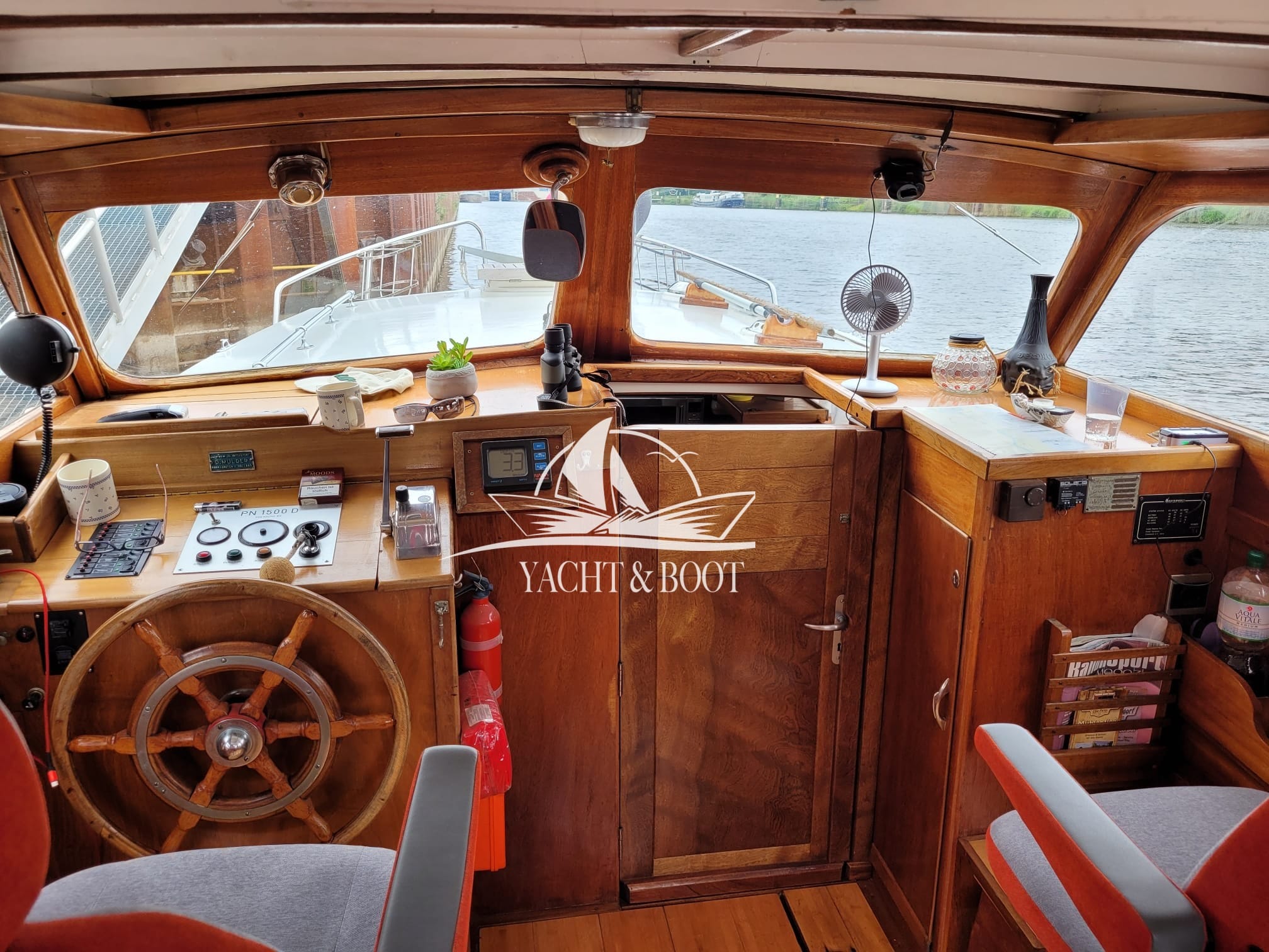 Angetrieben wird das Boot von einem marinisierten Volkswagen-Dieselmotor (45 PS), der zuverlässig und sparsam arbeitet. Mit seiner ruhigen Verdrängerfahrt erreicht das Schiff etwa 6 Knoten – ideal für entspannte Törns auf Binnengewässern und küstennahen Revieren.