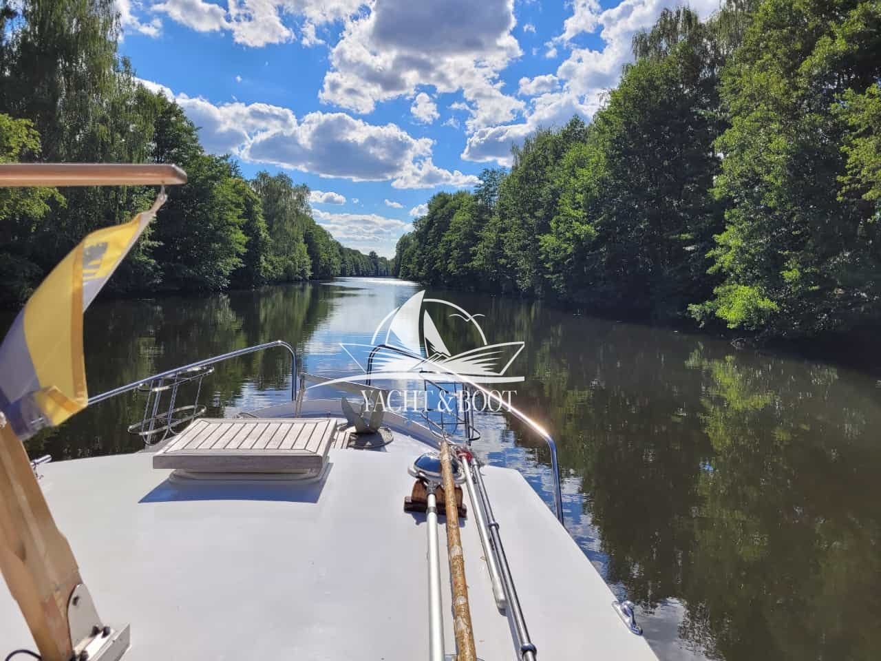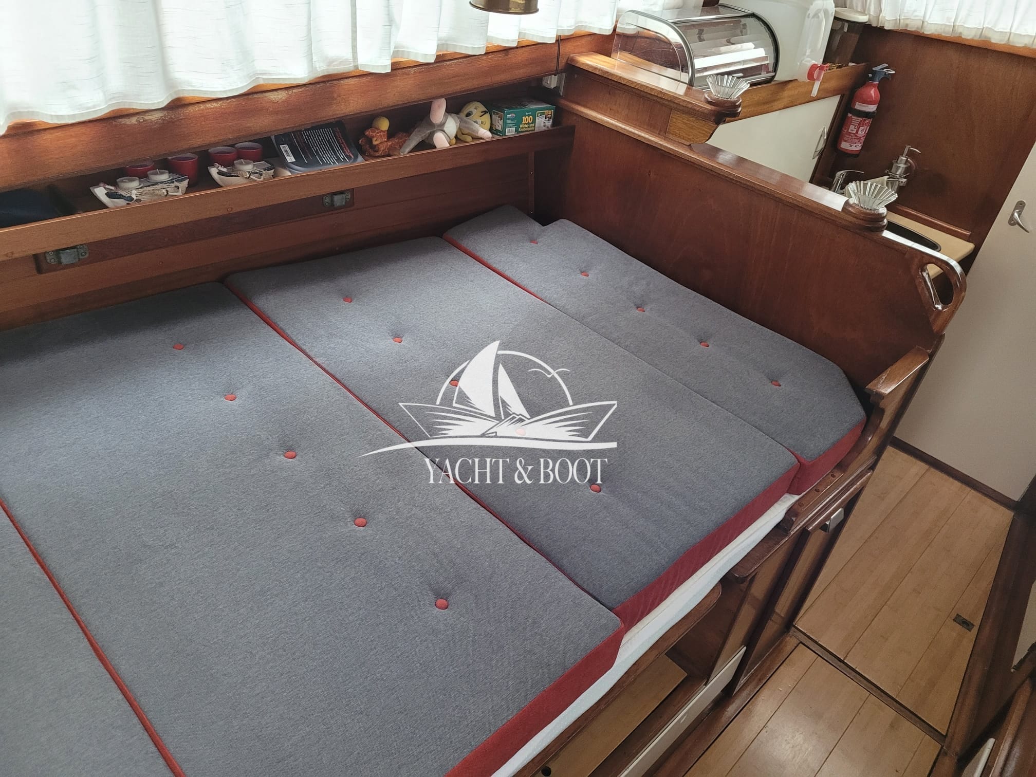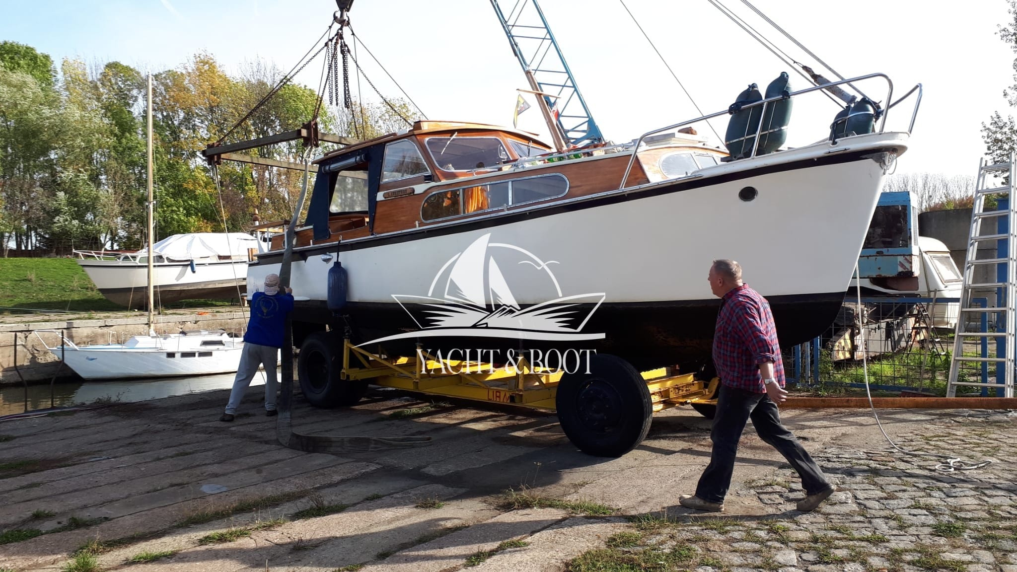 Angetrieben wird das Boot von einem marinisierten Volkswagen-Dieselmotor (45 PS), der zuverlässig und sparsam arbeitet. Mit seiner ruhigen Verdrängerfahrt erreicht das Schiff etwa 6 Knoten – ideal für entspannte Törns auf Binnengewässern und küstennahen Revieren.