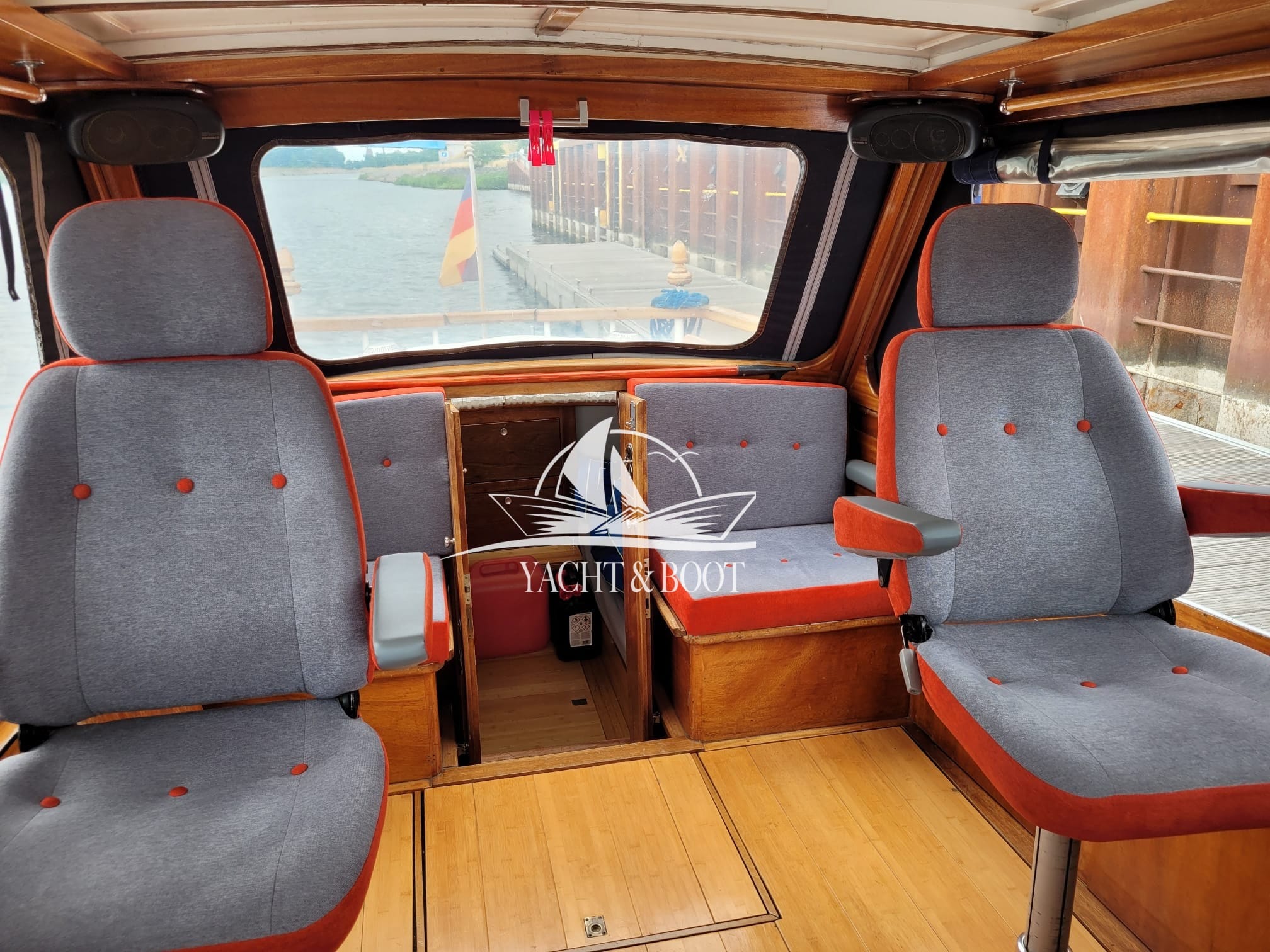 Dadurch entsteht ein einzigartiges Fahrgefühl unter freiem Himmel – eine seltene und äußerst charmante Lösung bei klassischen Kajütbooten.