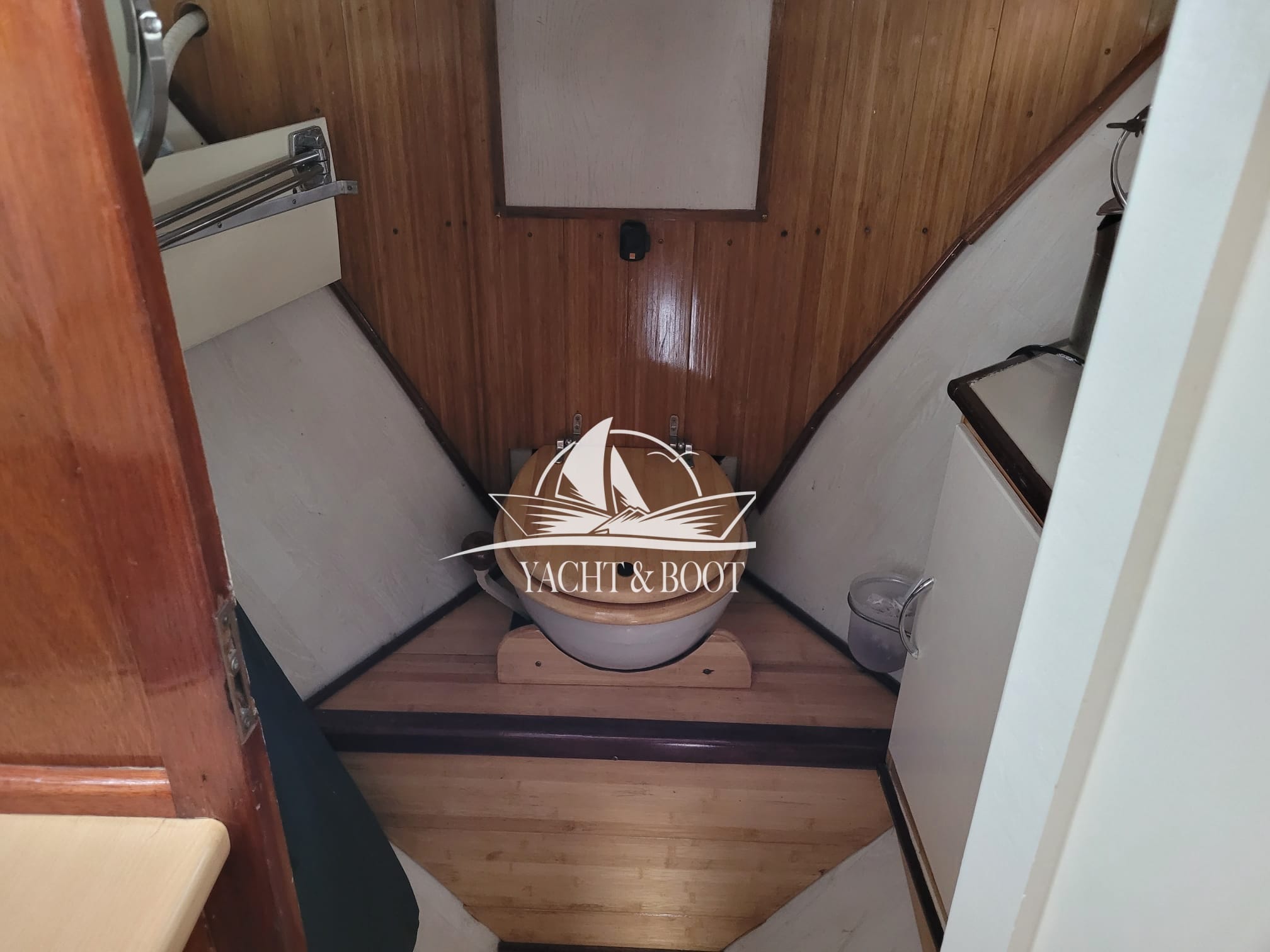 Mit einer Länge von 9,95 Metern und einer Breite von 2,95 Metern präsentiert sich dieser klassische Stahlverdränger in zeitloser Linienführung.