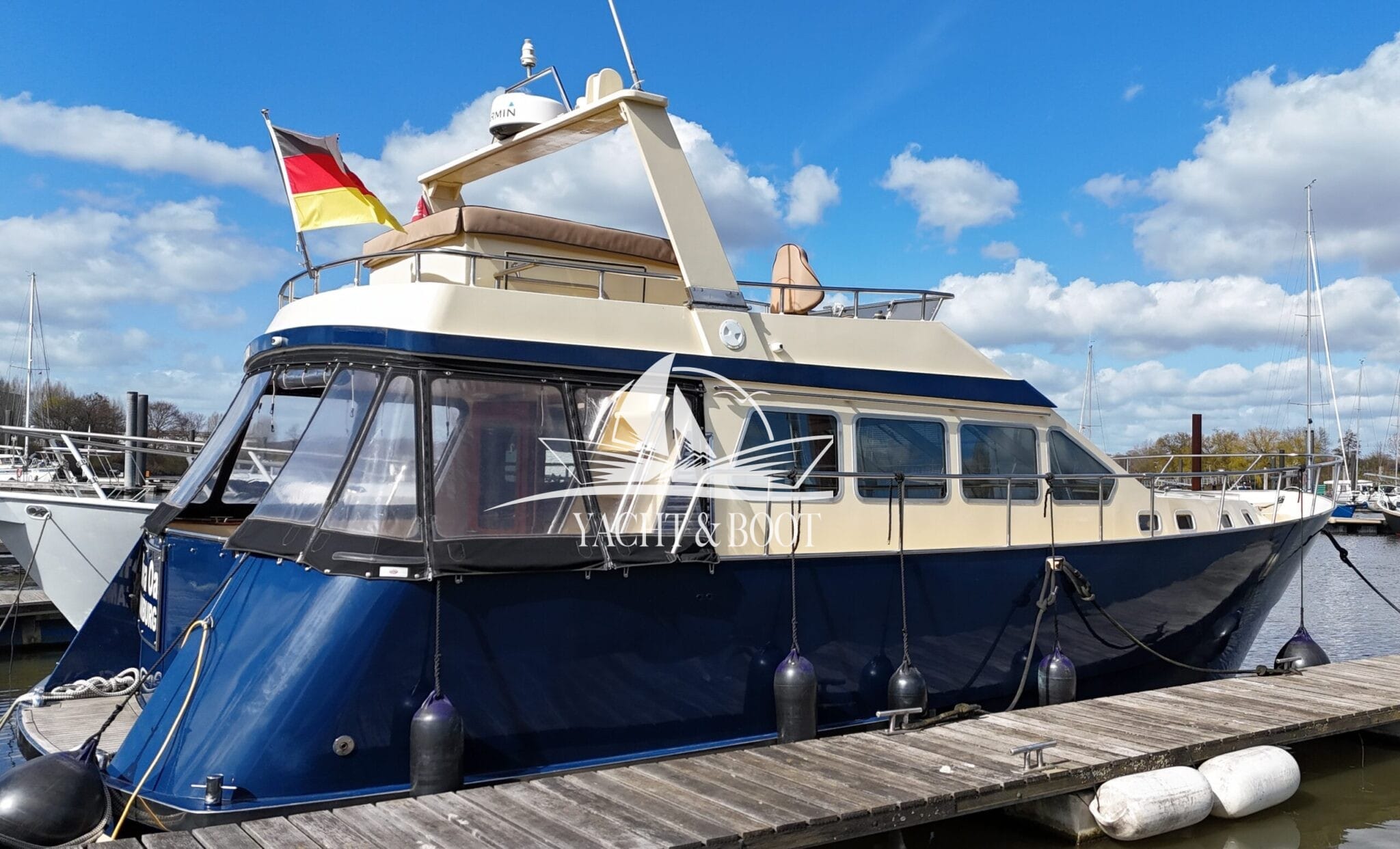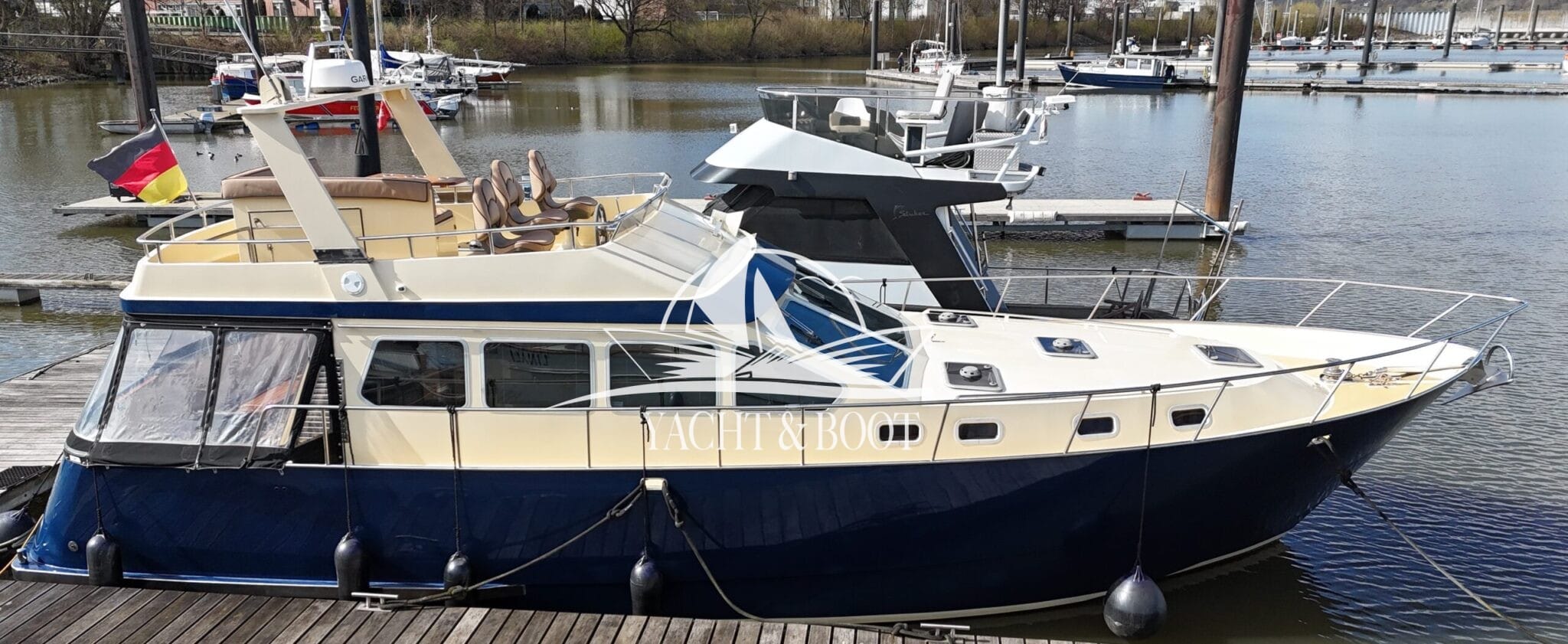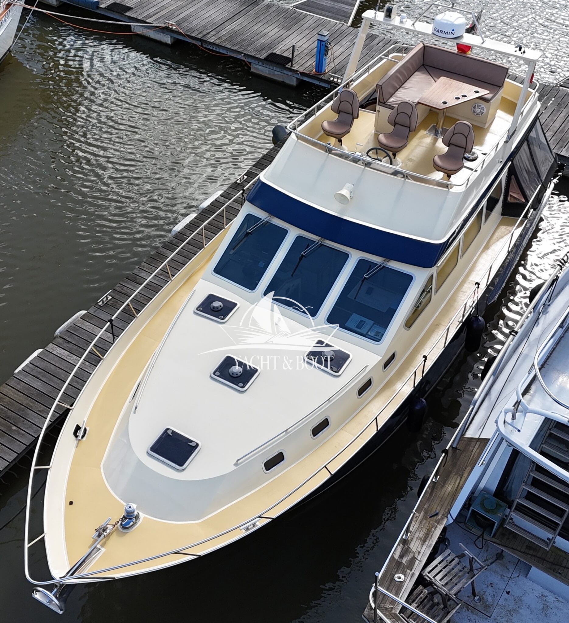 Diese außergewöhnliche Motoryacht mit Flybridge vereint erstklassige Handwerkskunst, elegantes Design und zuverlässige Technik auf hohem Niveau. Der Kasko wurde in den Niederlanden nach den bewährten Vorgaben von Bruce Roberts Yachtdesign gefertigt und im Jahr 2010 durch den heutigen Eigner nach Deutschland überführt. In den darauffolgenden Jahren entstand mit viel Leidenschaft, Fachkompetenz und Liebe zum Detail eine einzigartige Flybridge – Motoryacht, die sowohl optisch als auch funktional überzeugt.