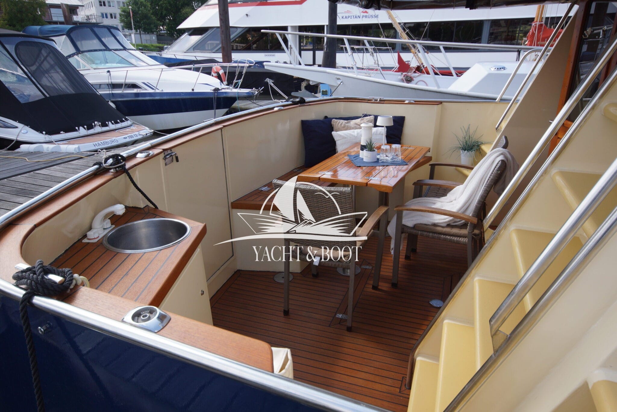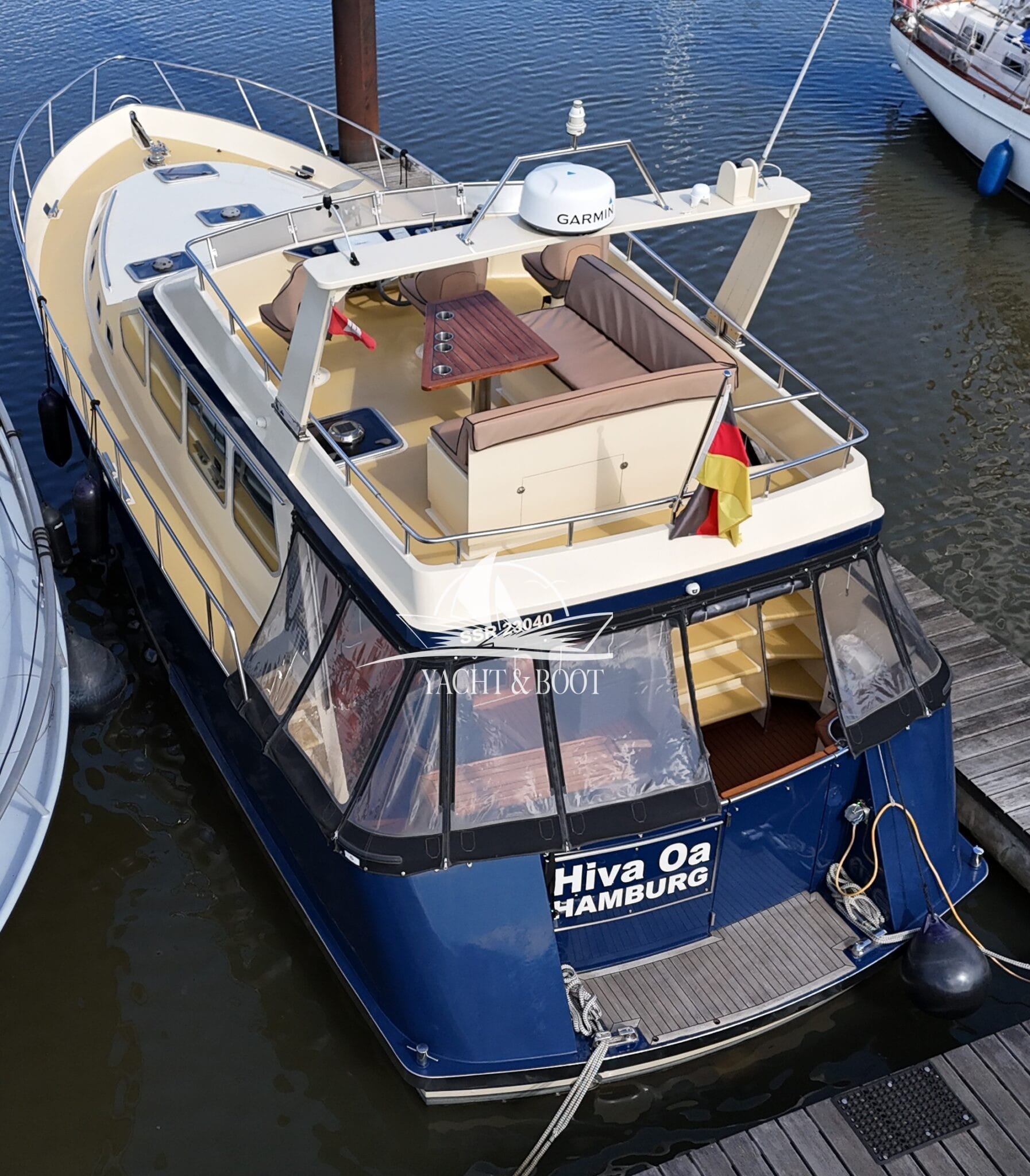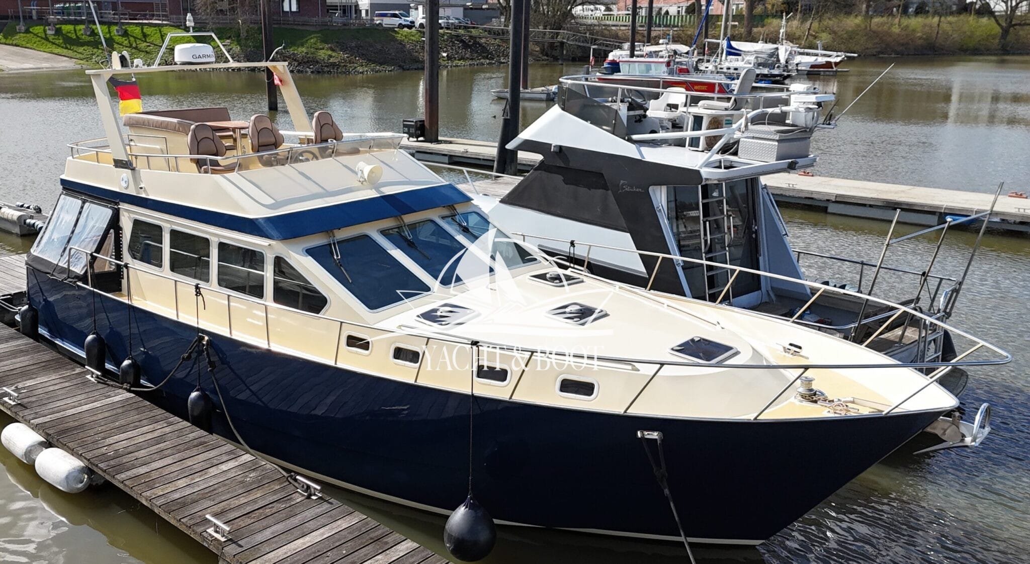 Diese außergewöhnliche Motoryacht mit Flybridge vereint erstklassige Handwerkskunst, elegantes Design und zuverlässige Technik auf hohem Niveau. Der Kasko wurde in den Niederlanden nach den bewährten Vorgaben von Bruce Roberts Yachtdesign gefertigt und im Jahr 2010 durch den heutigen Eigner nach Deutschland überführt. In den darauffolgenden Jahren entstand mit viel Leidenschaft, Fachkompetenz und Liebe zum Detail eine einzigartige Flybridge – Motoryacht, die sowohl optisch als auch funktional überzeugt.
