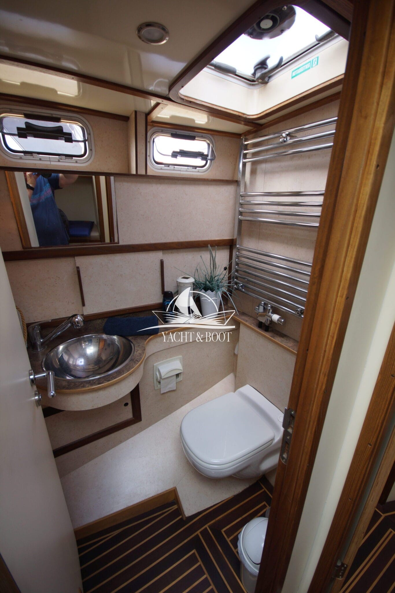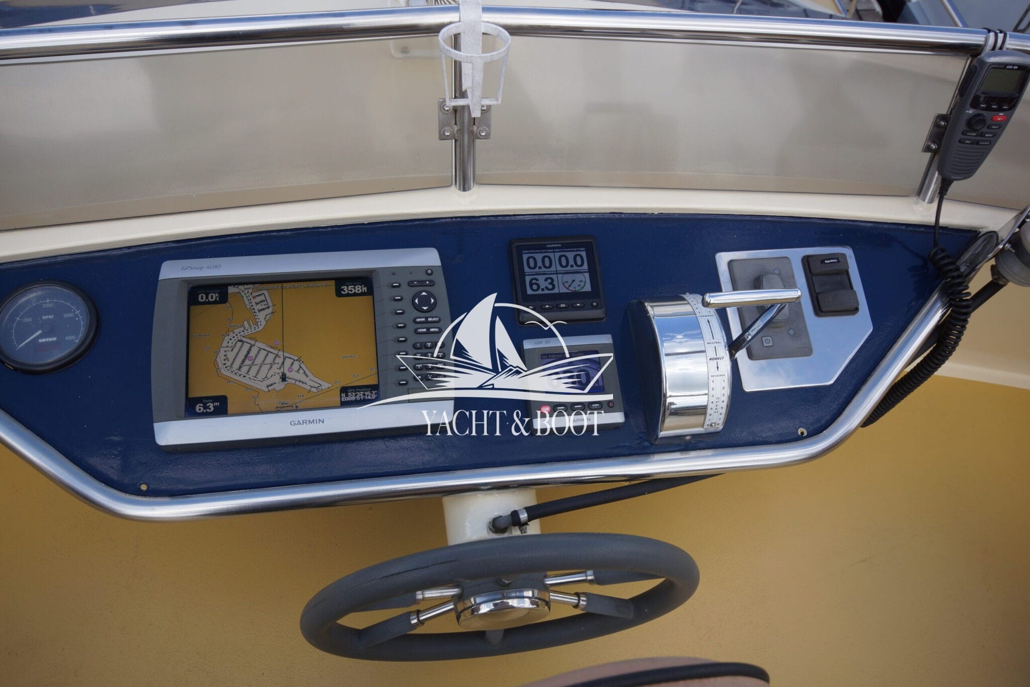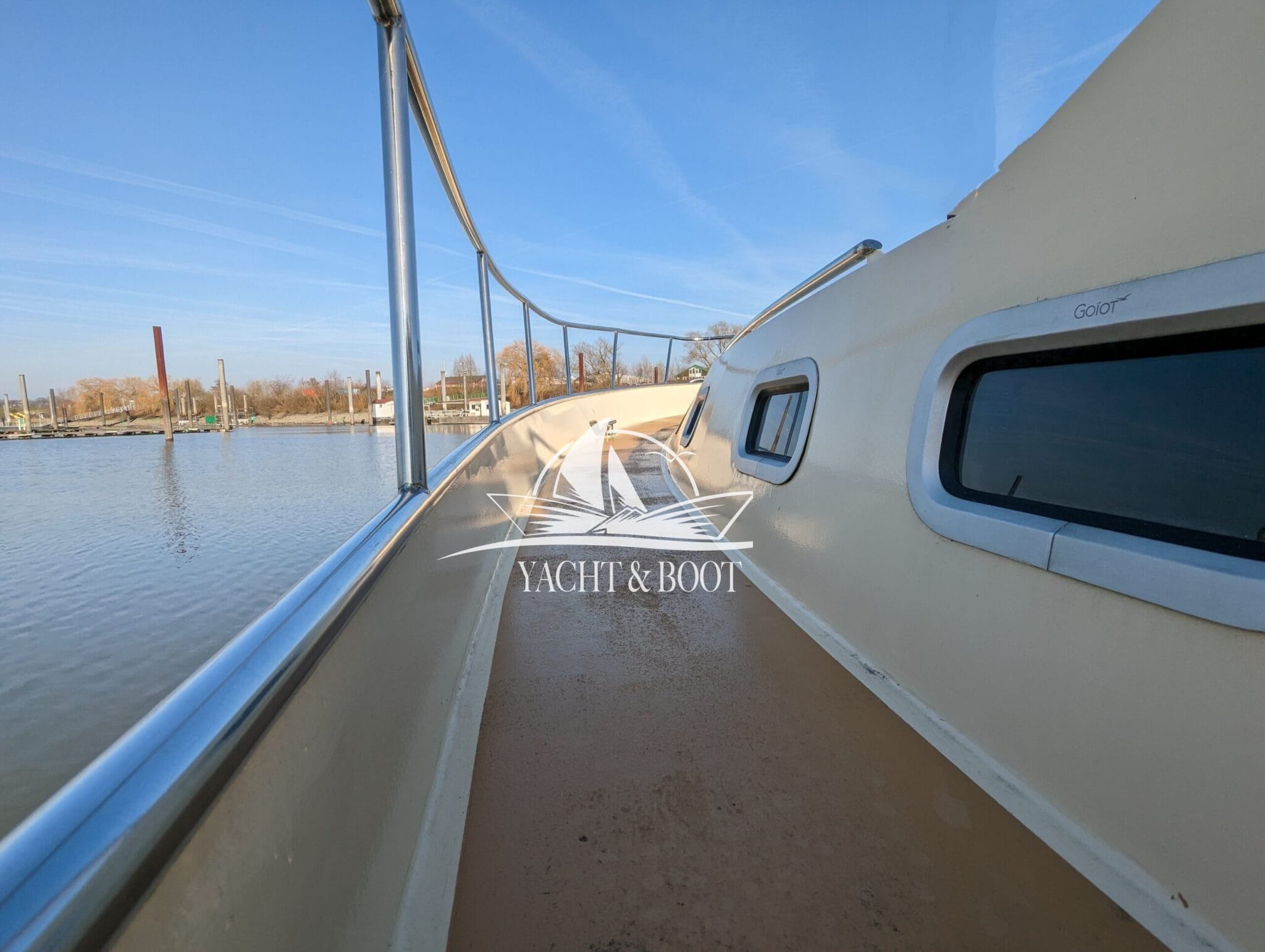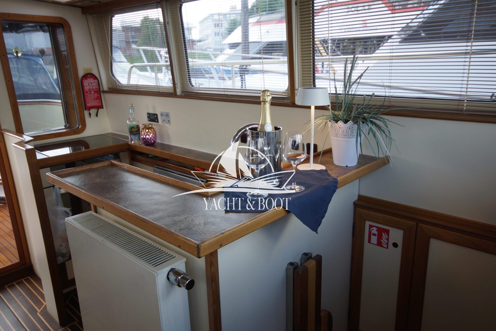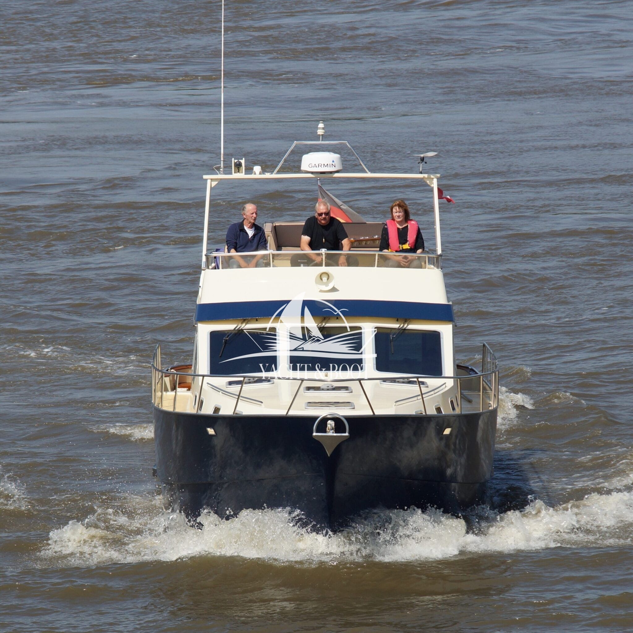 Auch technisch befindet sich diese Flybridge – Motoryacht auf einem modernen und zuverlässigen Stand. Der leistungsstarke Deutz Motor mit 210 PS sorgt für ein souveränes und effizientes Fahrverhalten, während Bug- und Heckstrahlruder das Manövrieren selbst in engen Häfen deutlich erleichtern. Eine wassergeführte Heizung gewährleistet angenehme Temperaturen an Bord bei jeder Witterung, unterstützt durch die hochwertige Isolierung und Doppelverglasung der Motoryacht. Für die autarke Energieversorgung steht ein leistungsfähiger Panda Generator mit 5 kW und reiner Sinuswelle zur Verfügung. Sämtliche Steuer- und Anzeigeelemente sowie die präzise Kobelt-Schaltung sind sowohl am Hauptsteuerstand als auch auf der Flybridge verfügbar.