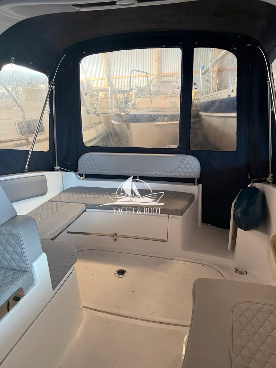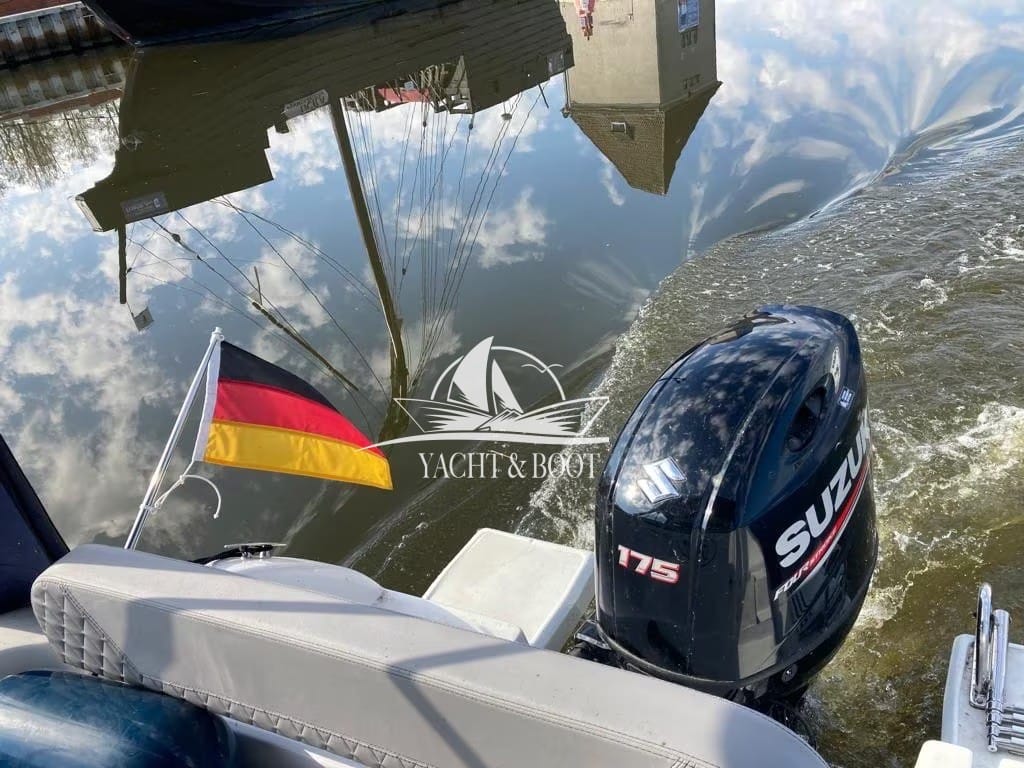 Die Saver 690 Cabin vereint italienisches Design mit durchdachter Funktionalität und kraftvoller Performance. Angetrieben von einem zuverlässigen 4-Takt-Suzuki Außenbordmotor mit 175 PS gleitet dieses gepflegte Sportboot souverän über jedes Gewässer – ob entspannte Ausfahrt oder sportlicher Törn.