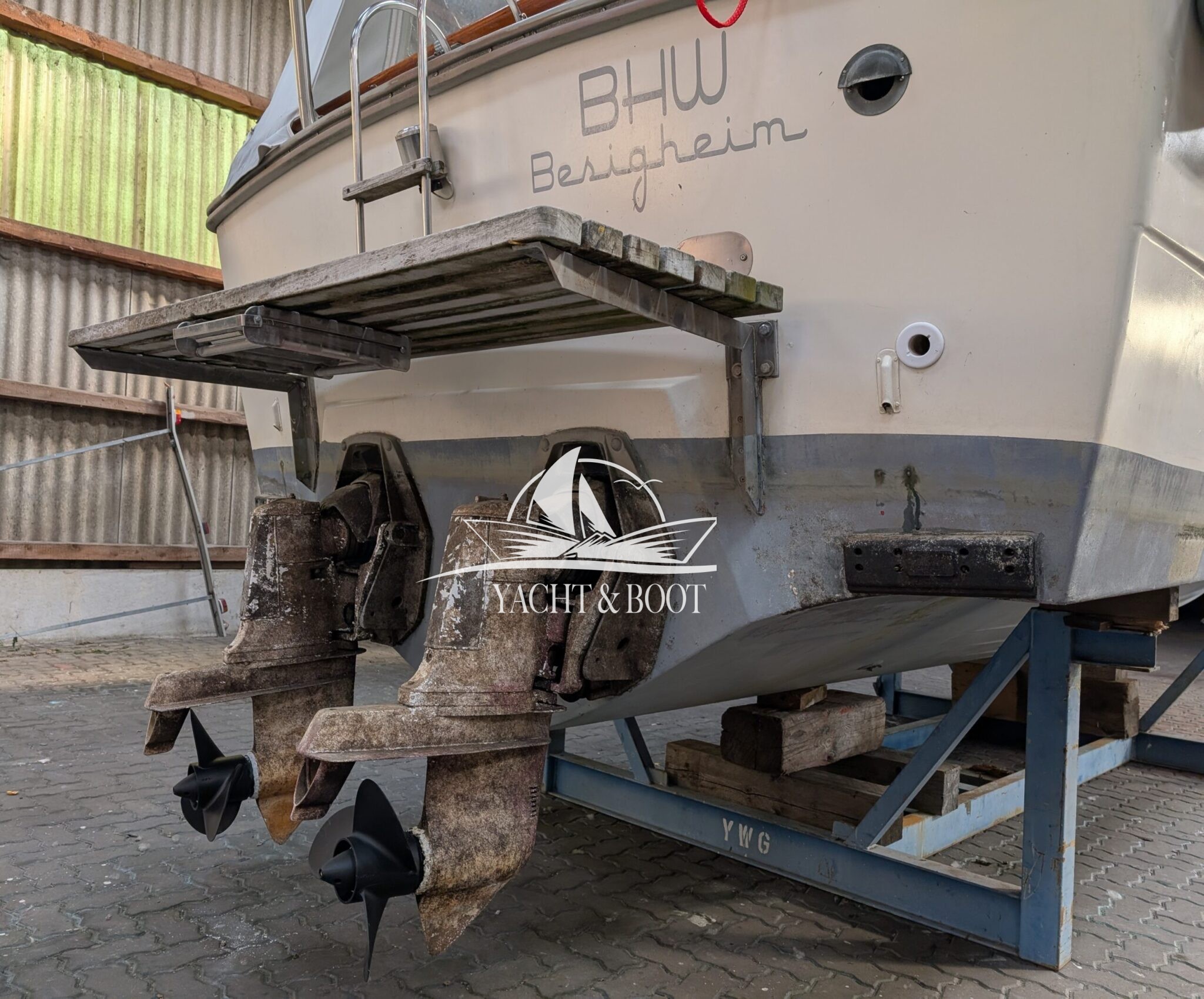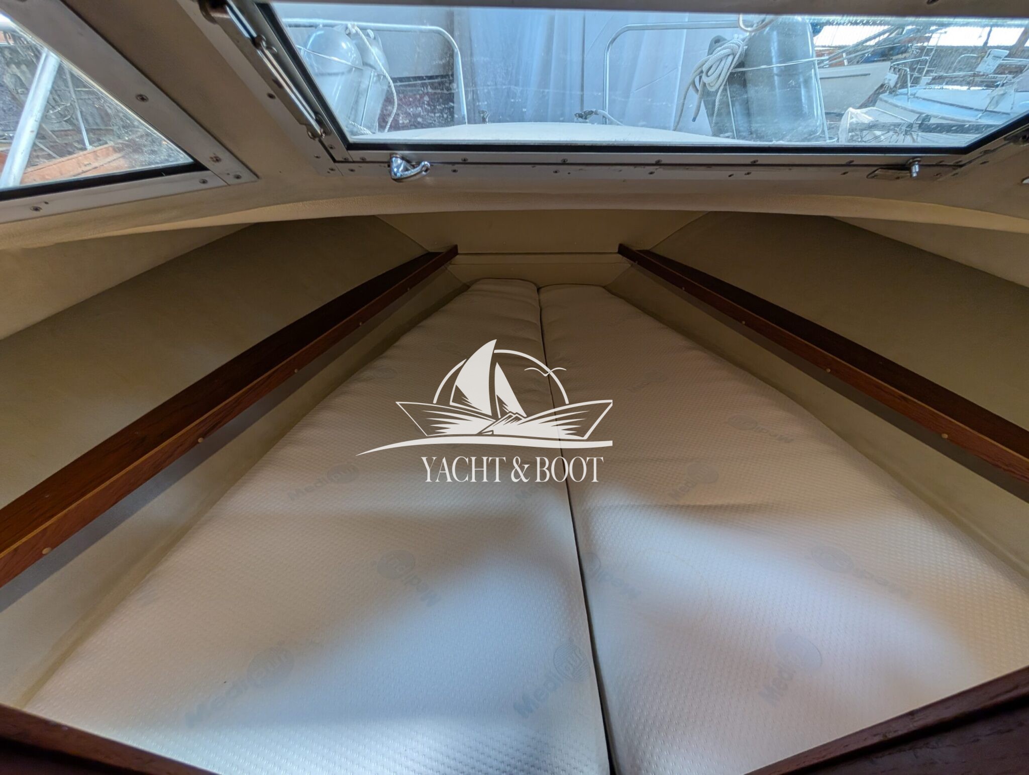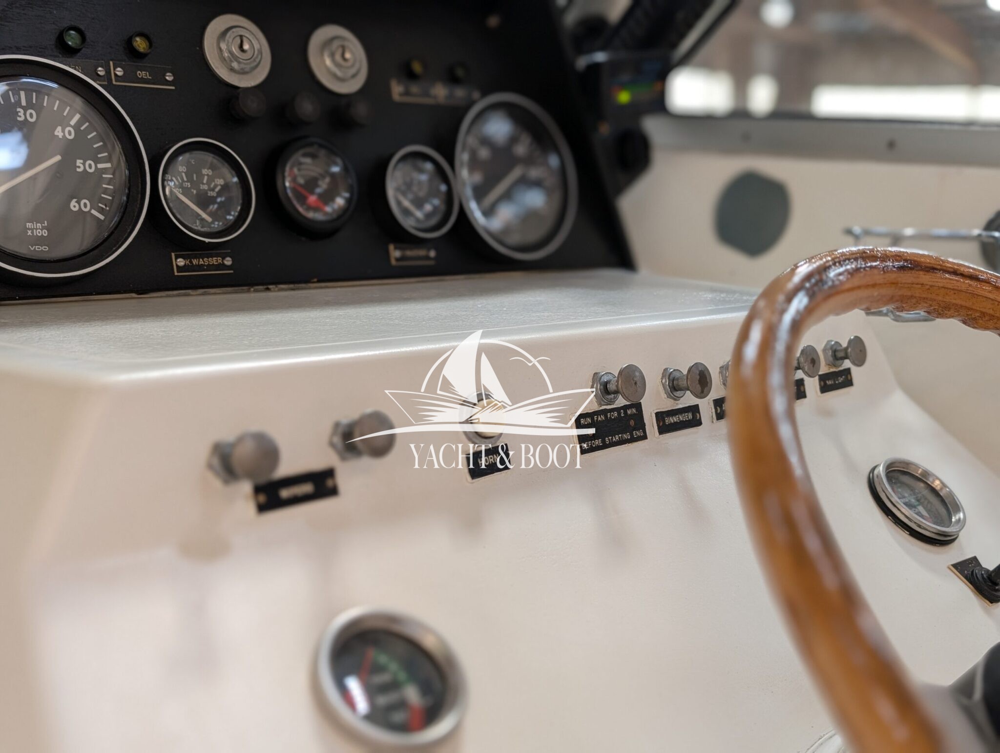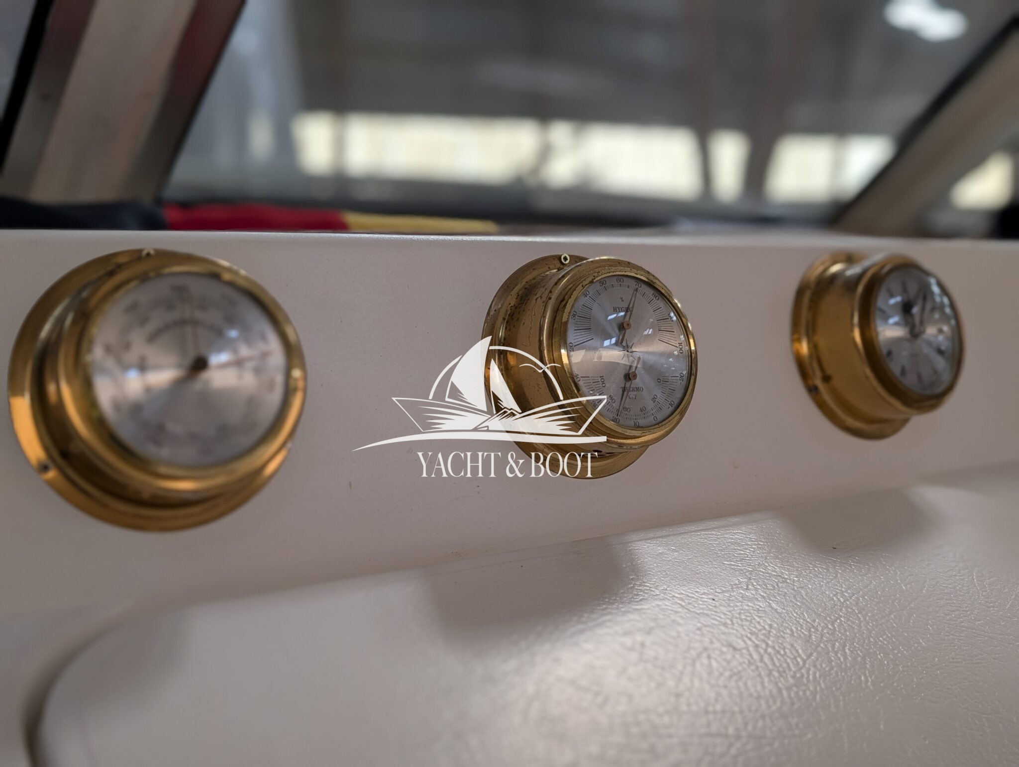 The "Old Lady" is in a very well-kept condition, always maintained and visually upgraded, especially in the saloon. A lot has also been invested technically in recent years. The two 270 Z-drives from Volvo were completely overhauled in 2023. The alternators and starter motors were replaced on both engines. New electric trim tabs ensure a better driving experience and new upholstery and the custom-made mattress provide more comfort.