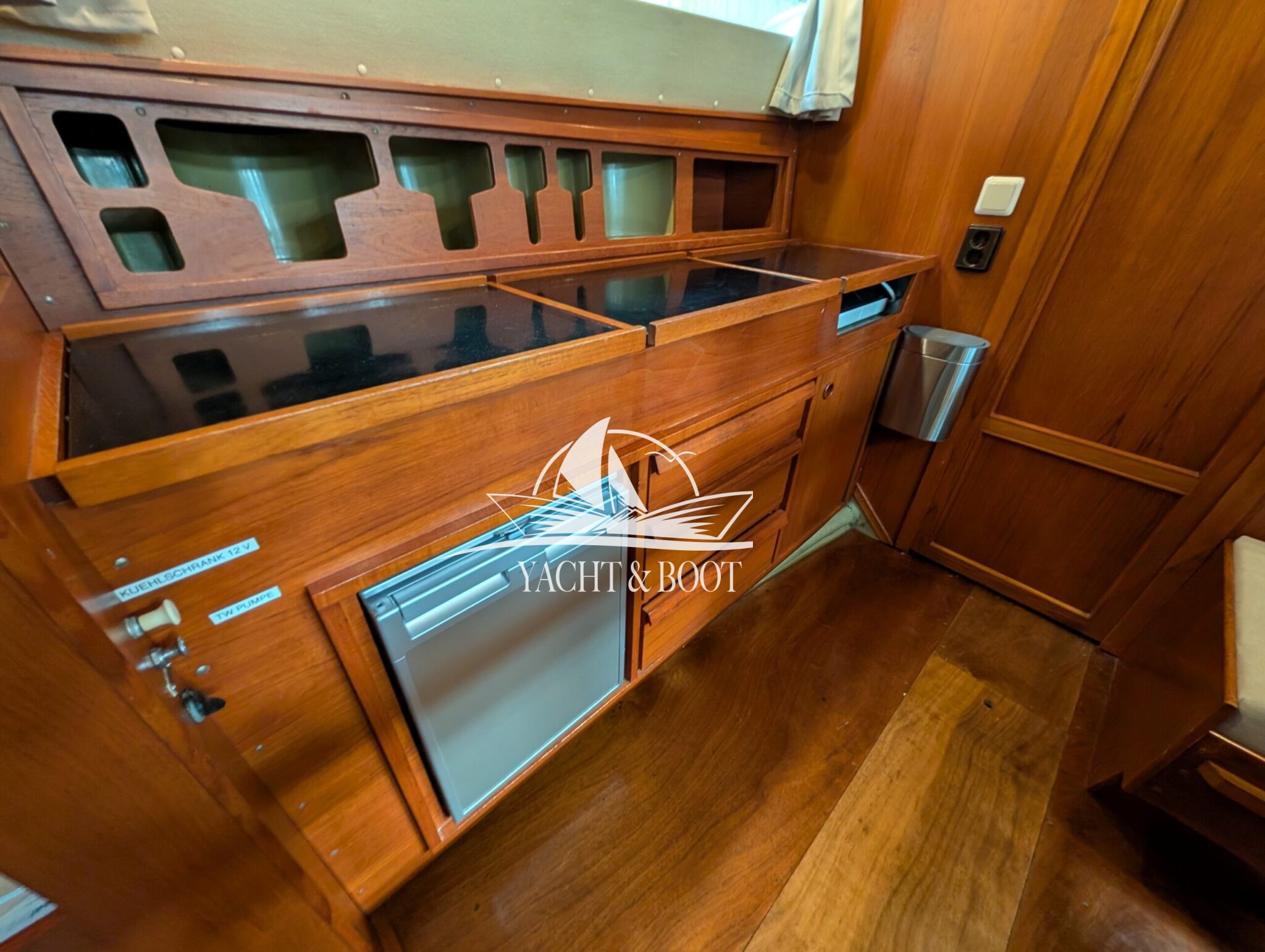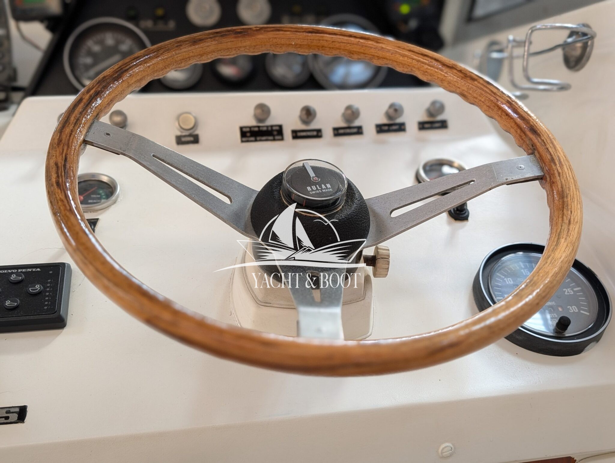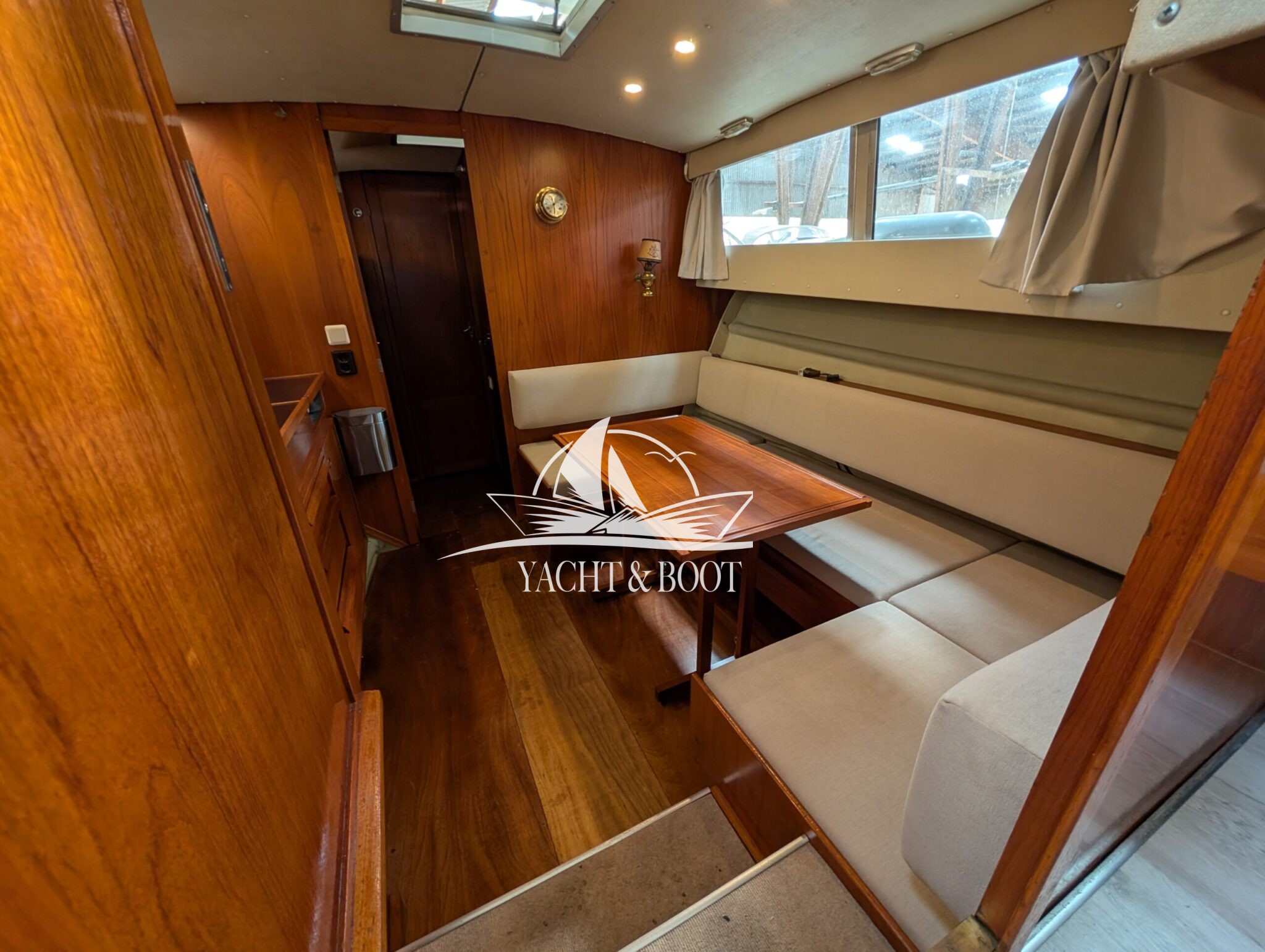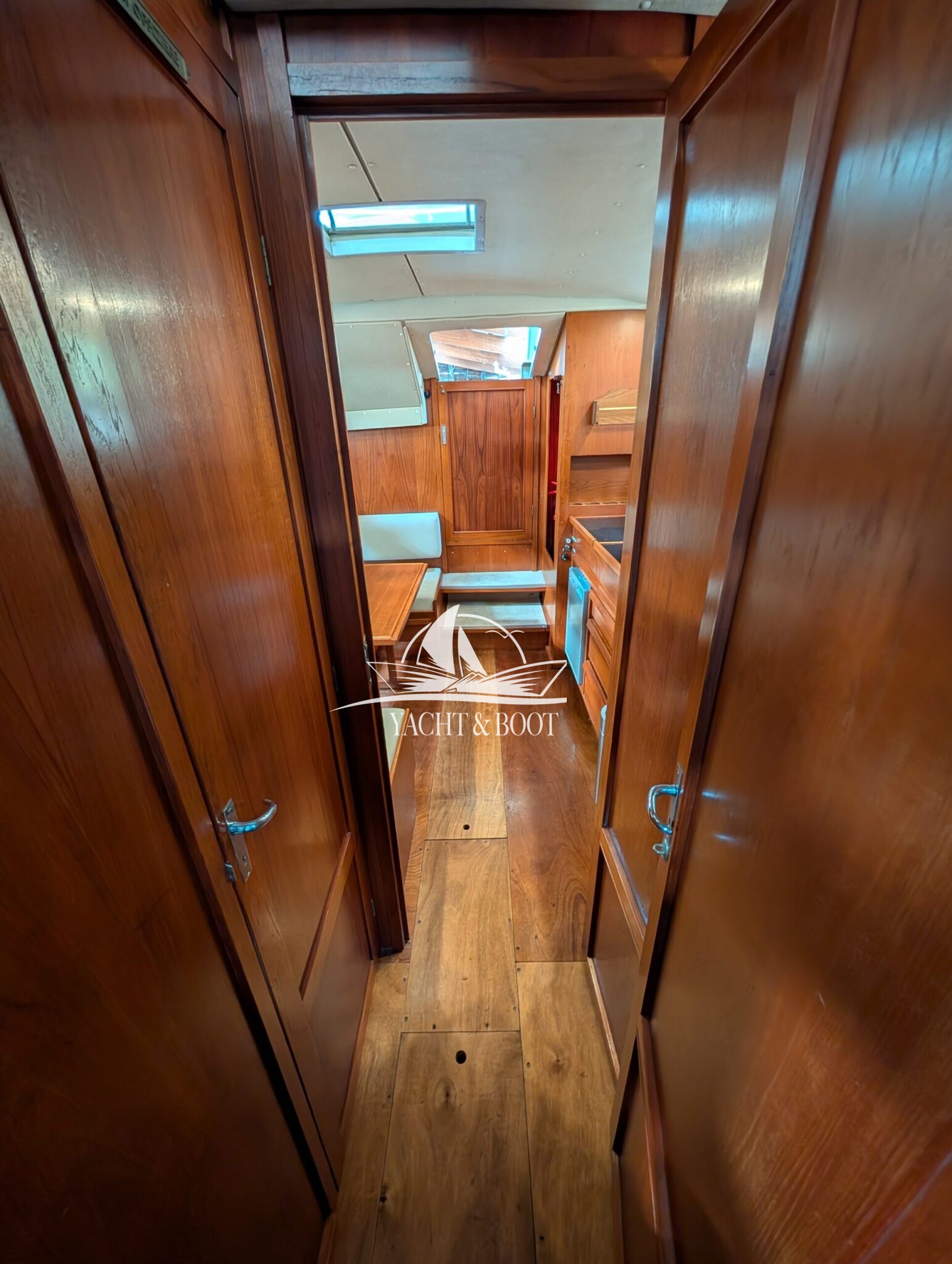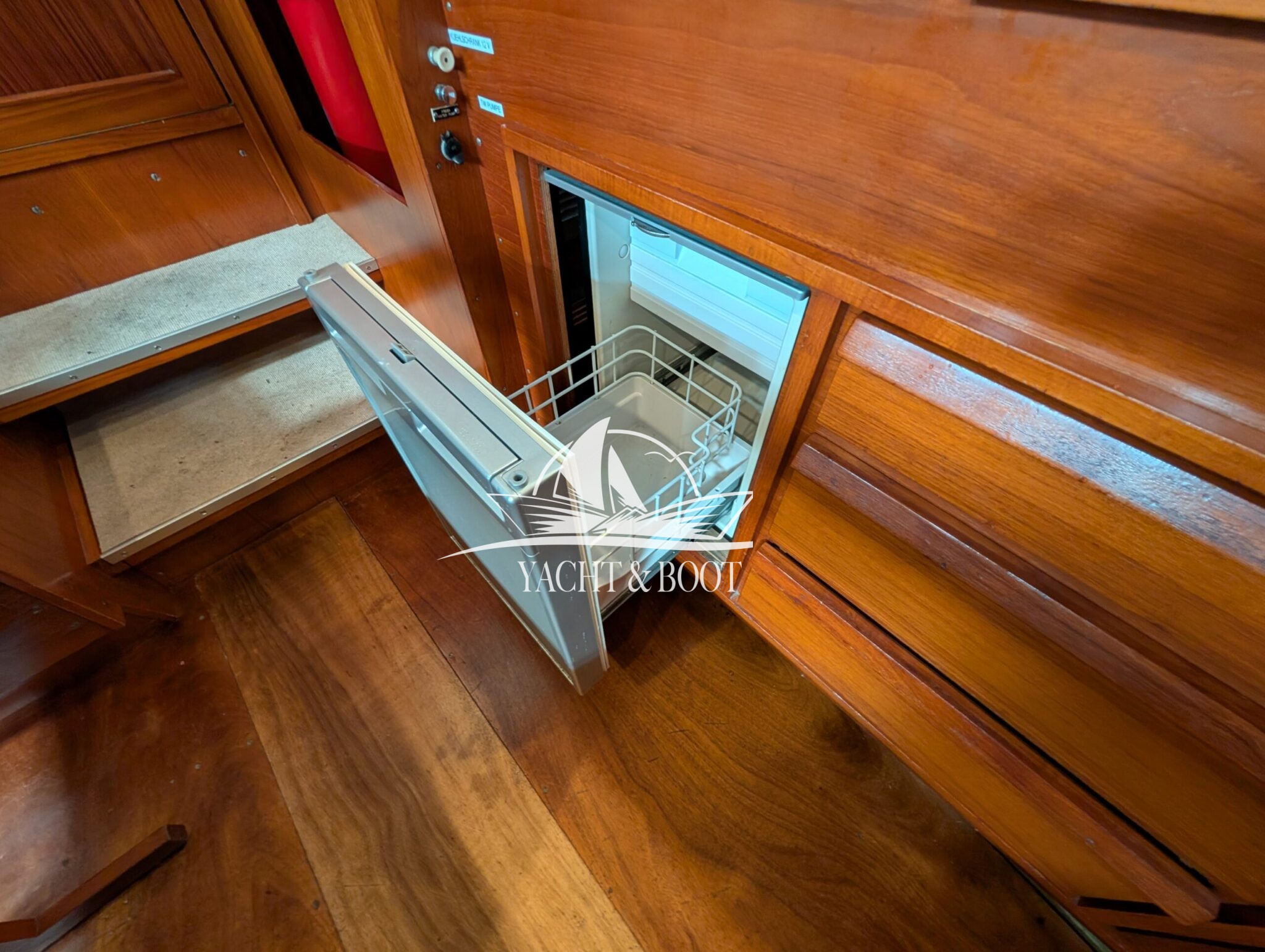 The "Old Lady" is in a very well-kept condition, always maintained and visually upgraded, especially in the saloon. A lot has also been invested technically in recent years. The two 270 Z-drives from Volvo were completely overhauled in 2023. The alternators and starter motors were replaced on both engines. New electric trim tabs ensure a better driving experience and new upholstery and the custom-made mattress provide more comfort.
