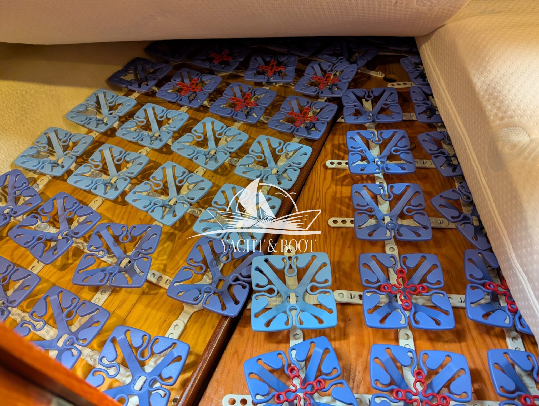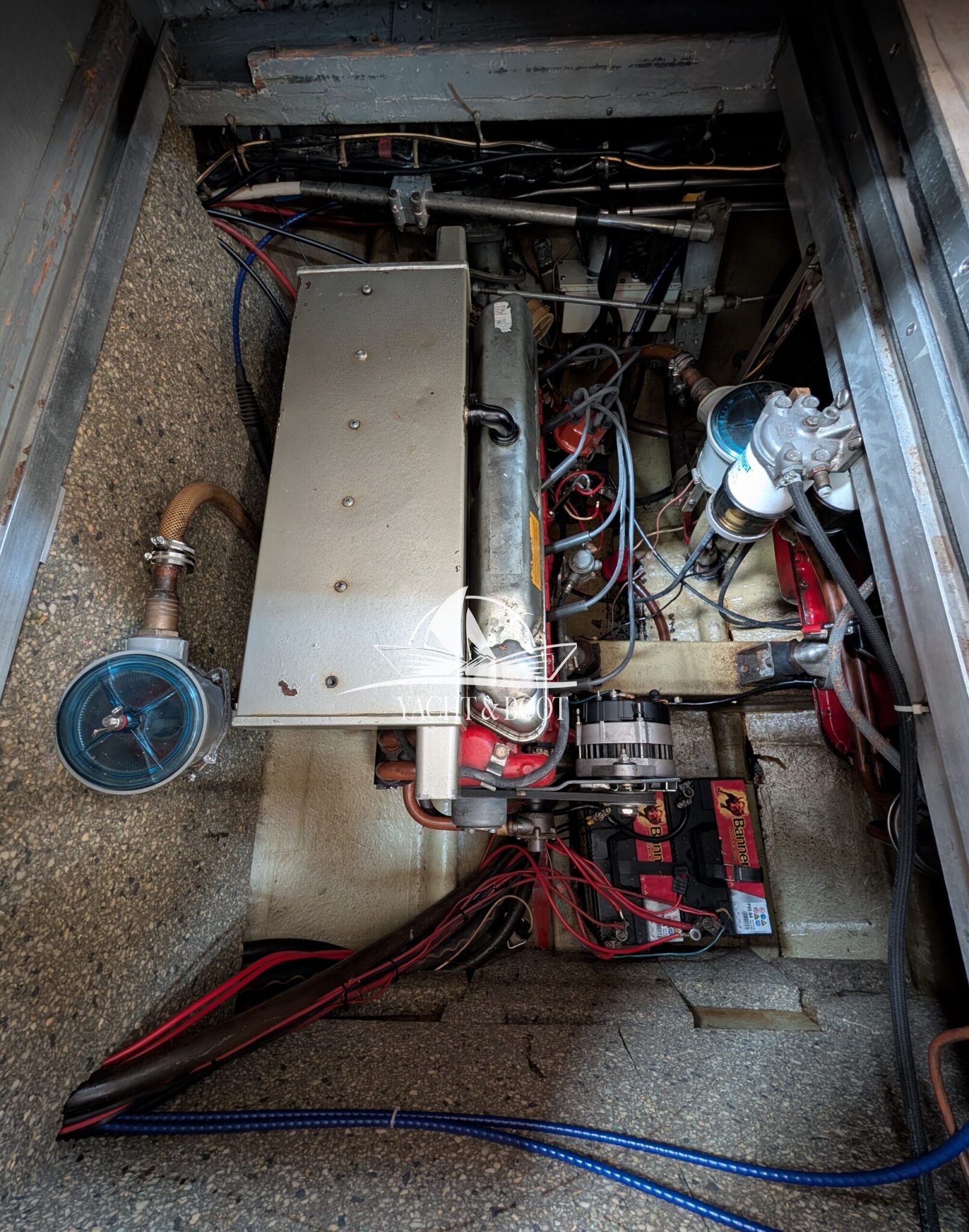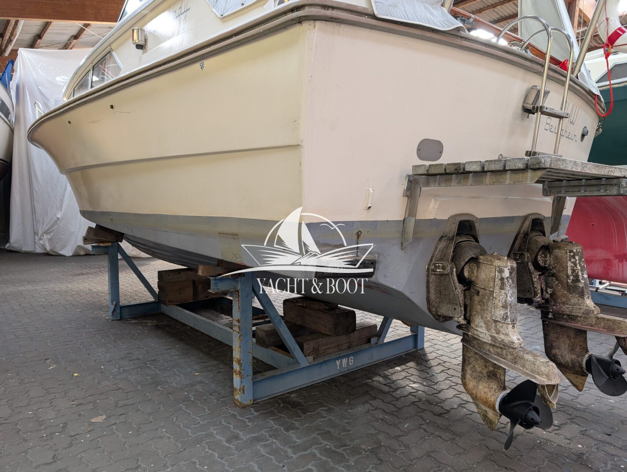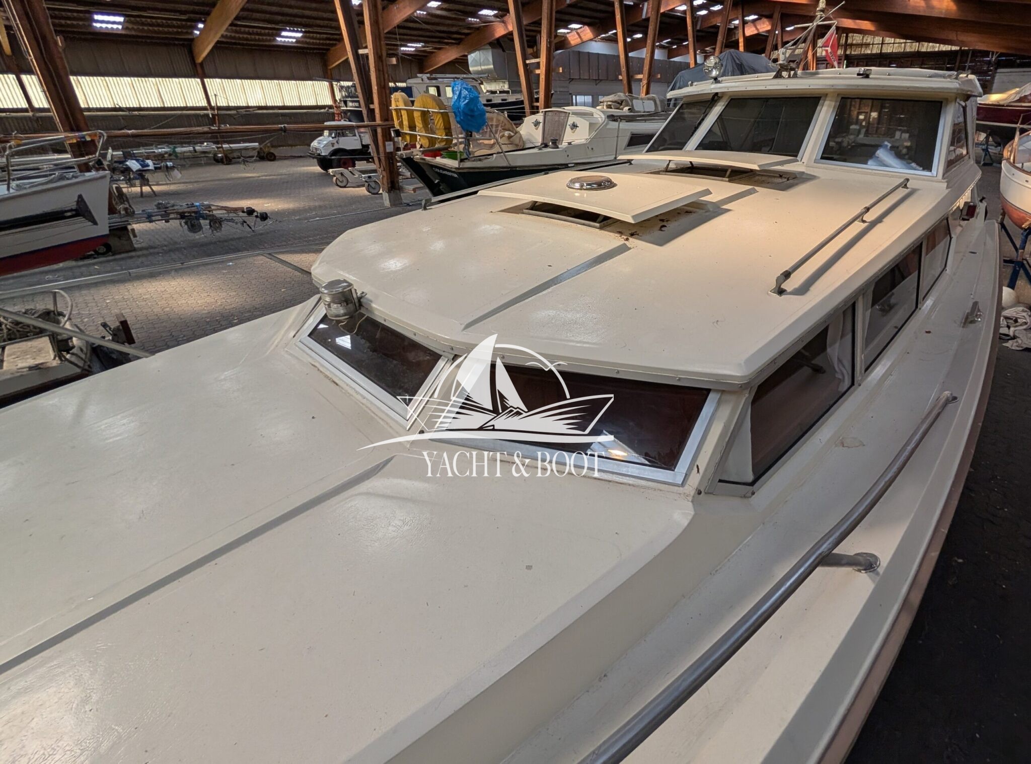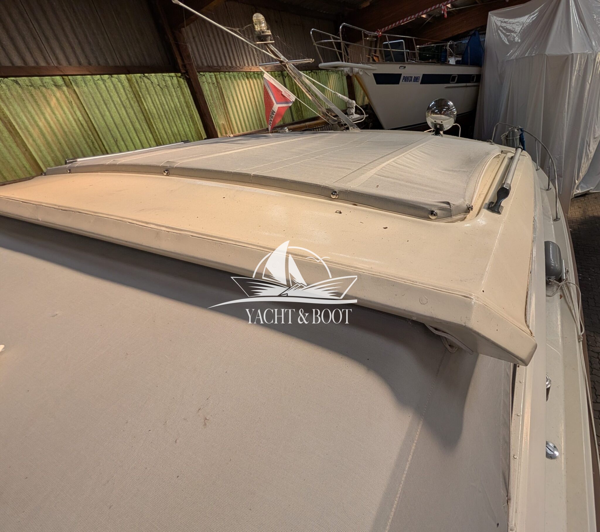 The "Old Lady" is in a very well-kept condition, always maintained and visually upgraded, especially in the saloon. A lot has also been invested technically in recent years. The two 270 Z-drives from Volvo were completely overhauled in 2023. The alternators and starter motors were replaced on both engines. New electric trim tabs ensure a better driving experience and new upholstery and the custom-made mattress provide more comfort.