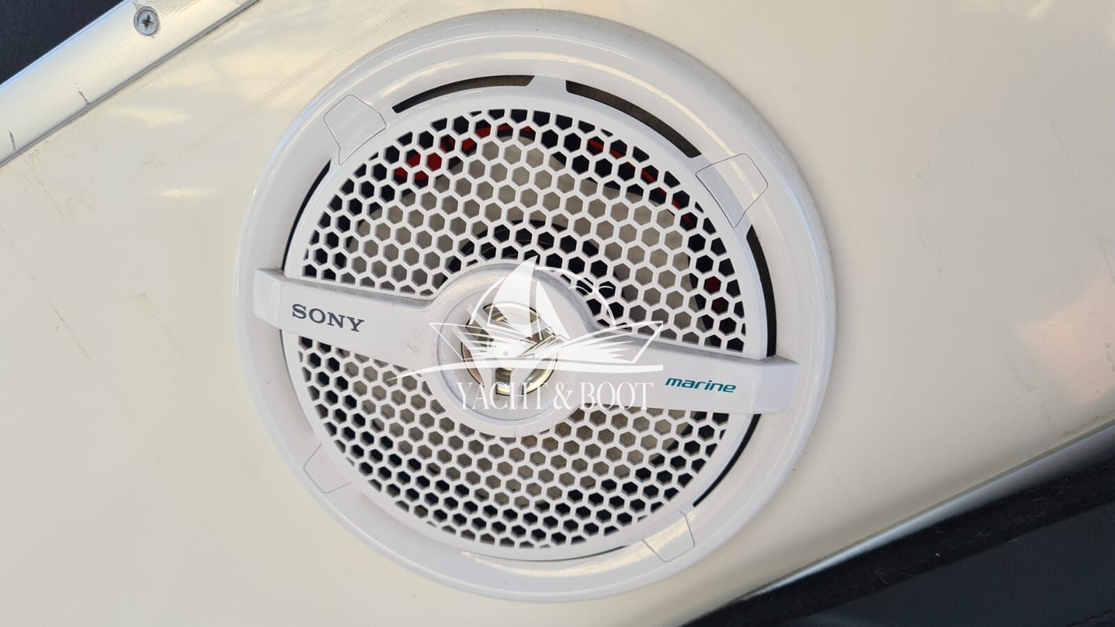 GPS, chart plotter, depth sounder, compass, speed indicator, rudder angle indicator, rev counter and an on-board computer are available for navigation and control. On-board entertainment is provided by a modern Bluetooth audio system with MP3 function and cockpit loudspeakers. Accessories include fenders, mooring lines, boat hooks and various tarpaulins and covers, including a harbor and full tarpaulin.