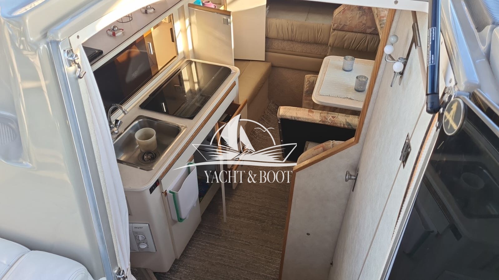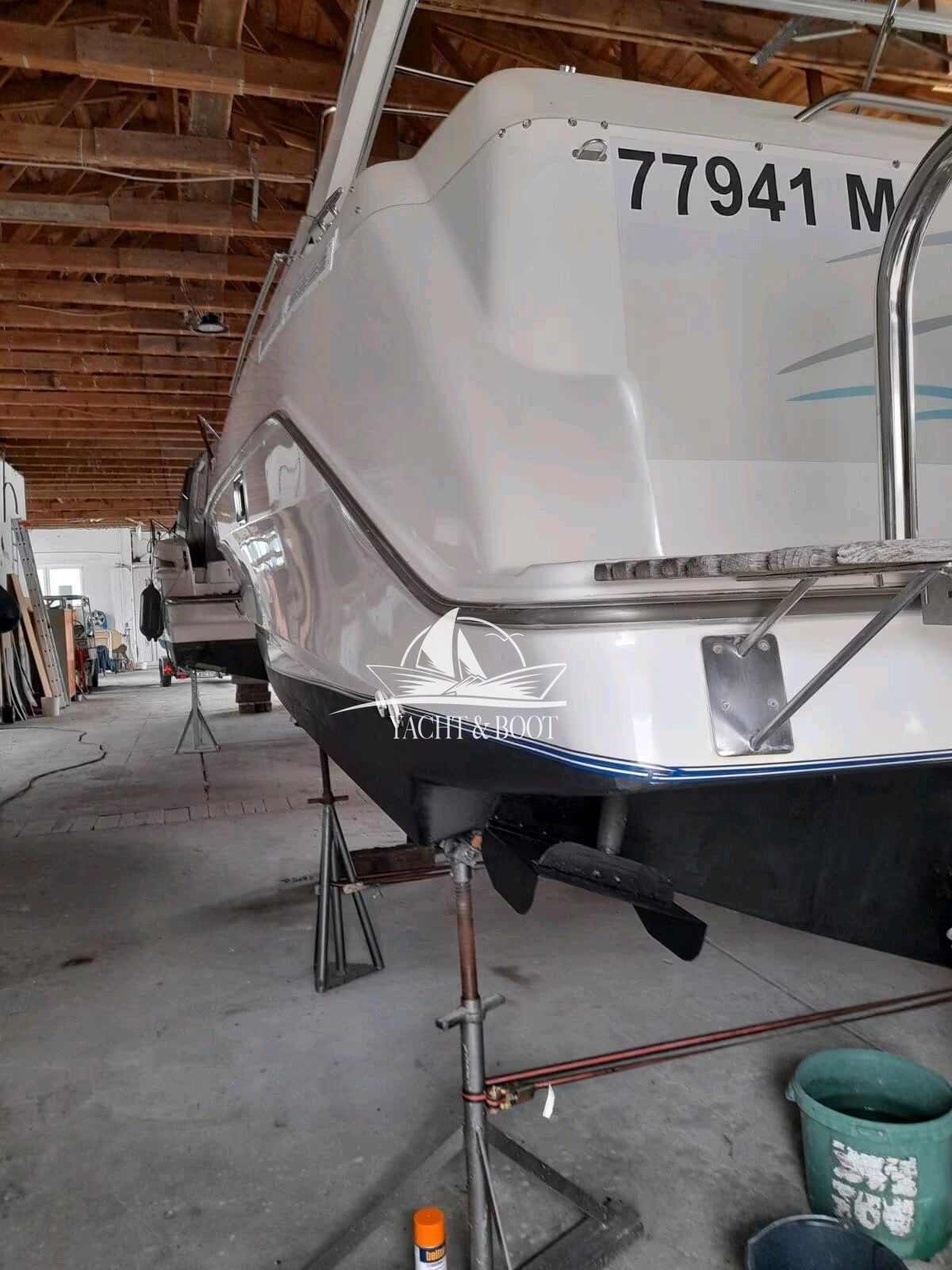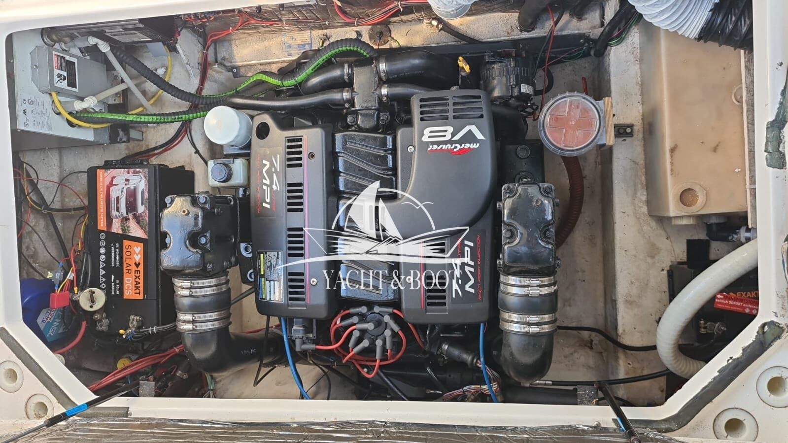 The Bayliner is powered by a MerCruiser 7.4 LX MPI inboard engine with 330 hp, coupled to a Bravo III Z-drive with stainless steel DuoProp. The engine was newly installed in 2022 and has only run for around 60 operating hours since then (as of November 2025). In conjunction with the drive, which was revised in 2022/23, this combination ensures powerful and smooth driving performance as well as superior handling. The petrol engine has a dual-circuit cooling system and an electric starting system, ensuring maximum reliability.