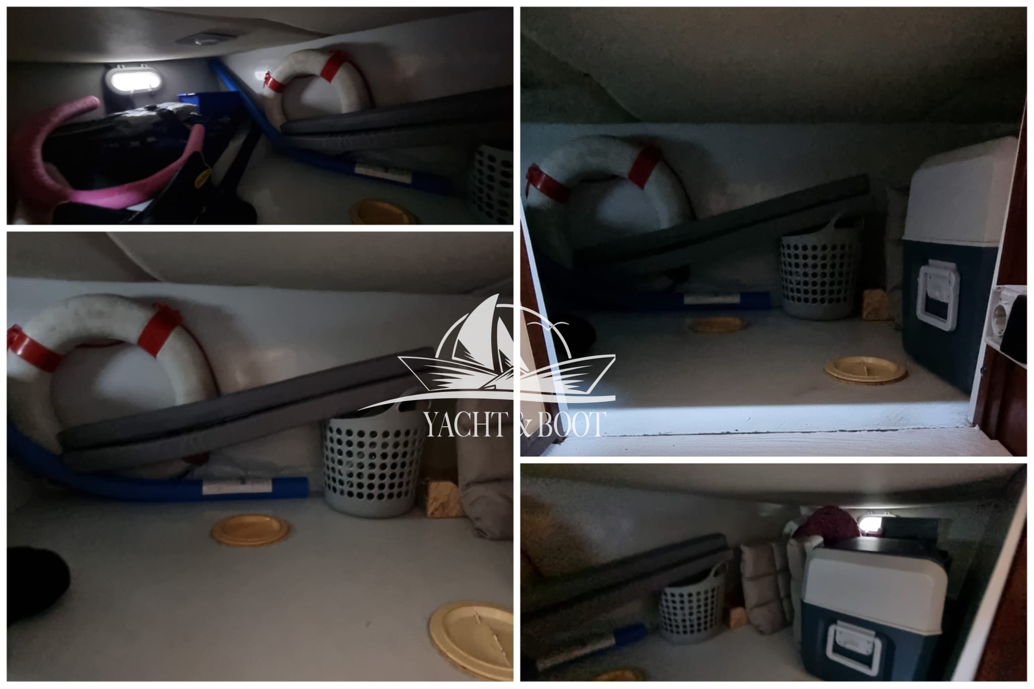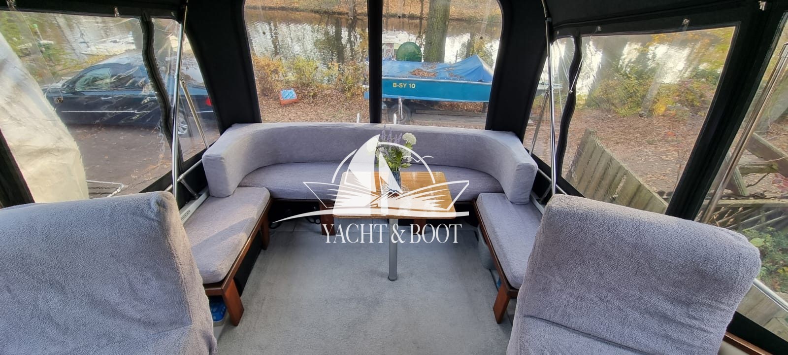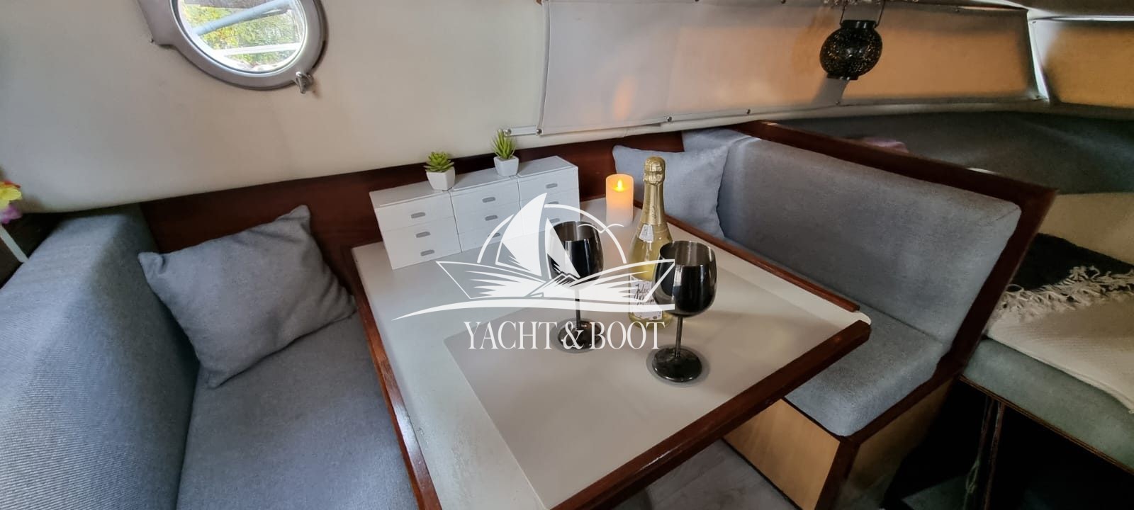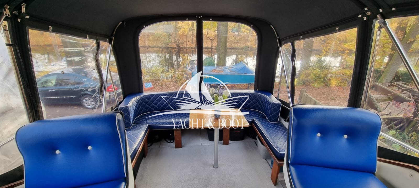 Eine neue Heizung (2021) sorgt für wohlige Wärme an kühleren Tagen, während der 2023 erneuerte Kühlschrank mit Gefrierfach die Bordküche modern und praktisch macht. Die neue Persenning aus 09/2022 schützt das Boot zuverlässig und unterstreicht den gepflegten Gesamteindruck. Zusätzlich sorgen Unterwasserbeleuchtung, Lowrance-Echolot, elektrische Bug-Ankerwinde und viele weitere Ausstattungsdetails für ein rundum komfortables Bordleben.