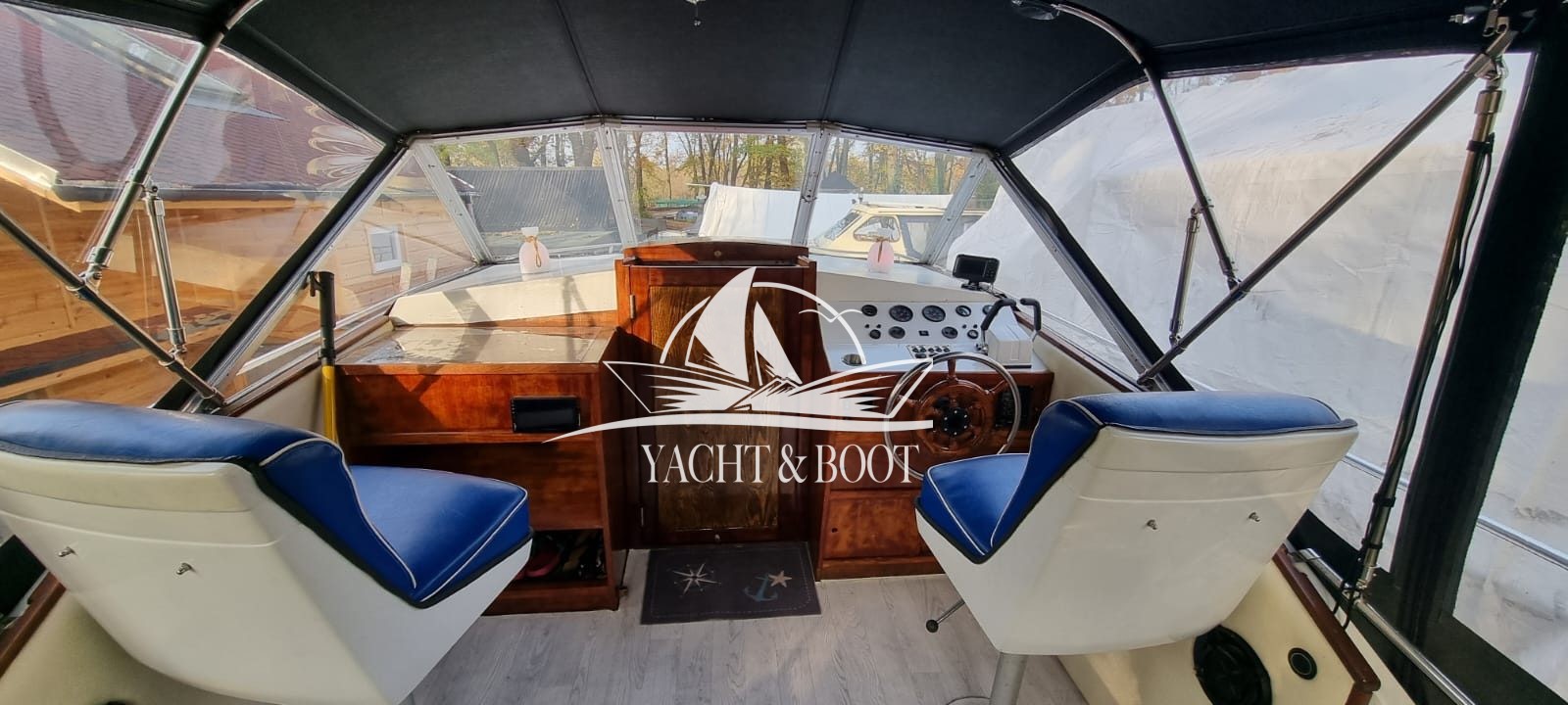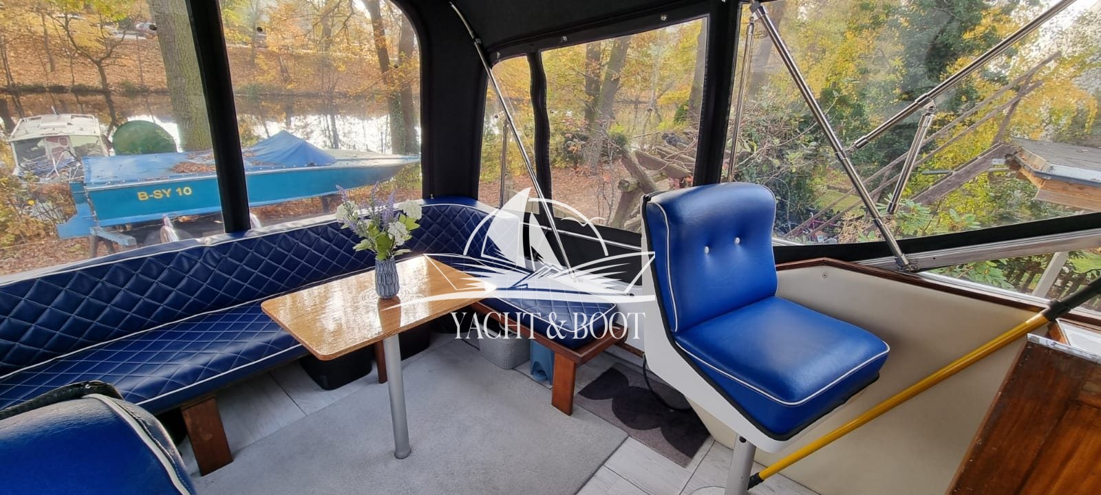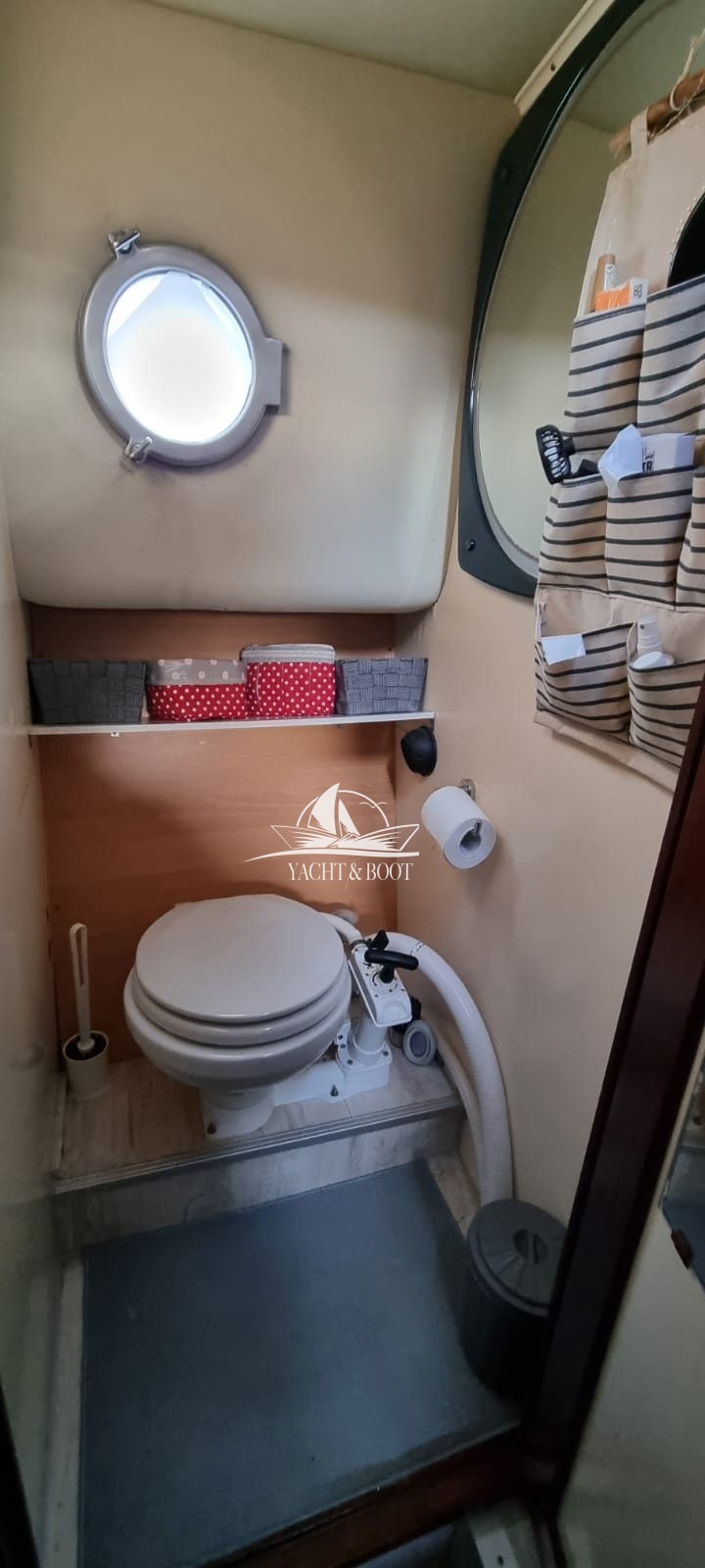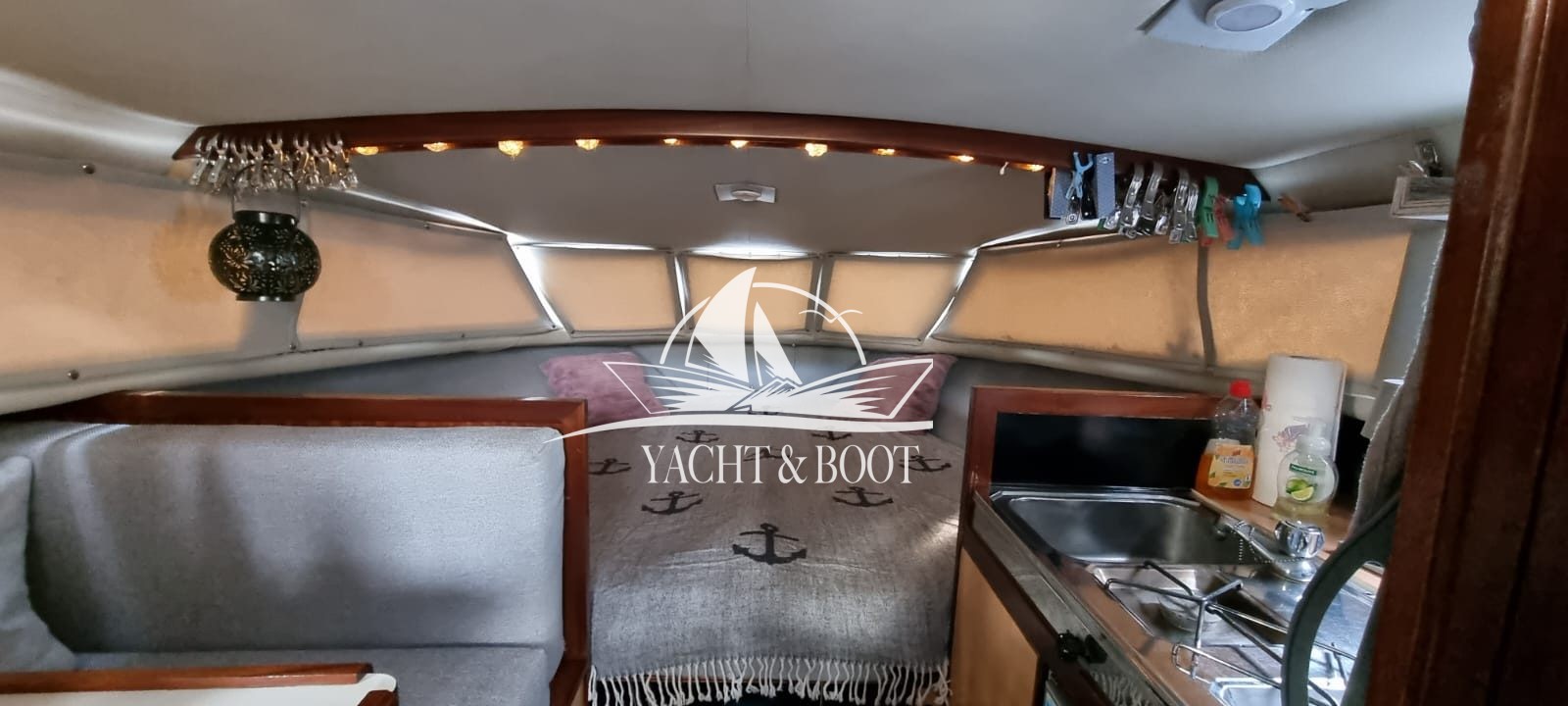 Eine neue Heizung (2021) sorgt für wohlige Wärme an kühleren Tagen, während der 2023 erneuerte Kühlschrank mit Gefrierfach die Bordküche modern und praktisch macht. Die neue Persenning aus 09/2022 schützt das Boot zuverlässig und unterstreicht den gepflegten Gesamteindruck. Zusätzlich sorgen Unterwasserbeleuchtung, Lowrance-Echolot, elektrische Bug-Ankerwinde und viele weitere Ausstattungsdetails für ein rundum komfortables Bordleben.