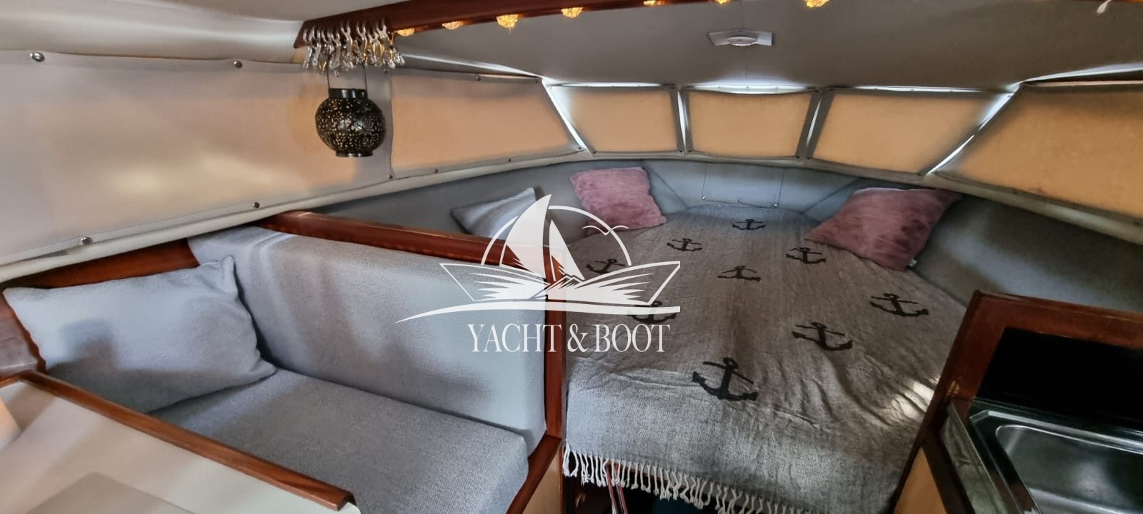 Mit ihrer eleganten Linienführung und dem zeitlosen Charakter präsentiert sich die Savir Turbin 27 als ein Motorboot, das Tradition und maritime Lebensfreude perfekt vereint. Seit 1978 gleitet sie zuverlässig über das Wasser – und wurde in den vergangenen Jahren mit viel Liebe zum Detail umfassend restauriert und modernisiert, um heutigen Komfortansprüchen gerecht zu werden.