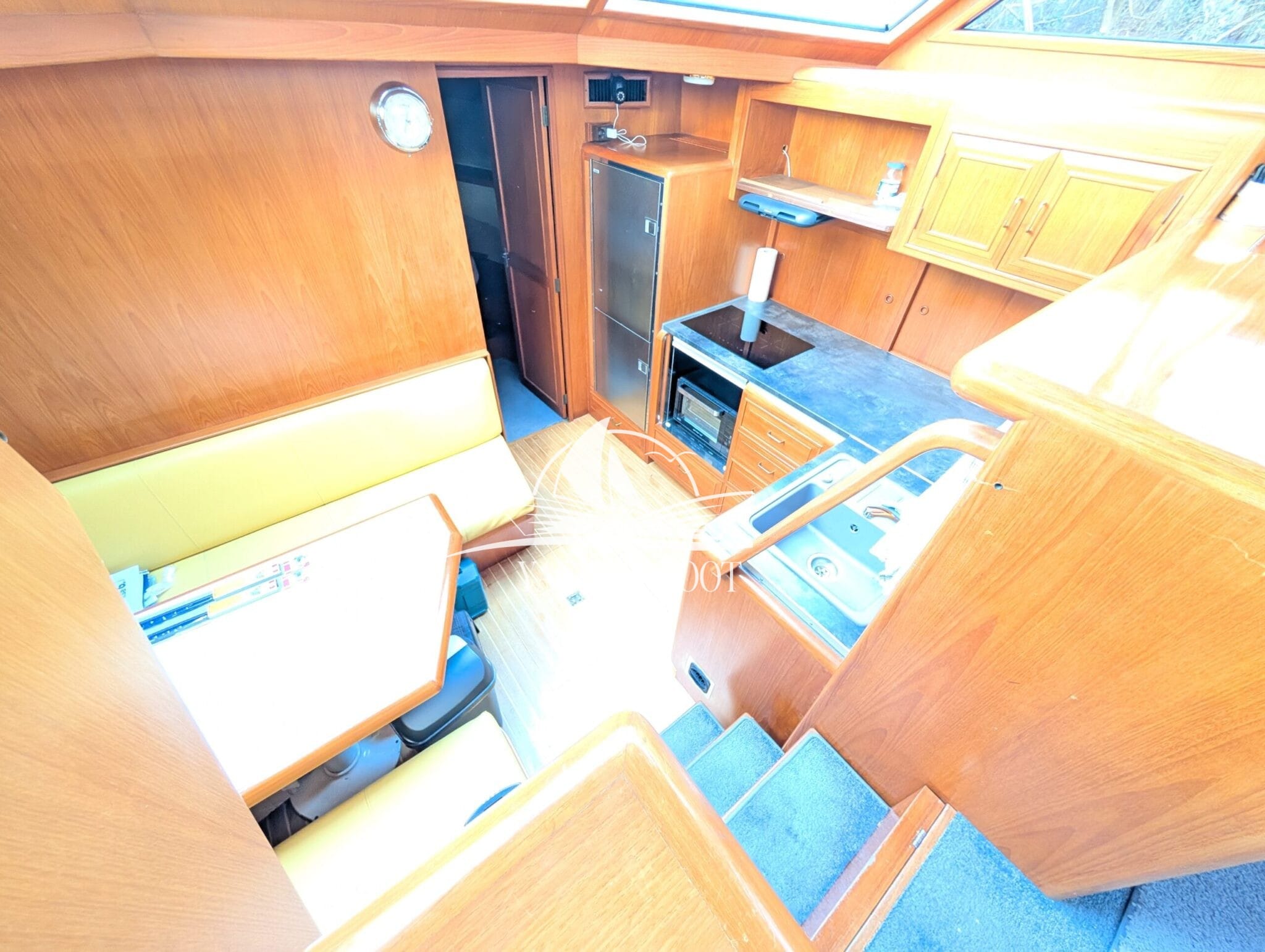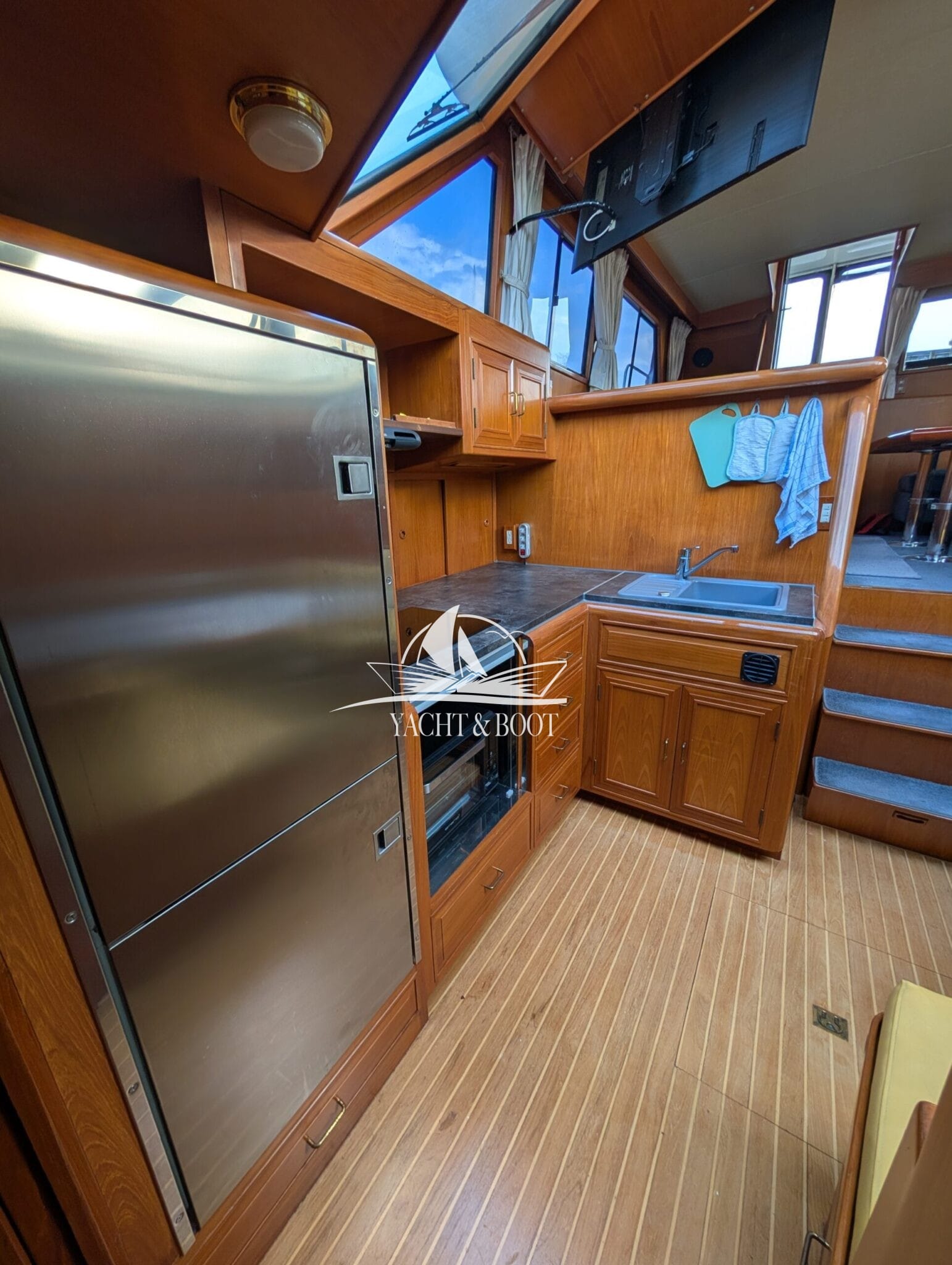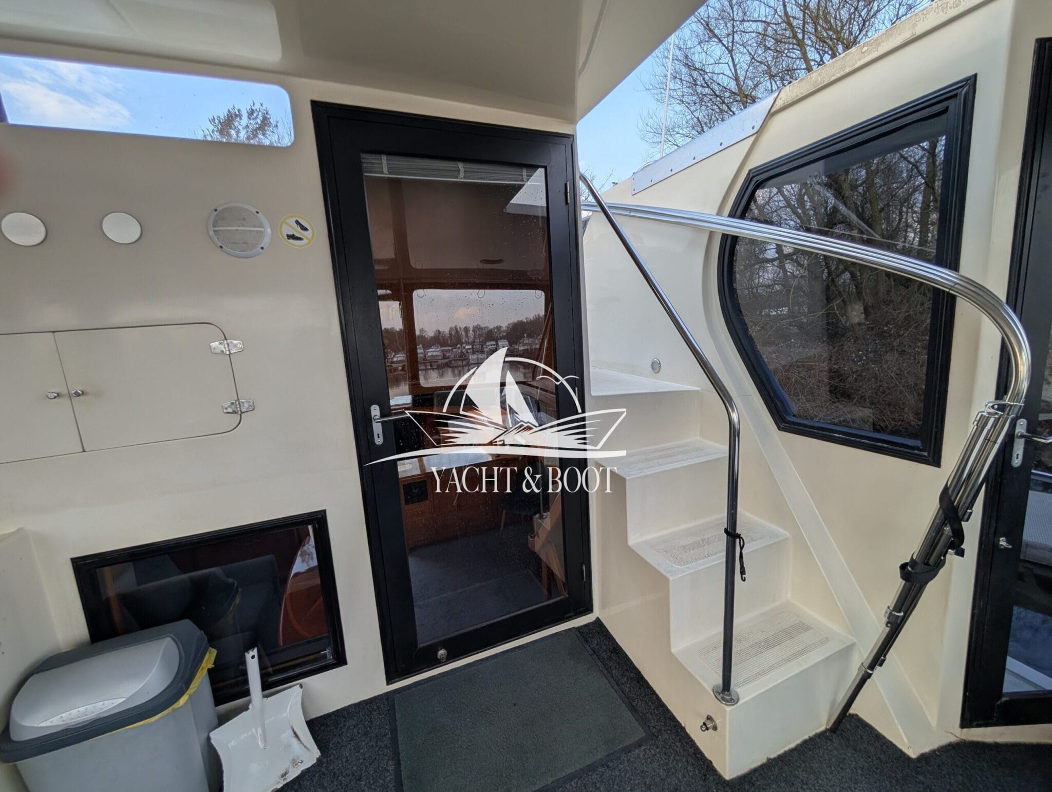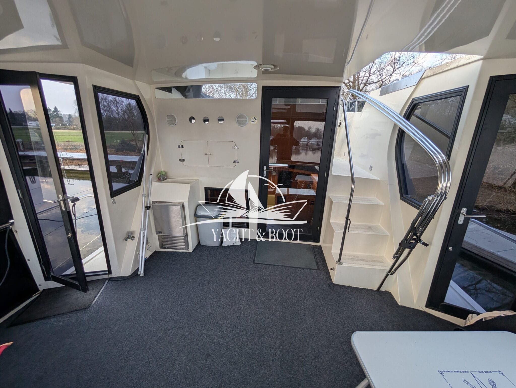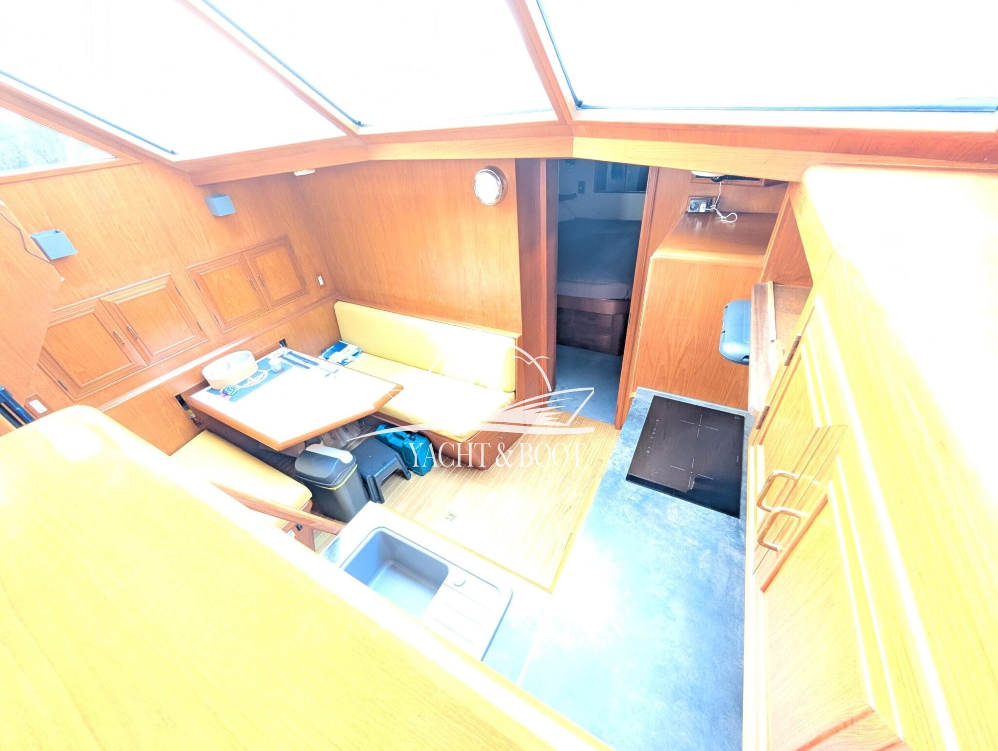 The bright saloon with large windows creates an open, friendly atmosphere and underlines the focus on living quality. High-quality woodwork, generous headroom and wide passageways make the interior functional and comfortable at the same time. The well thought-out layout combines the saloon, dining area and steering position to create a social hub on board, ideal for guests and longer stays.