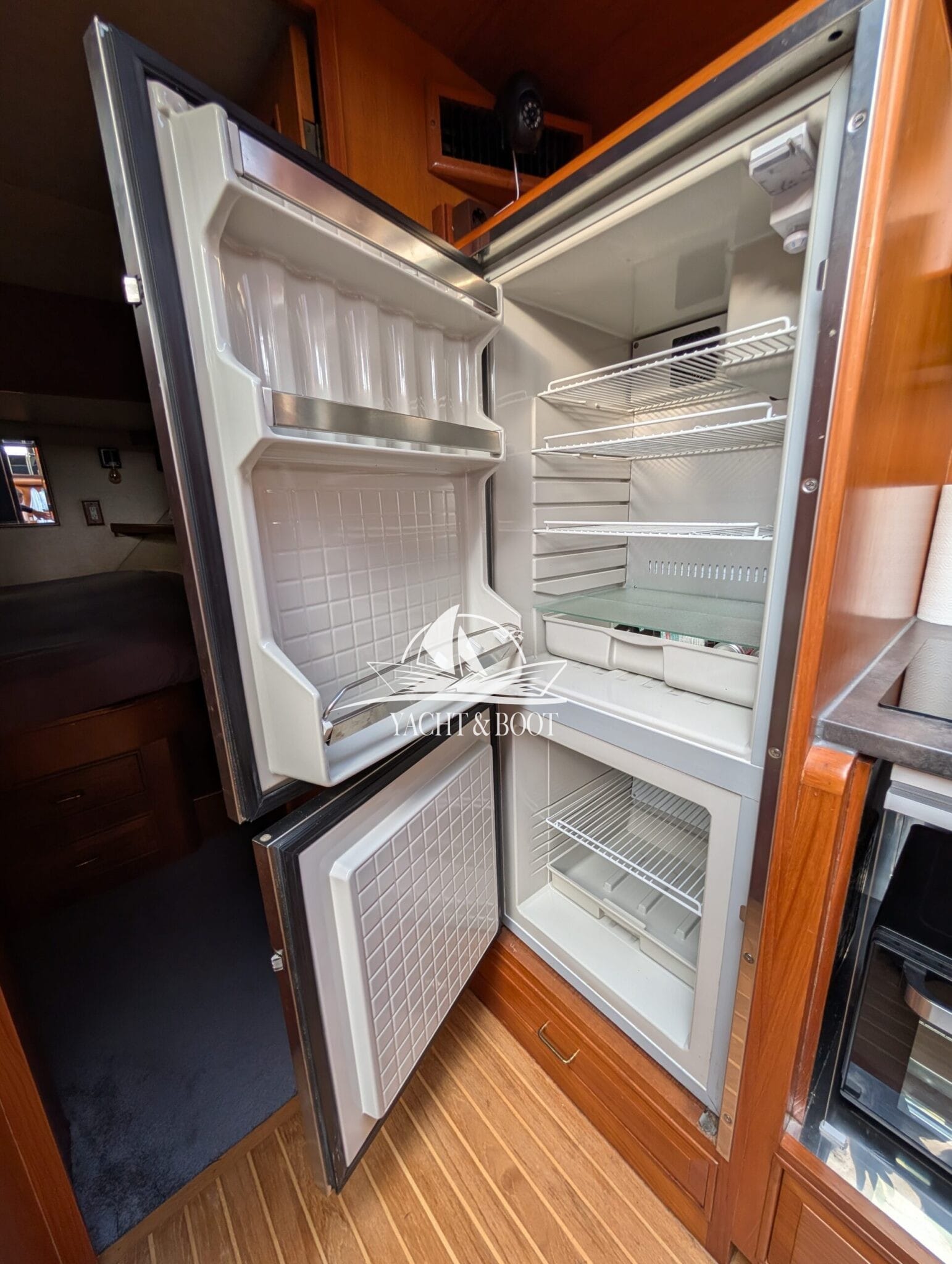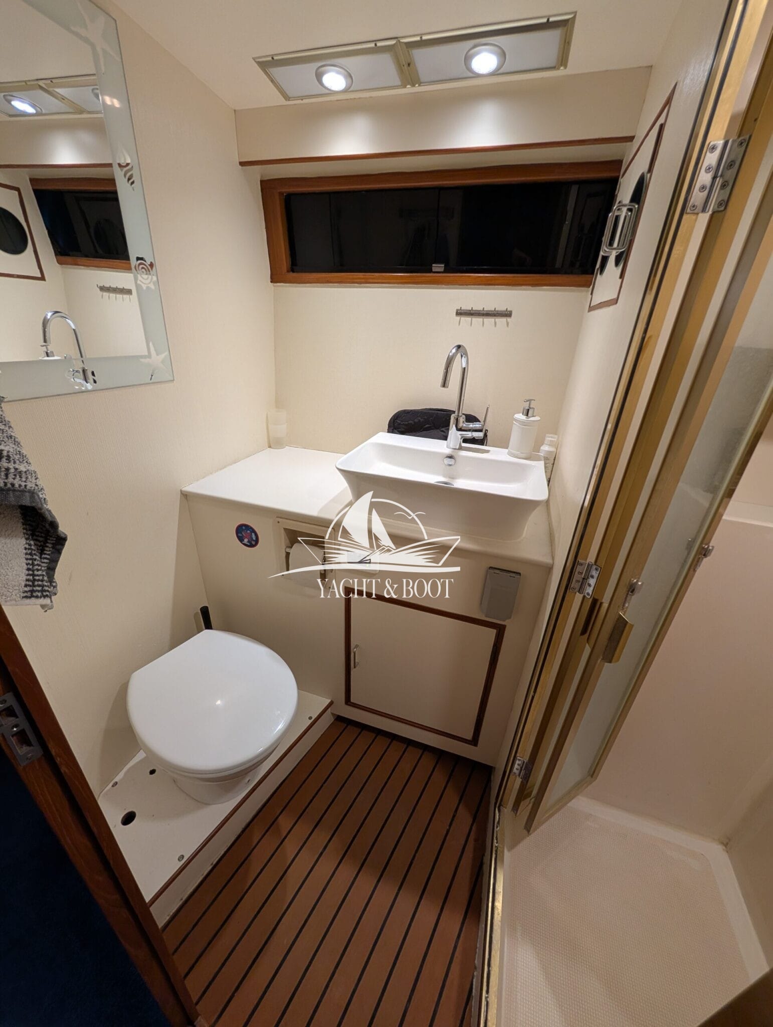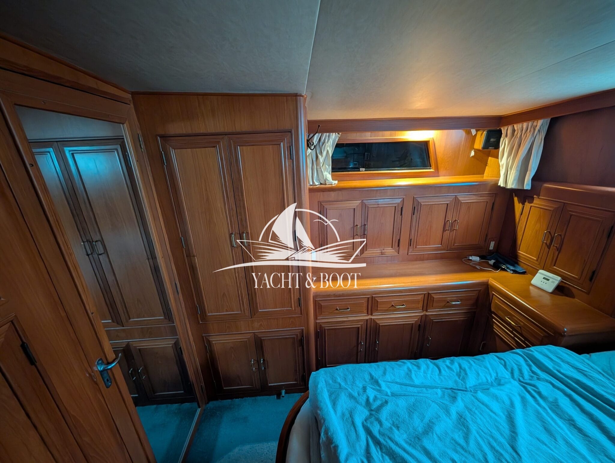 A particular highlight is the wide aft cabin, which is designed as a fully-fledged owner's apartment and offers plenty of storage space and a private wet room. It is complemented by a separate guest cabin in the foredeck, ensuring privacy for everyone on board. This classic aft cabin structure makes the Camargue 42 Sundeck a popular choice for families and owners with space requirements.
